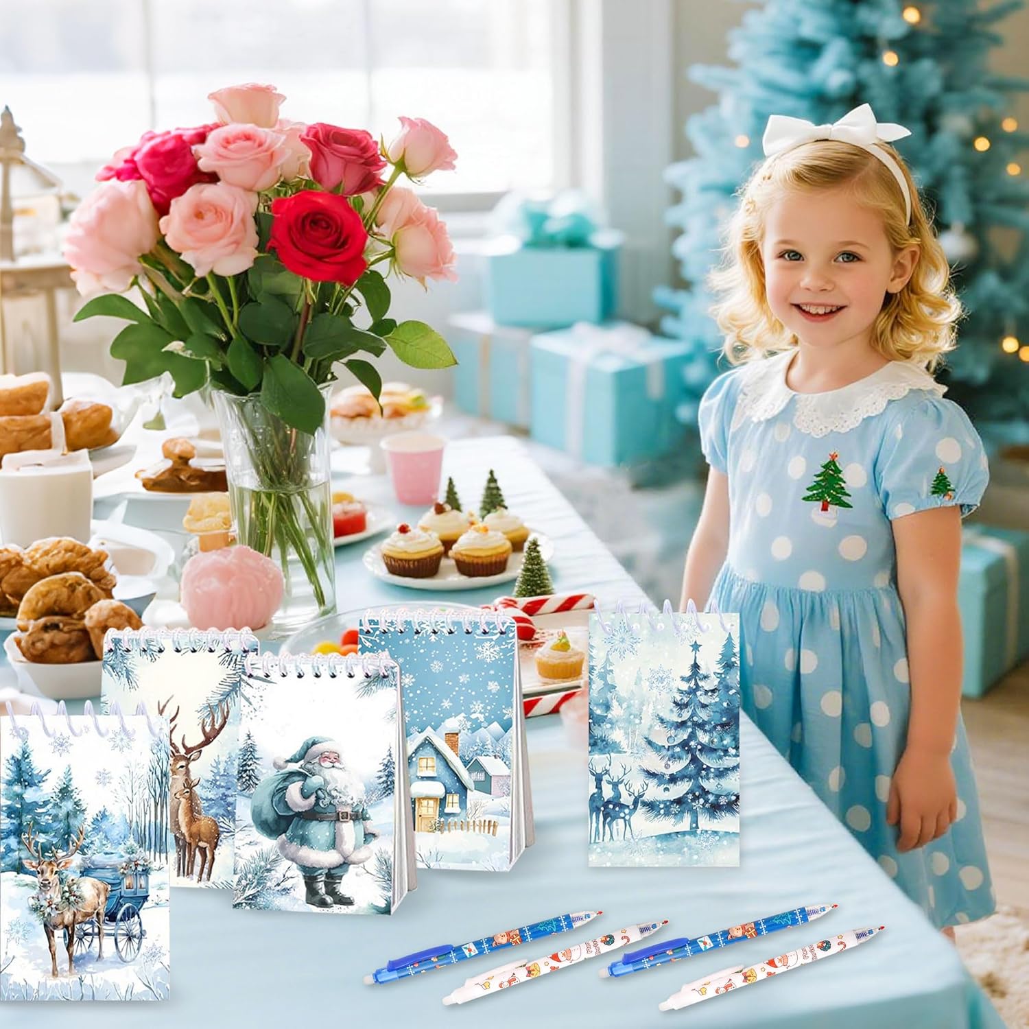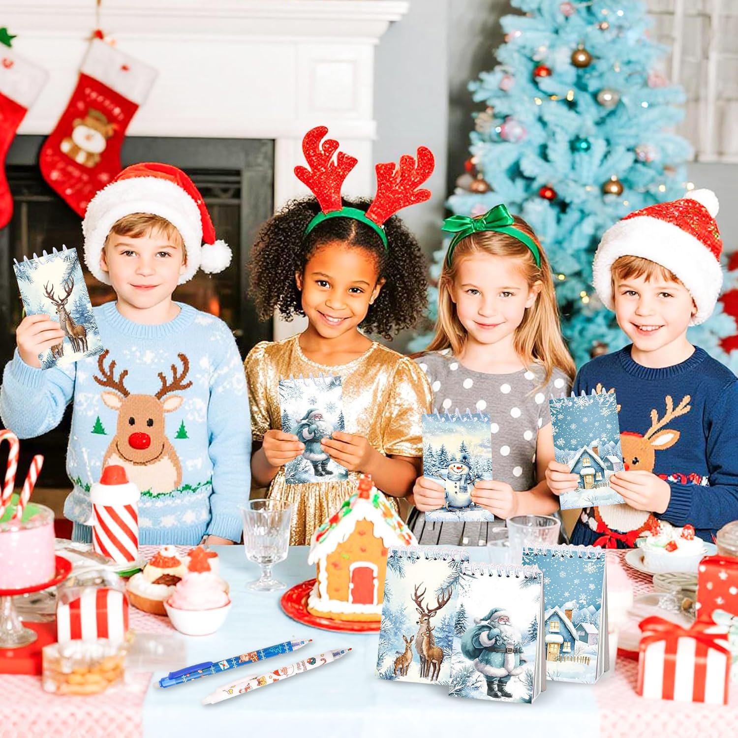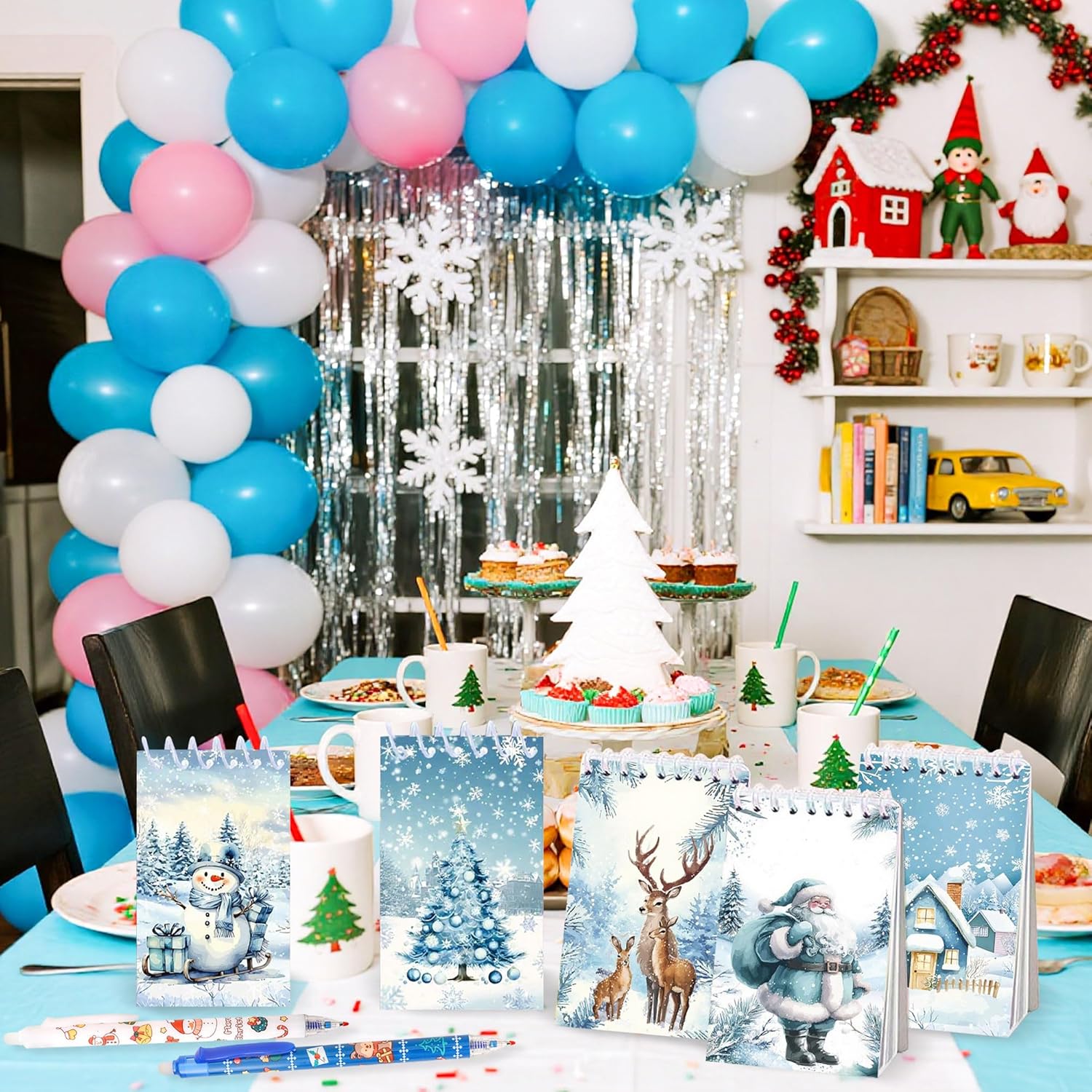 Porta un'atmosfera festiva in classe o in ufficio con questi incantevoli mini blocchi notes in 8 adorabili design natalizi con tonalità classiche blu e bianche, Il formato compatto si inserisce facilmente in calzini natalizi, sacchetti regalo o astucci, aggiungendo un fascino stagionale alla scrittura quotidiana, Riceverai 8 mini blocchi notes natalizi insieme a 4 penne a sfera, che insieme creano un set di scrittura perfetto per il periodo delle feste, Questi set sono ideali per feste di Natale, premi in classe o incentivi sul posto di lavoro, rappresentando un bel pensiero per ragazzi e ragazze, Adatto a insegnanti, organizzatori di eventi o genitori che cercano carta da lettere allegra per diffondere lo spirito natalizio