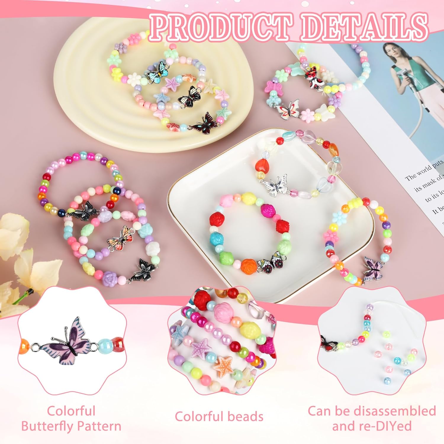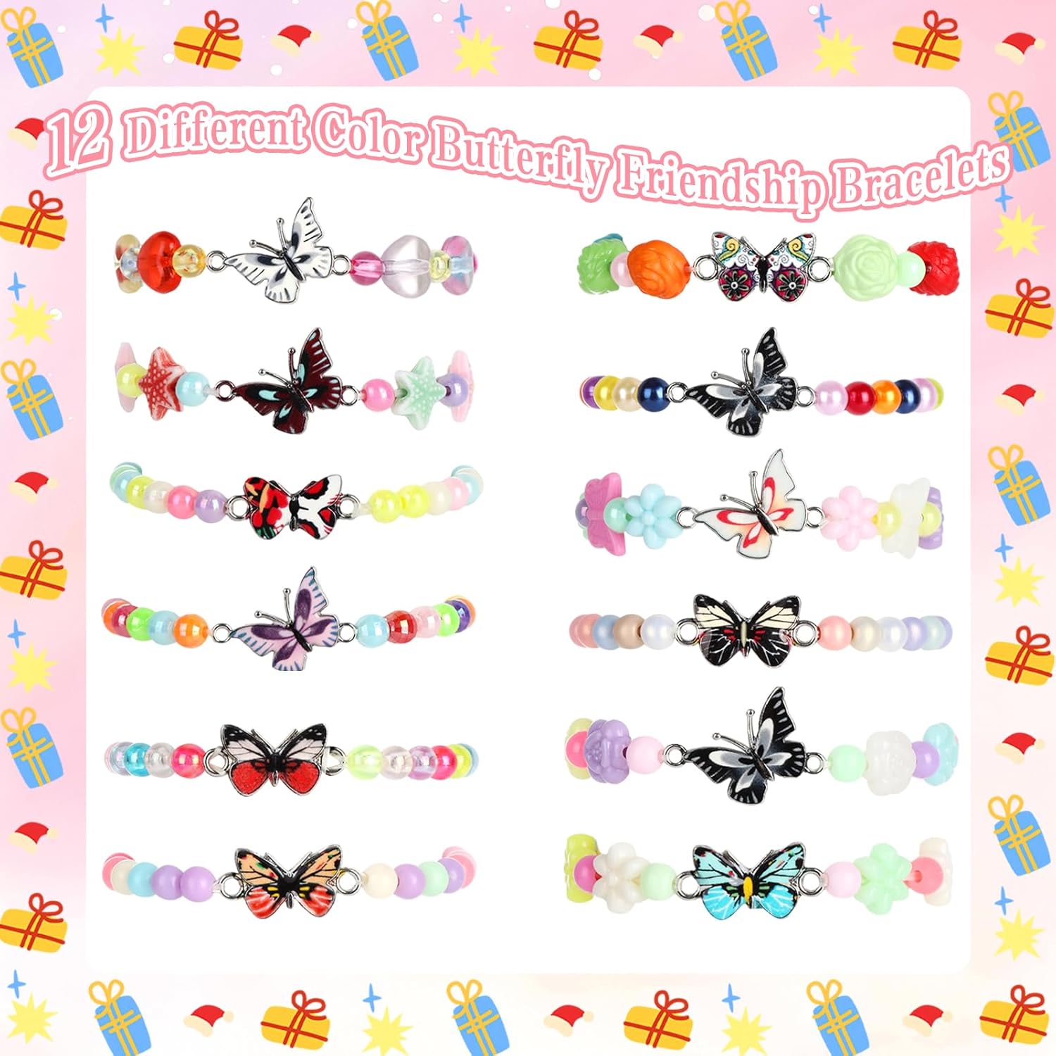Dettagli del prodotto: Il set di braccialetti colorati di questi bambini contiene 12 diversi stili, ciascuno composto da perle acriliche ecologiche e leghe antiallergiche con colori vivaci e resistenza all'usura. La corda elastica è progettata per adattarsi a una circonferenza del polso di 8-12 cm, quindi è comodo da indossare e non facile da rompere. Adatto per diverse scene come quotidiane, feste e fotografia, sia interessante che sicuro. È un accessorio ideale. per migliorare l'estetica e promuovere le abilità sociali dei bambini,ed è anche la prima scelta per i regali di festa dei bambini! Specifiche del prodotto: Colore: rosso e verde. Materiale: lega + acrilico. Dimensioni anello interno: 8-12 cm. Citazione:12 modelli I prodotti includono/b> 12 braccialetti a forma di farfalla.