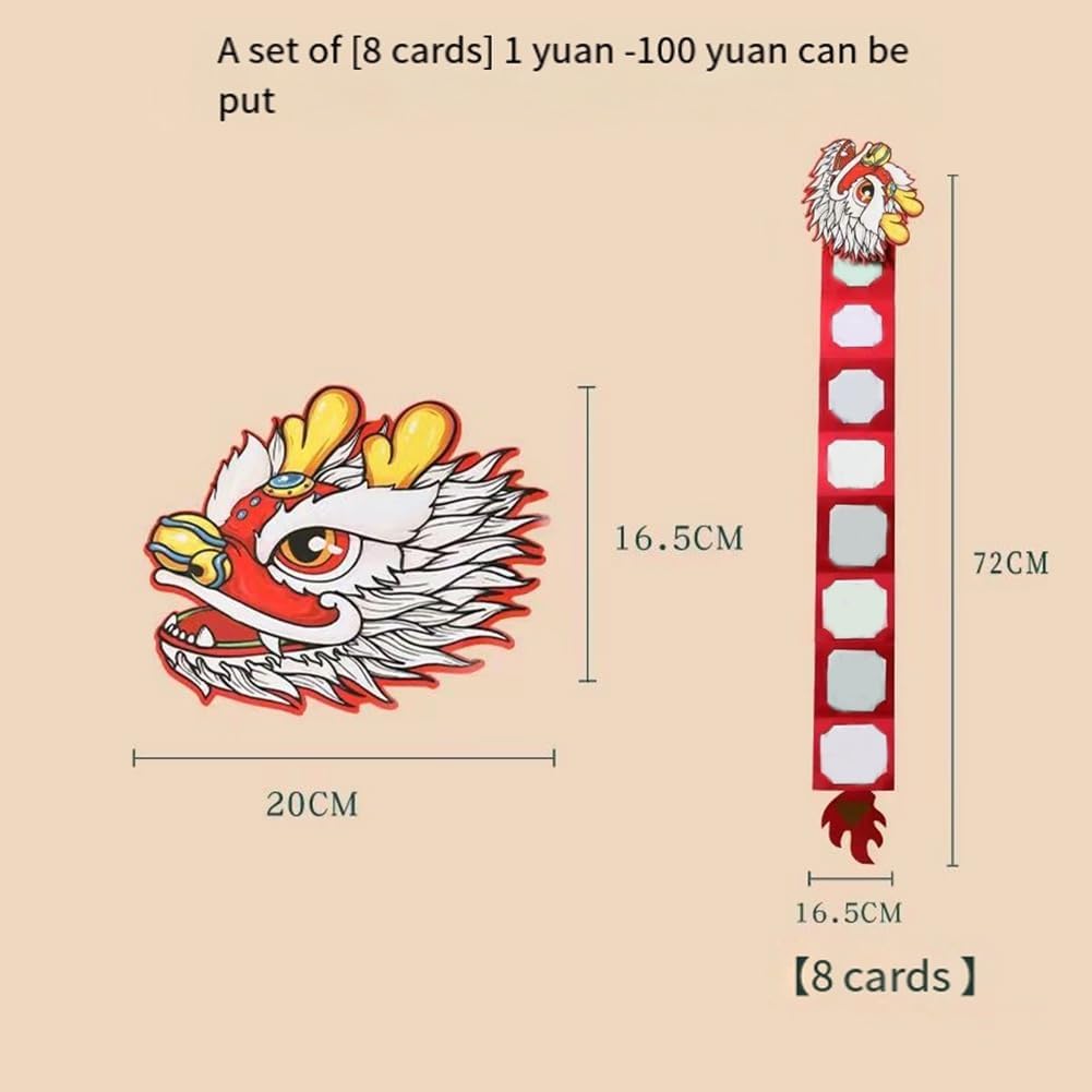 Il significato delle buste rosse: i cinesi distribuiscono buste rosse per esprimere i loro auguri e fortuna alla loro famiglia/amici. Aumenta i voti di tutti durante il festival. Busta 'Anno 2024: 12 buste rosse di danza del cinese La busta contiene una forte cultura tradizionale cinese. Questa busta è realizzata con la tecnologia di piegatura, che la rende molto discreta la si dà ad altri. Condivisione di feste e benedizioni: le buste rosse sono molto popolari in Cina e sono ampiamente utilizzate per la festa, l'anno, i compleanni, i matrimoni, ecc. Le persone inviano benedizioni a persone importanti tramite buste rosse. dimensioni: le nostre buste rosse possono essere piastrellate con , dando un aspetto più atmosferico.