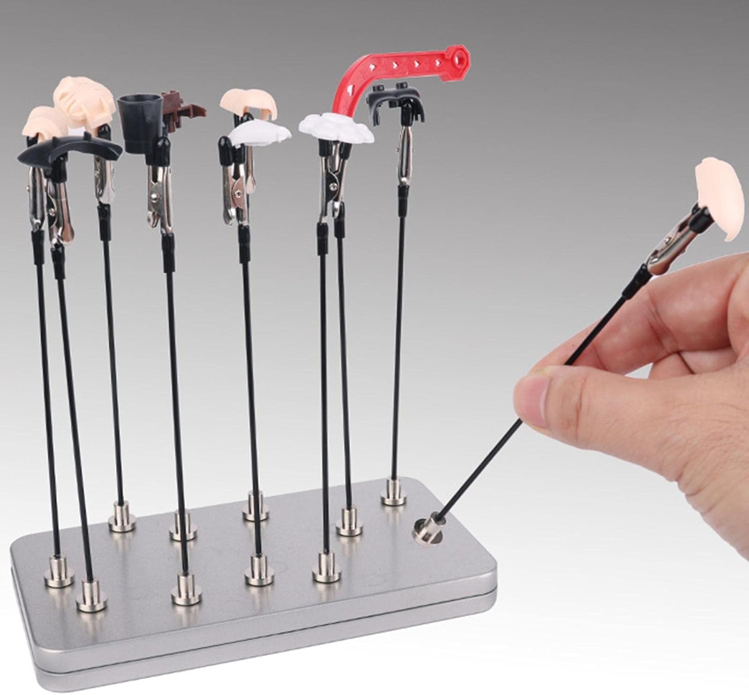Comodo e stabile: le clip di supporto per pittura a colori si attaccano a una base, sono comode e stabili da posizionare. Con una scatola portaoggetti in metallo multiuso, è facile da riporre e utilizzare e assistere varie operazioni. Facile da usare: il forte può mantenere la foto in posizione verticale tutto il tempo, facile da usare, è un buon aiuto indispensabile per la pittura di modelli, piccolo e non occupa spazio, pratico. Materiale preferito: è realizzato in metallo e silice e la barra di ferro è realizzata in vernice per evitare che la barra di ferro si arrugginisca ed è durevole. Testa morbida ispessita: le coperture in gomma aggiornate di alligatore non danneggiano gli oggetti bloccati e sono perfette per assistere alla colorazione. Strumento professionale per hobby: questo strumento di pittura per hobby viene utilizzato da complessi e professionisti che lo useranno per aiutare a dipingere i loro kit di modelli.