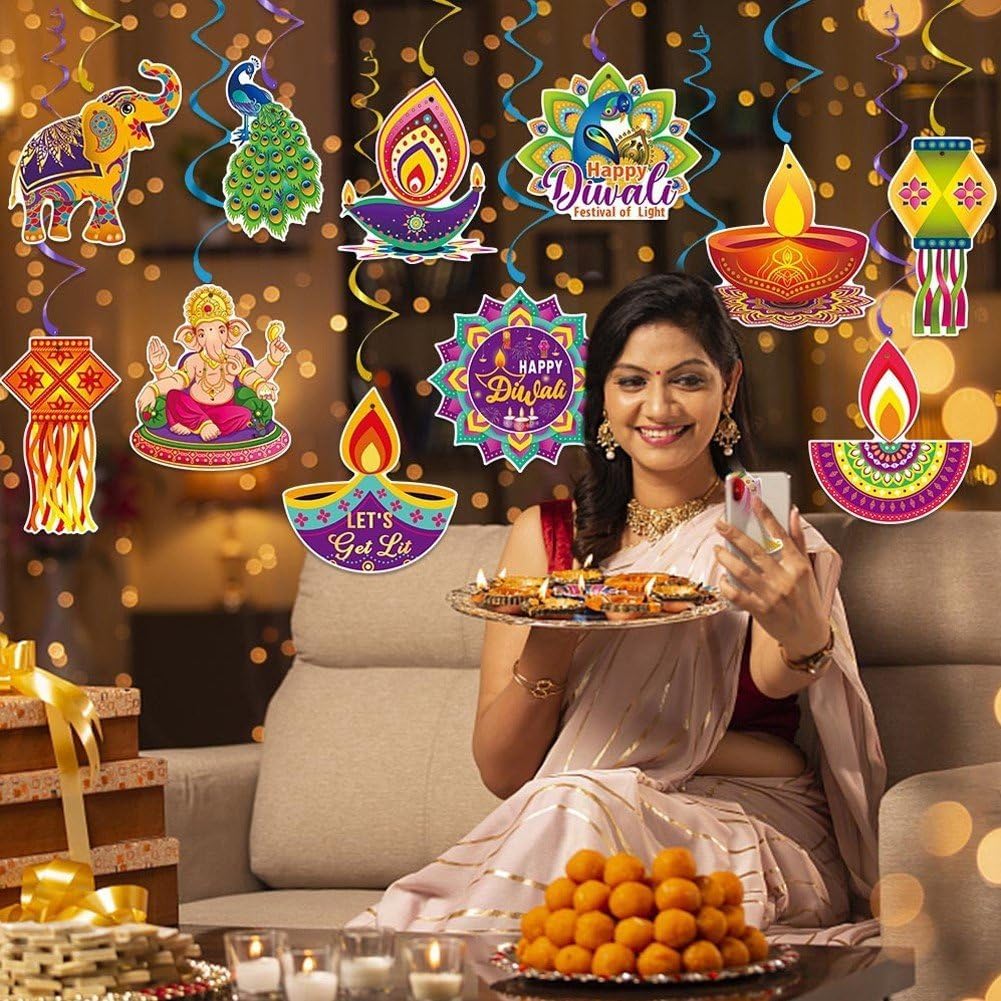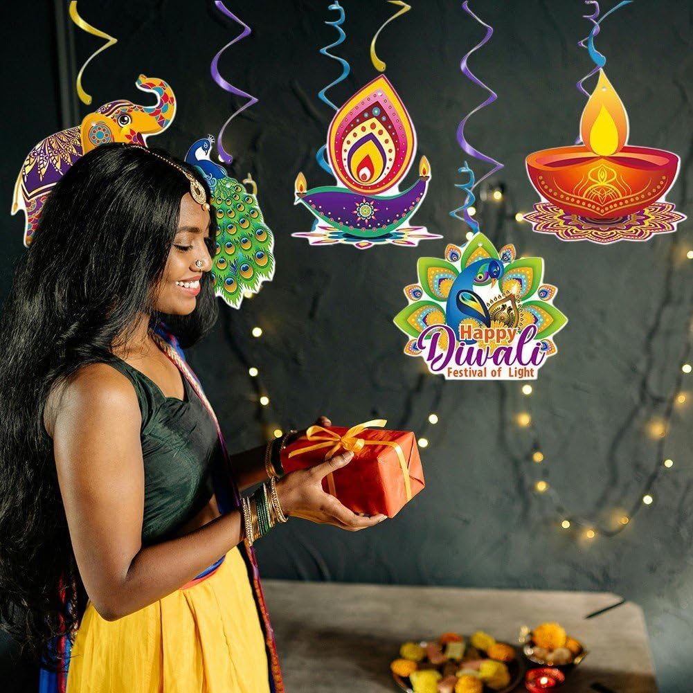 Facili montare e appendere, basta fissare i vortici sospesi soffitto o vuoi, toglierli quando non li usi e riporli facilmente. I vortici sospesi Deepavali sono progettati con elementi misteriosi, squisiti e belli, adatti per riunioni a tema Diwali o feste. Trasforma qualsiasi ambiente, interno o esterno, in un vivace evento a tema Diwali con queste decorazioni a spirale sospese. Ideali per decorare tua casa, organizzare feste indiane di Diwali e Deepavali, promozioni culturali e celebrazioni! Queste decorazioni a spirale per feste sono adatte sia per attività chiuso che all'aperto e possono essere appese soffitto, alla finestra, , alla porta, all', rami degli alberi, soffitti, alle porte, ., rendendo tua festa accattivante e diversa. Le nostre decorazioni a spirale sospese Deepavali sono realizzate in carta resistente con motivi vivaci, resistenti colore, riutilizzabili e affidabili, un must per tutte le celebrazioni del Festival delle in India.