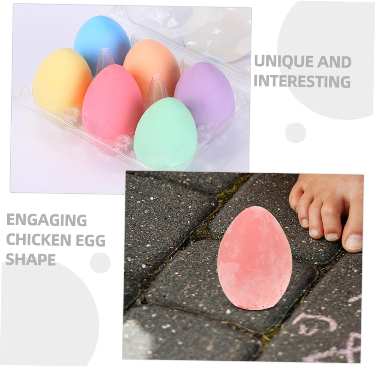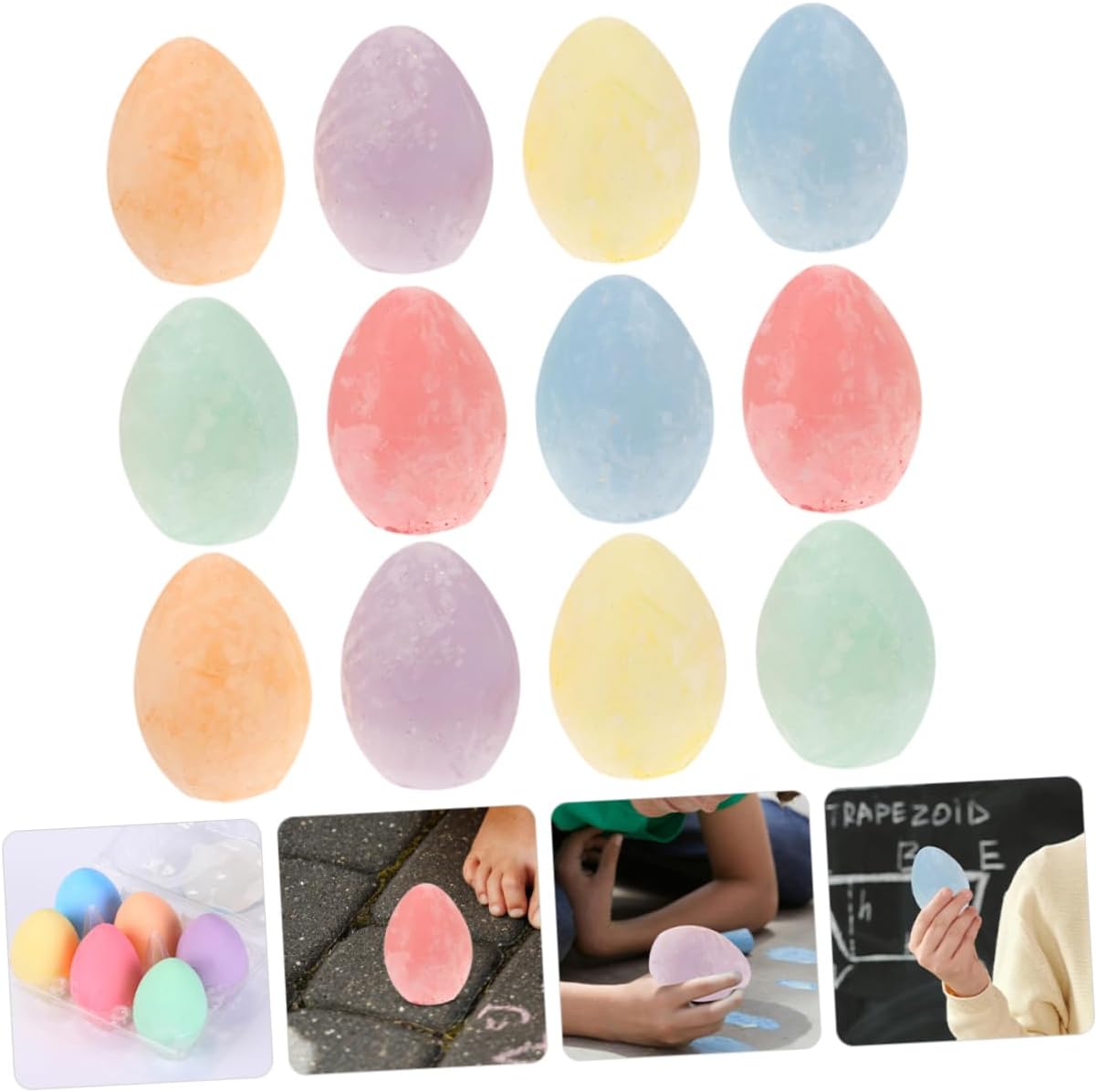 Gessi da disegno a forma di uovo - L'esclusiva forma a uovo di gallina aggiunge un tocco di fantasia all'esperienza di disegno e cattura l'attenzione e l'immaginazione dei bambini, dei giochi artistici e degli adulti Gessi per insegnare - il gesso è comodamente portatile, consente di disegnare e scarabocchiare ovunque, sia all'interno che all'esterno, gessetti solidi Gessetti a forma di uovo - la robustezza e la lunghezza del gesso assicurano che possa essere utilizzato ripetutamente senza rompersi o rompersi facilmente per indossarlo, - Gessetti da lavagna per disegnare con il gesso - Sia che tu stia creando capolavori su carta o lasciando correre la tua creatività, questo gesso versatile ti ispirerà e ti intratterrà, Gessi colorati da lavagna a forma di uovo - Il gesso giocattolo stimola la creatività e l'immaginazione del bambino e gli permette di esplorare le sue capacità artistiche, gessetti colorati per bambini piccoli