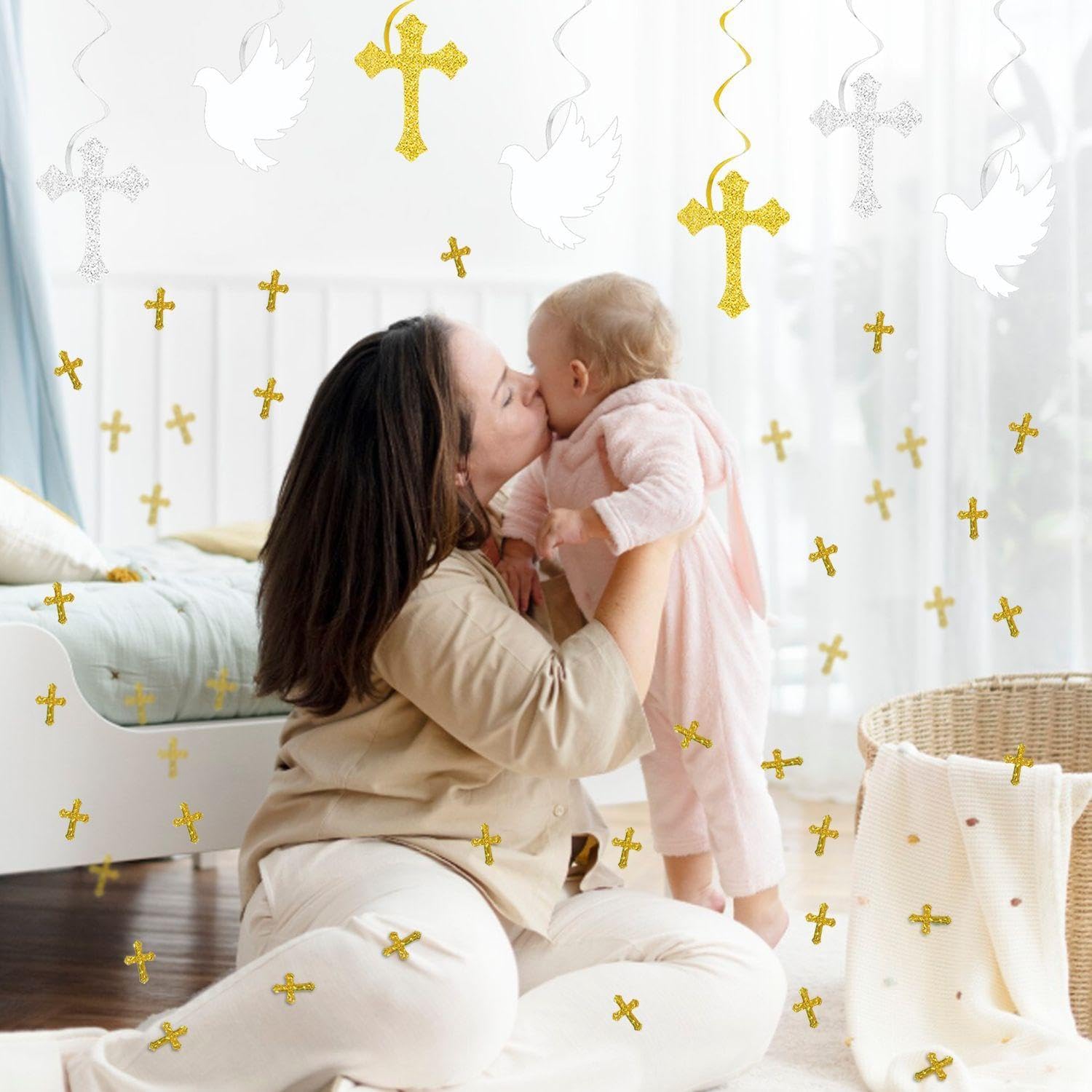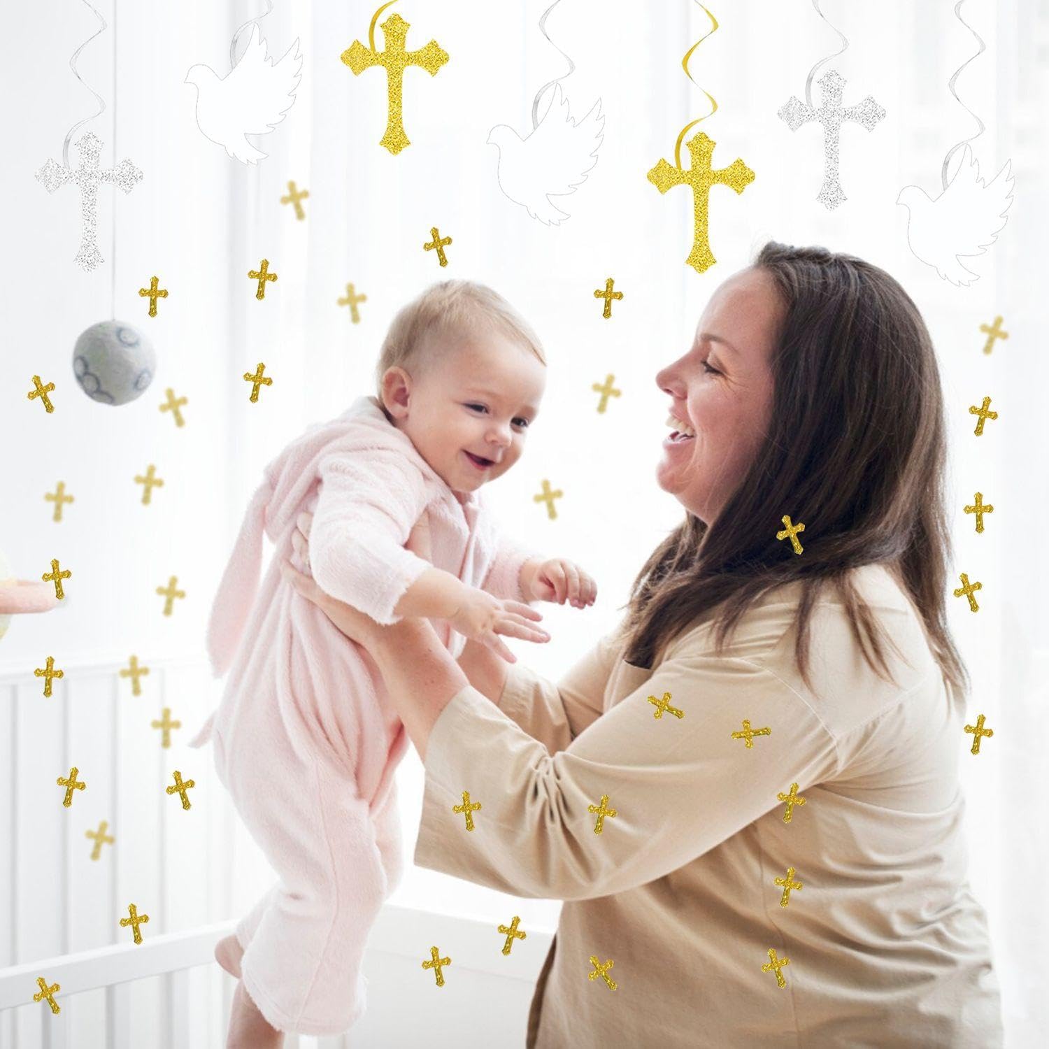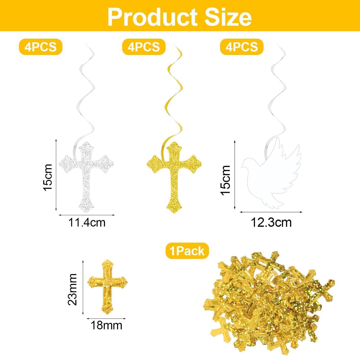 【Contenuto Del Prodotto】 Ottieni 12 Pezzi Di Vestiboli E Coriandoli Incrociati Da 15 G. La Dimensione Del Rimorchio Cross -Rotary È Di Circa 12*15 Cm E I Colori Sono Oro, Argento E Bianco, Che Sono Adatti Per La Decorazione Per Attività Come La Comunione E Il Battesimo. I Coriandoli Incrociati Hanno Una Dimensione Di Circa 1 Cm Ed È Dorato. 【Materiale Del Prodotto】 Questo Prodotto È Realizzato In Plastica Ed È Leggero E Resistente. Il Materiale Plastico Garantisce La Durata Della Decorazione Sospesa E Dei Coriandoli Di Carta Ed È Adatto A Diversi Decorazioni Sospese Per Uso O Lungo Termine. 【Design Squisiti】 Questo Prodotto È Progettato Magnificamente, Tra Cui Rimorchi A Forma Di Croce E Coriandoli Di Carta Squisiti Con Un Bellissimo Effetto Complessivo. Il Trailer Ha Un Effetto Rotante Che Può Brillare Nella Luce, Che Contribuisce Alla Santa E Calda Atmosfera Dell'Evento. 【Ampliato】 Questo Prodotto È Molto Adatto Alla Decorazione Per Attività Religiose Come Comunità, Battesimo, Matrimoni, Ecc. Sul Soffitto, Muro O Come Decorazione Desktop, Crea Un'Atmosfera Solenne Ed Elee. 【Facile Da Usare】 Queste Piste E Coriandoli Sono Facili Da Usare, Semplicemente Appendere O Distribuire. Il Materiale Leggero Rende Semplicemente Più Facile L'Installazione E Lo Smontaggio, Il Che Ti Rende Più Facile Decorare Diverse Attività.