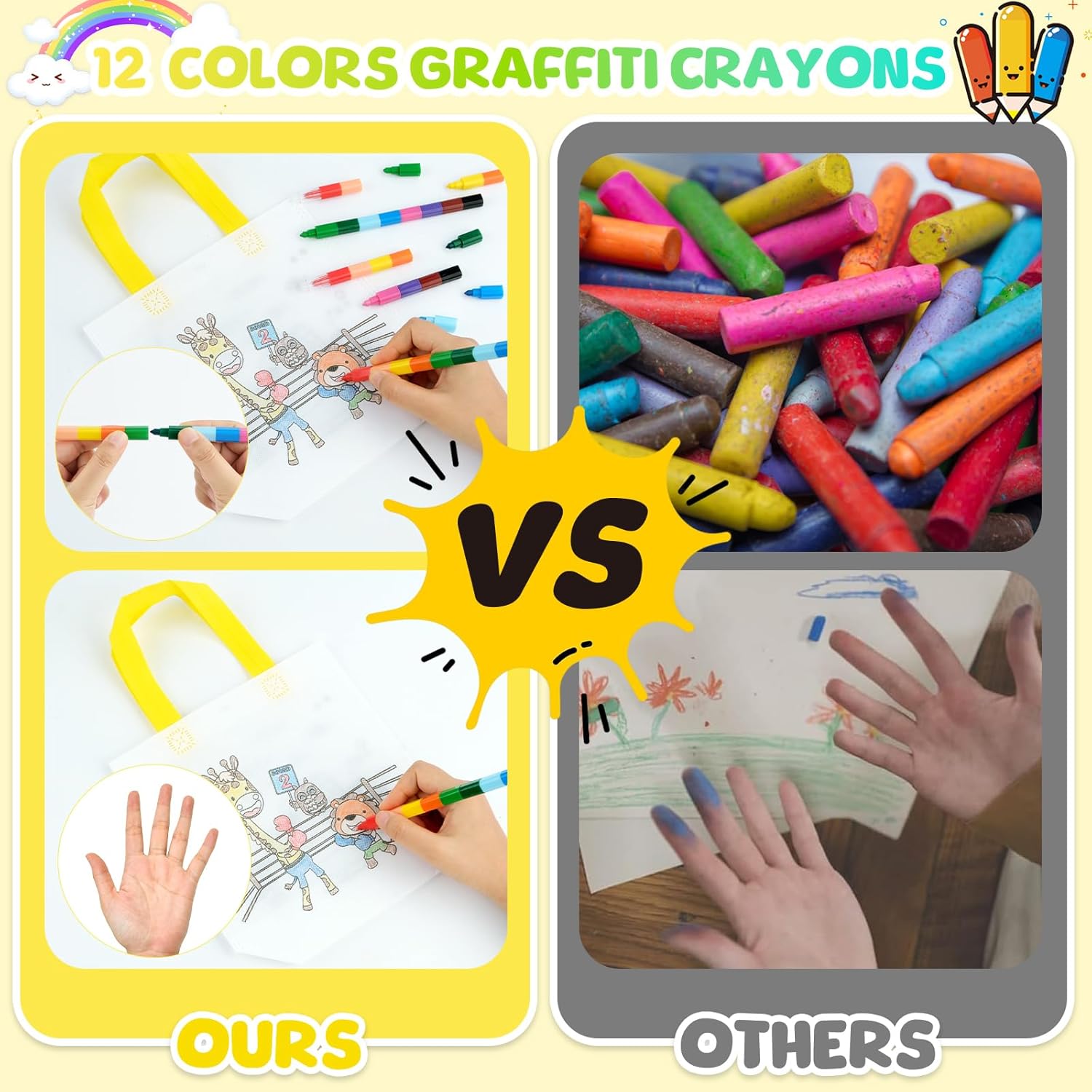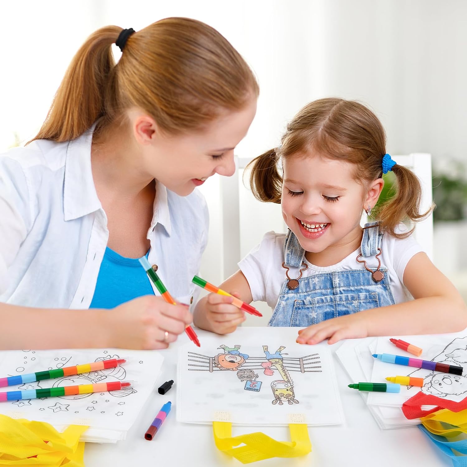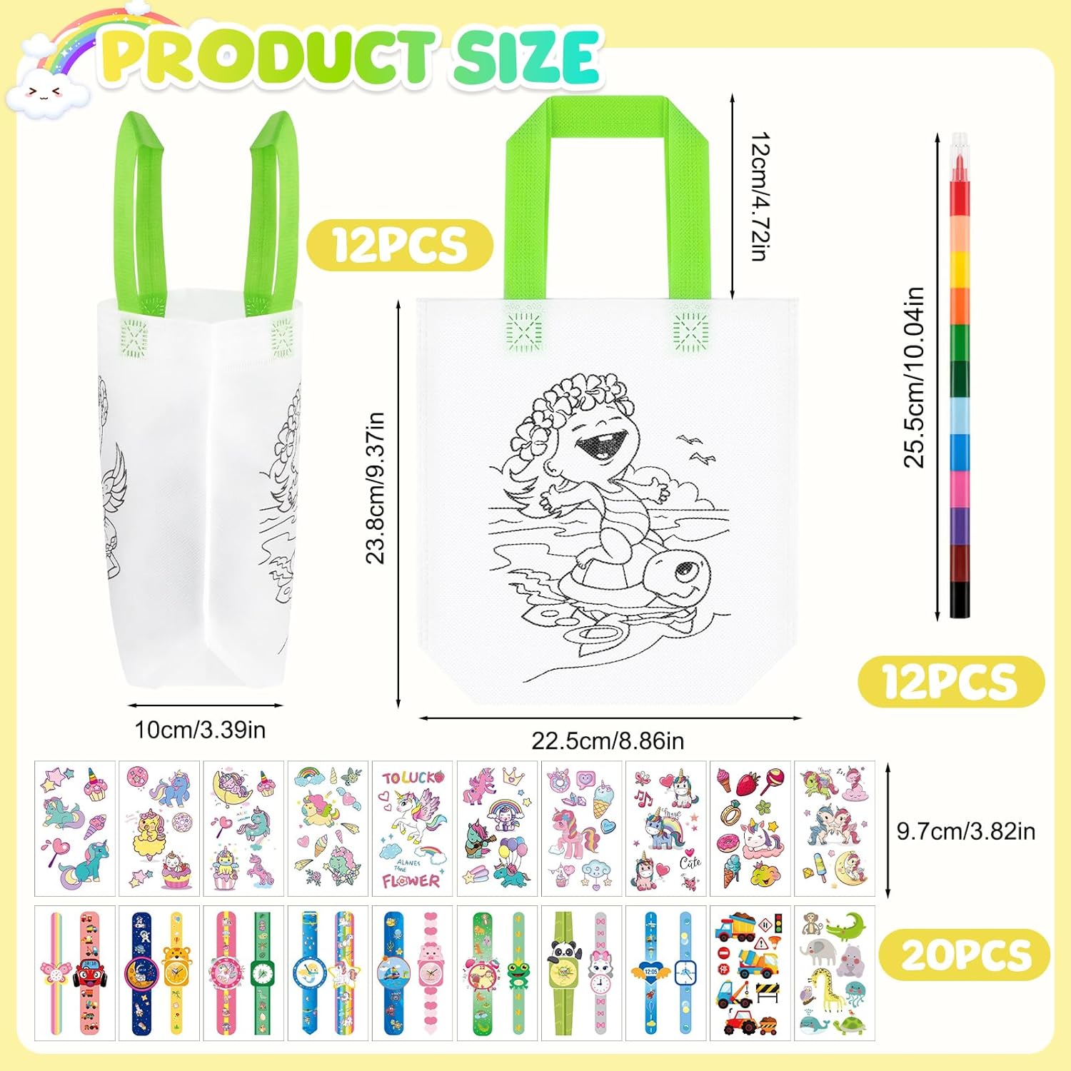 ✨ 【Set da disegno per bambini fai da te】Il set di prodotti comprende 12 sacchetti in tessuto non tessuto con motivi diversi e 12 pastelli impilabili, include anche 10 fogli di adesivi per unicorni e 10 fogli di adesivi per orologi per bambini, i bambini possono colorare liberamente i sacchetti regalo dei cartoni animati con i loro colori preferiti e incollarli con i loro motivi preferiti. 🌈 【Materiale di alta qualità】Le Sacche da Colorare sono realizzate in tessuto non tessuto di alta qualità, atossico, inodore, sicuro ed ecologico, facile da colorare e resistente. Le matite colorate sono realizzate con cera di alta qualità, colori brillanti, non facili da macchiare le mani. Gli adesivi per tatuaggi per bambini sono sicuri al 100% e delicati sulla pelle dei bambini, facili da usare e da pulire. 🐘【24 motivi diversi】Ogni busta da disegno ha un motivo diverso su entrambi i lati, senza ripetizioni, per un totale di 24 motivi diversi, tra cui gufi, dinosauri, Babbo Natale, astronauti, canguri, giraffe, orsi, ippopotami, conigli, sirene, fenicotteri, elefanti, squali e altri modelli di cartoni animati animali, linee di modello chiare sono facili da tracciare e colorare. 🌼【Pastelli multicolore per bambini】 Ogni penna è lunga 23,5 cm e dispone di 12 colori. I bambini possono imparare a identificare meglio i colori e a scarabocchiare secondo le proprie preferenze. Questo può migliorare l'immaginazione, la concentrazione e la creatività. 🙋【Regalo di compleanno per bambini】I bambini possono utilizzare le borse da disegno per bambini per conservare caramelle, snack, piccoli giocattoli, libri e altri piccoli oggetti. Il set di borse da disegno fai da te è un regalo perfetto per i bambini, adatto per borse di compleanno, borse per feste per bambini, attività per bambini, feste di matrimonio, premi in classe, borse per caramelle di Halloween e regali di Natale.