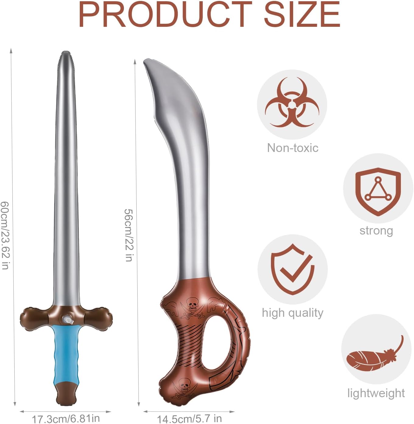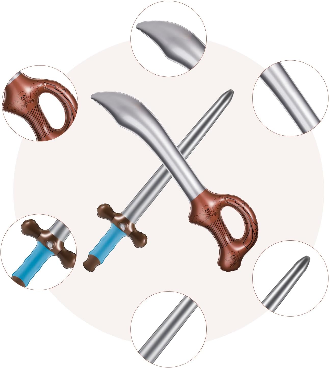 Contenuto del pacchetto: riceverai 12 spade pirati gonfiabili, con due stili diversi, abbastanza quantità per soddisfare il tuo partito a tema pirata e le esigenze di gioco di ruolo, che possono farti divertire molto. Dimensione del prodotto: la dimensione della spada blu è di circa 60x17,3 cm, la dimensione del coltello è di circa 56x14,5 cm.Sono facili da trasportare e archiviare nella vita quotidiana. Materiale premium: questa spada gonfiabile è realizzata con materiale in PVC di buona qualità, che è leggero e confortevole da contenere, resistente e resistente, non facile da rompere e puoi usarla con fiducia. Toy interessante: le nostre spade pirata gonfiabili sono stampate magnificamente e chiaramente, con un aspetto vivido e realistico.Sono giocattoli gonfiabili molto interessanti che possono offrirti esperienze interessanti e lasciare ricordi felici. Ampiamente usate: queste spade gonfiabili sono molto adatte per il gioco di ruolo a tema pirata, feste di compleanno, feste di Halloween e altre occasioni, che possono rendere la tua festa piena di risate e gioia e possono anche essere giocattoli per i bambini quando sono annoiati.