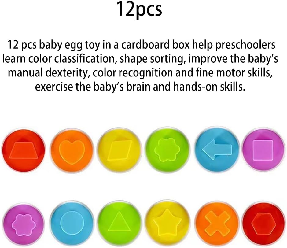Materiale durevole: l'uso di una produzione di materiale sicura e non tossica per i bambini, in modo che i bambini possano giocare con sicurezza e l'uovo di plastica sia facilmente separato e chiuso, adatto ai bambini Design speciale: 12 pezzi di uova giocattolo in una scatola di cartone aiutano i bambini in età prescolare a imparare la classificazione dei colori, l'ordinamento delle forme, migliorare la destrezza manuale del bambino, il riconoscimento del colore e le capacità motorie, esercitare il cervello del bambino e le abilità pratiche Funzione utile: queste luminose uova interattive con un design bianco puro, a Pasqua, puoi dipingere le uova con il tuo bambino Ottima fattura: questo set di uova per l'apprendimento precoce è molto robusto, le parti all'interno non cadranno facilmente e perderanno colore, è un bambino che può giocare con giocattoli a lungo termine Strumento significativo: progetta un nuovo look, aggiungi divertimento alla vacanza sviluppando anche l'immaginazione del bambino
