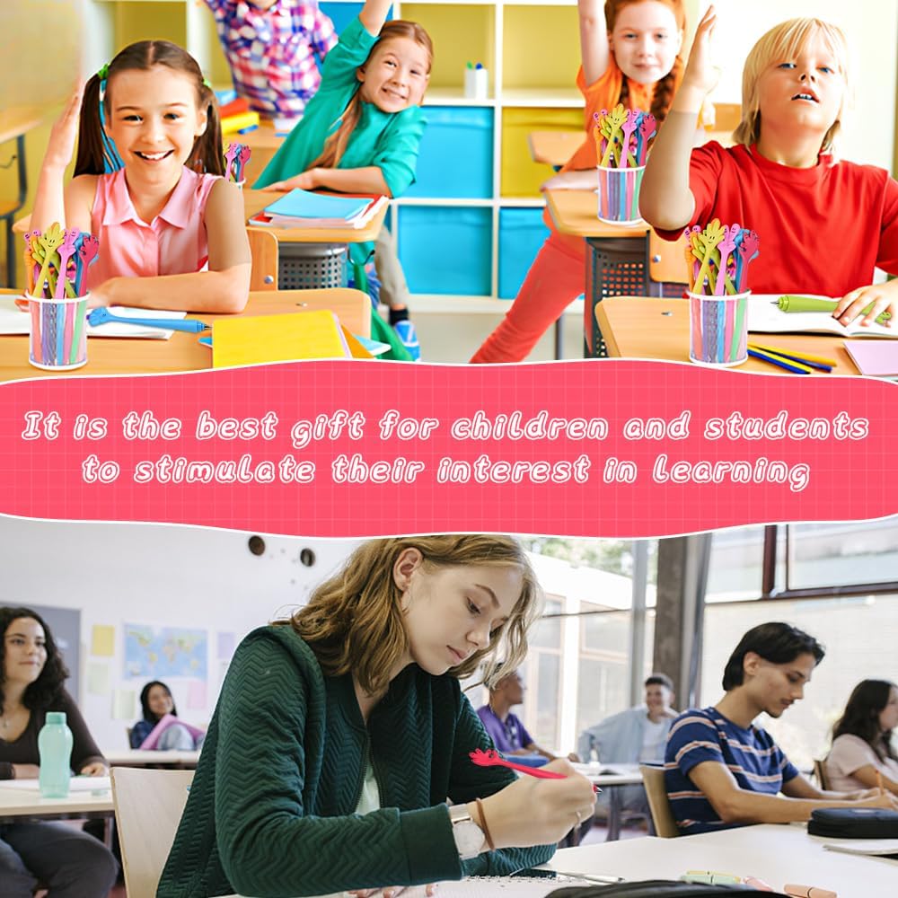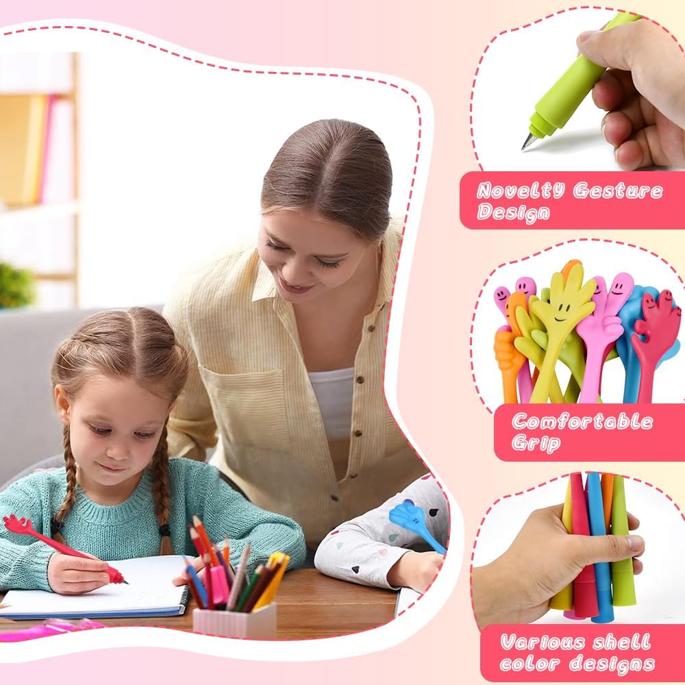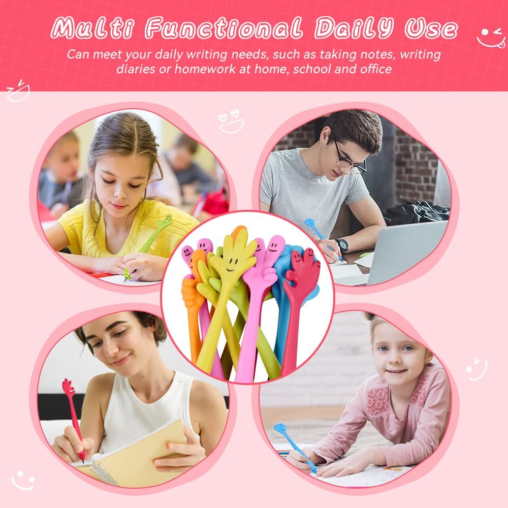 【Set di 12 Penne | Design Segno della Mano】 Include 12 penne a sfera piega il segno della mano in 6 colori vivaci (blu, rosa fucsia, rosa, verde, arancione, giallo), realizzate in silicone + plastica e dimensioni 19,5cmx2cm. Questa divertente penna a sfera presenta un design a forma di dito che può alleviare lo stress mentre si lavora o si studia ed è amata sia dai bambini che dagli adulti 【Punta 0,7 mm | Scrittura Fluida e Senza Macchie】 Le penne a sfera da 0,7 mm offrono una scrittura fluida e costante, senza rotture di inchiostro. L'inchiostro si asciuga rapidamente, evitando sbiadimenti o macchie, ideale per appunti a scuola, diari a casa o note in ufficio. Risolve il fastidio delle scritture scomposte o delle macchie che rovinano i documenti o i compiti 【Materiale Morbido | Piegabile e Durabile】 Le penne a sfera bambini piega sono realizzate in silicone soffice, capaci di piegarsi liberamente senza rompersi. Il materiale resistente garantisce una lunga durata, anche con uso frequente da parte dei bambini. Evita il problema delle penne fragili che si rottolano o si rompono facilmente 【Versatilità | Uso Quotidiano e Regali per Ogni Occasione】 Oltre all'uso quotidiano (casa, scuola, ufficio), questo divertente cartone penne a sfera è un regalo ideale per compleanni, feste, eventi aziendali, lauree e festività. Adatta a bambini, studenti e anche adulti che amano i gadget divertenti, risolvendo la limitazione di uso solo per un gruppo di persone 【Tenuta Comfortevole | Riduzione della Stanchezza Manuale】 Grazie al silicone soffice, la tenuta è comfortevole anche durante lunghe sessioni di scrittura (es. Compiti o appunti), reducendo il stanchezza della mano. Le penne a sfera piega il segno della mano combinano funzionalità e divertimento, making ogni attività di scrittura più leggera e piacevole per tutti gli utenti