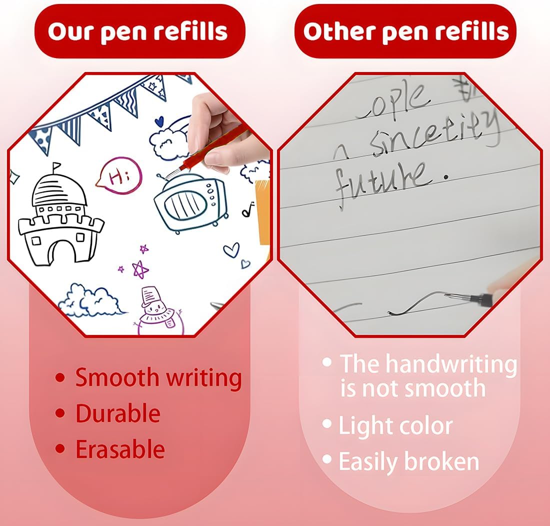 1,✏【Alta qualità delle mine cancellabili】: Le mine ricaricabili HABNI (13 cm di lunghezza, punta da 0,7 mm) sono dotate di inchiostro termico di alta qualità che permette di scrivere in rosso vibrante. Ogni mina è stata testata professionalmente e offre una durata di scrittura superiore a 200 metri, ideale per uso quotidiano, annotazioni e progetti creativi. 2,🔴【Compatibilità perfetta】: Questo set da 12 mine (diametro di 4 mm) è stato progettato per essere compatibile con le penne Legami cancellabili. Grazie alla sua forma e dimensione precise, le mine si adattano perfettamente, garantendo un’ottima esperienza di scrittura e una sostituzione semplice, perfette per prolungare la durata dei tuoi strumenti preferiti. 3,🌡【Inchiostro termico innovativo】: L'inchiostro termico esclusivo consente di cancellare facilmente le scritture con la gomma incorporata, senza danneggiare il foglio. Il rosso vivace rimane sempre chiaro e brillante, ideale per correzioni rapide e cambiamenti senza compromettere la qualità del materiale. 4,🎨【Uso versatile】: Che tu stia facendo schizzi, appunti o lavori creativi, queste mine offrono una scrittura fluida e costante. Sono particolarmente apprezzate da studenti, insegnanti e creativi che cercano qualità, praticità e flessibilità in un unico prodotto. (Nota: non adatte per documenti ufficiali.) 5,📦【Confezione conveniente】: Con 12 mine ricaricabili in una pratica confezione, sarai sempre preparato. Le mine sono facili da riporre e sempre pronte all'uso, una soluzione ideale per chi desidera una fornitura duratura per il proprio strumento di scrittura preferito.