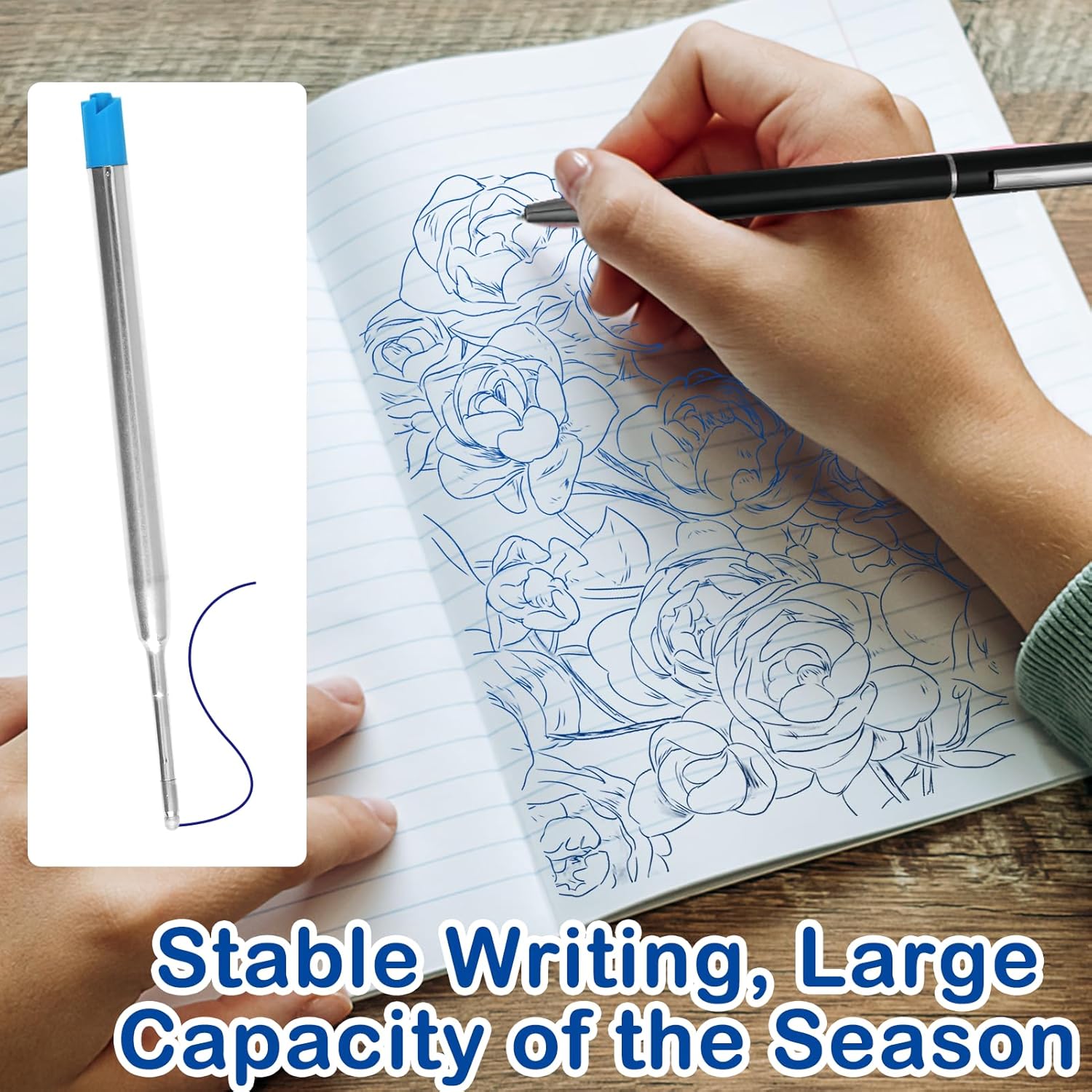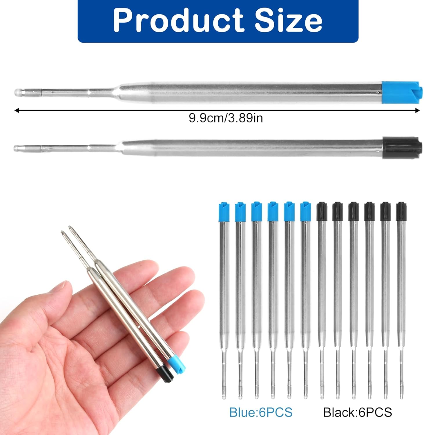 【Ampia Disponibilità】 Riceverai 6 ricariche per penne a sfera nere e 6 ricariche per penne a sfera blu, sufficienti per un uso prolungato in ufficio, scuola o a casa. Ideale per studenti, professionisti e per un uso quotidiano. 【Scrittura Liscia e Duratura】 Queste ricariche offrono un'esperienza di scrittura fluida e continua, grazie alla punta di precisione da 1 mm e all'inchiostro di alta qualità, resistente all'acqua e che non sbava. 【Dimensioni Pratiche】 Ogni ricarica misura 9,9 cm di lunghezza e ha un peso di soli 3,1 grammi, rendendole facili da trasportare e compatibili con la maggior parte delle penne a sfera standard. 【Inchiostro ad Asciugatura Rapida】 Minimizza sbavature e macchie grazie all'inchiostro ad asciugatura rapida, perfetto per scrivere note rapide o per lunghe sessioni di scrittura senza interruzioni. 【Versatilità di Utilizzo】 Adatte per varie applicazioni, queste ricariche sono compatibili con molti modelli di penne, assicurandoti che la tua penna preferita sia sempre pronta all'uso.