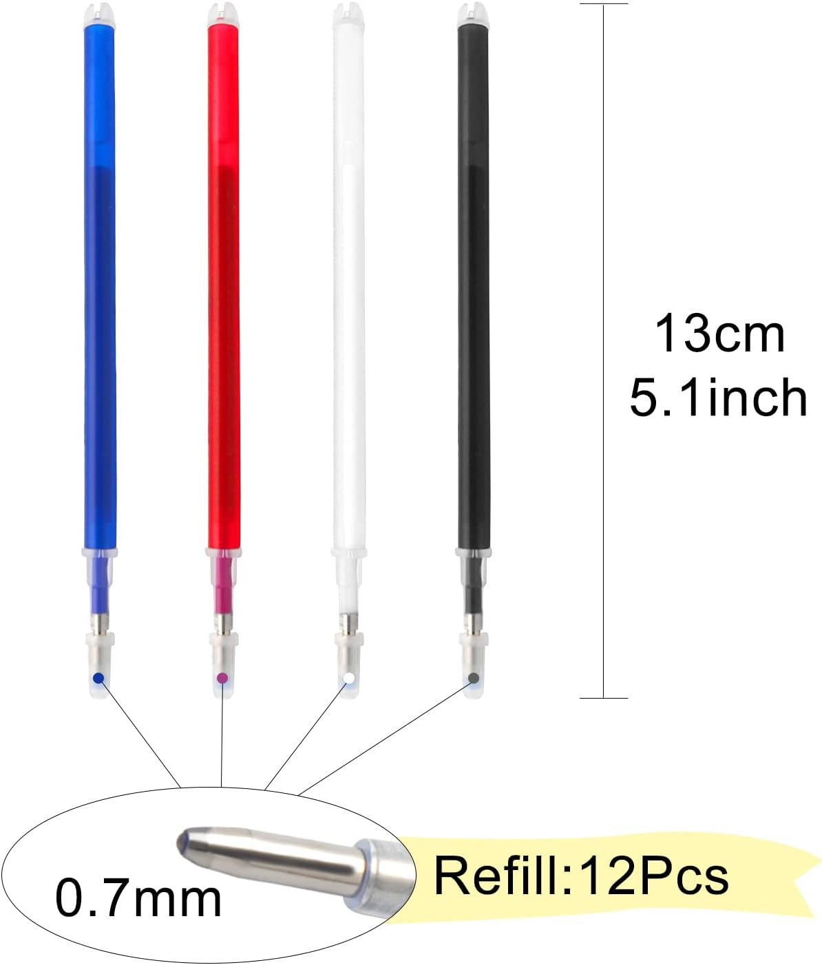 ð Environment-Friendly Refill: The Erasable Refill are healthy and no harm. One nib is writable, another is erasable, can be identified, or easily remove when not needed. Erase and rewrite repeatedly without damaging the paper, prolong service life. Il miglior uso di sbalzi ad alta temperatura è scritto su pelle e tessuti. Non si consiglia di essere utilizzato sui normali quaderni di carta ð Easy to erase: The Tip of Erasable Refill is well balanced and the writing very good that any small mistake can be easily eliminated. You can rub the font with the eraser at the top of the refill and then write it again in the same place where you made mistakes. ðCompatible with several bands: The Refill make your pens last much longer and they are much more profitable than buying a new pen every time it runs out. And specifically designed to be compatible with several sore pens marks. ðApplication Scenes: You can use it to write Brilliant or it can use directly. The refill easy to grip and the ink dry quickly after writing, do not smudge easily. They are suitable for drawing and written work. ðNo Harmful Substances: Ink flows beautifully. Color Optional: Black, Red, Blue, White. Refill Size: approximately 11 cm. Tip: 0.7 mm. Package Include: 12 * Erasable Refill.