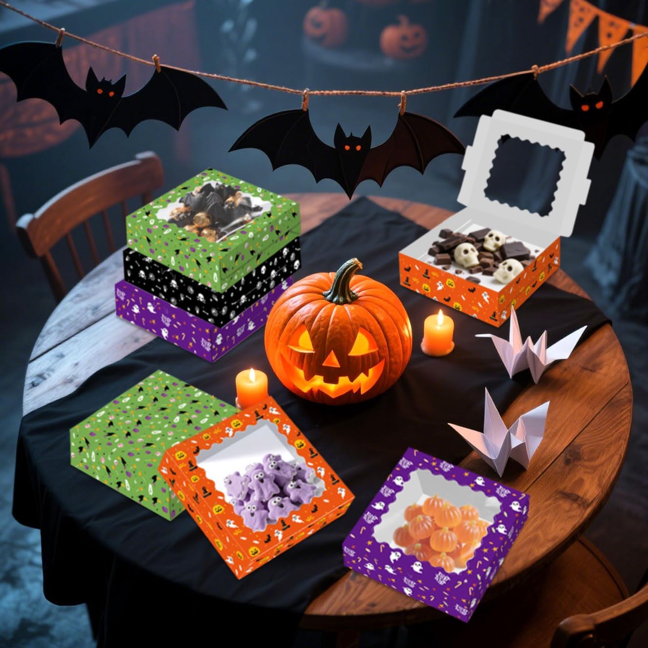 Queste scatole di caramelle con motivo fantasma di zucca donano un tocco spettrale ad ogni festa di Halloween Queste scatole portadolcetti fantasmi sono ideali per feste scolastiche o per il giro del "Süßes oder Saures" nel quartiere. Decorati con fantasmi divertenti che entusiasmano i bambini, offrono spazio per una generosa quantità di dolciumi Personalizza la tua festa di Halloween con queste decorazioni spaventose e accessori per compleanni che ravvivano qualsiasi evento Riceverai: 12 x scatole regalo per feste di Halloween in 4 colori Se hai domande sul prodotto, ti forniremo volentieri assistenza