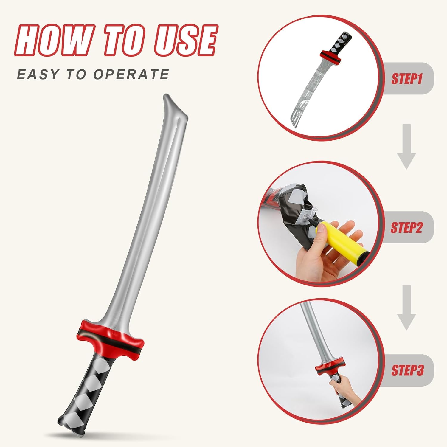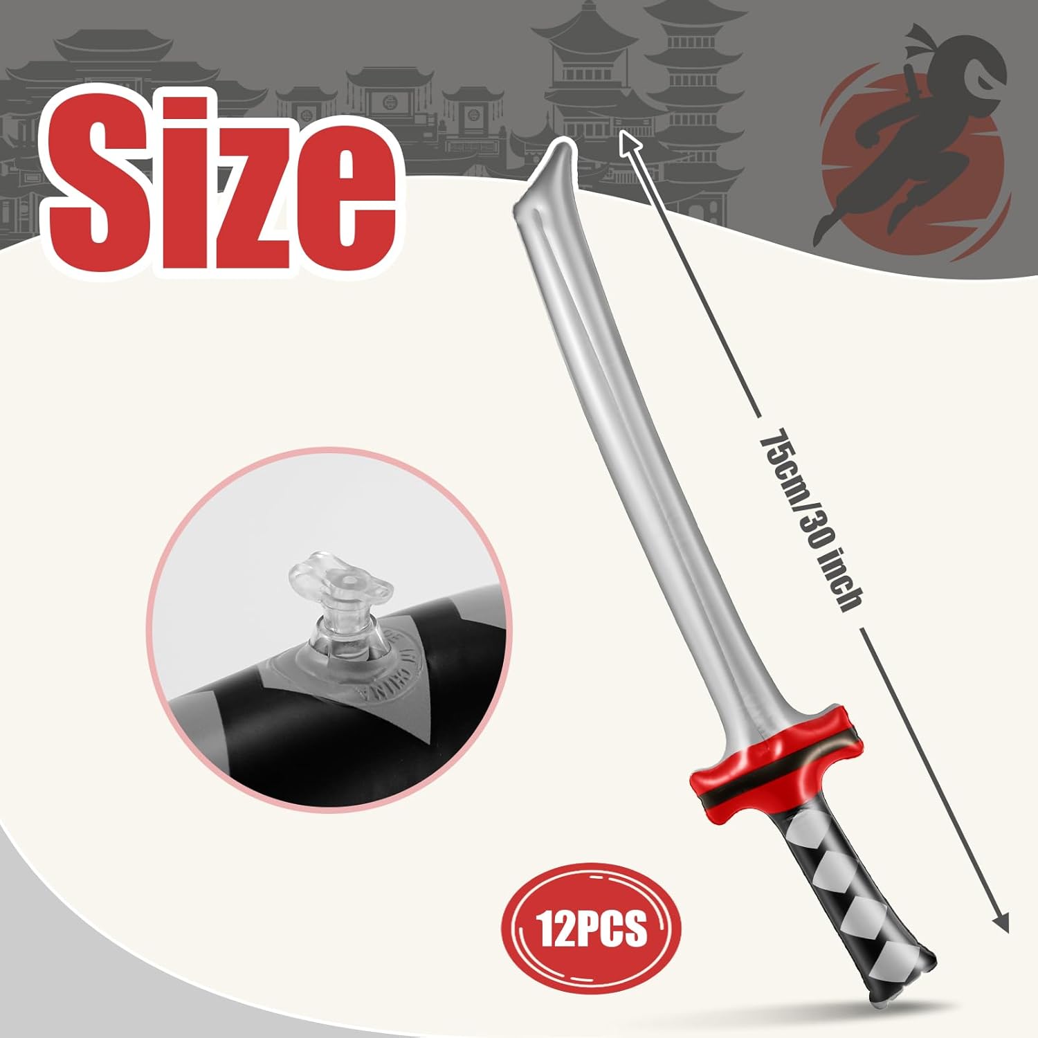 Contenuto della confezione: riceverai 12 spade gonfiabili, sufficienti per le tue esigenze di gioco quotidiano e di decorazione delle feste;puoi anche condividerli con i tuoi amici. Dimensioni del prodotto: la dimensione della spada giocattolo gonfiabile è di circa 75 cm, abbastanza lunga da poterla tenere in mano e giocare;e la superficie liscia non danneggerà la pelle. Materiale del prodotto: realizzato in materiale PVC, leggero ma robusto, non facile da rompere;facile da gonfiare e sgonfiare e comodo da usare. Design speciale: la nostra spada giocattolo gonfiabile è progettata con l'immagine di una spada da samurai giapponese in colori vivaci, squisita e affascinante. Occasioni applicabili: questi giocattoli gonfiabili sono perfetti per feste a tema ninja, compleanni, carnevali, cosplay, spettacoli teatrali, ecc., regalandoti ricordi molto divertenti e indimenticabili.