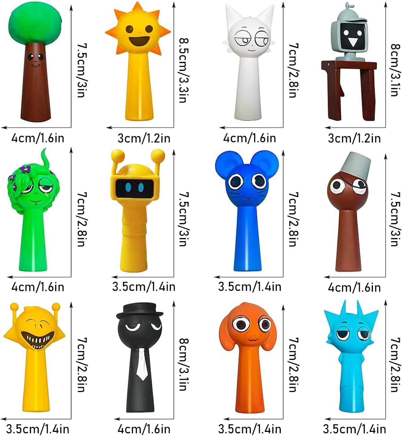 Bambole Giocattolo: Queste colorate bambole sprunki si ispirano ai personaggi dei giocattoli più amati. Con le loro forme uniche e i dettagli raffinati, sprunki peluche porta colore e gioia infinita a ogni famiglia. L'abbinamento dei colori e il design grazioso e accattivante di giocattoli catturano perfettamente il fascino unico dei personaggi dei cartoni animati, facendoli innamorare a prima vista Materiali di Alta Qualità: Sprunki giochi è realizzata con cura in PVC di alta qualità per garantire atossicità, inodore, sicurezza e affidabilità. Ogni personaggio è alto circa 7-8,5 cm, una dimensione perfetta per il gioco dei bambini. La sicurezza dei materiali pupazzi sprunki è garantita, quindi i genitori non devono preoccuparsi degli effetti negativi sulla salute dei propri figli e possono lasciare che i loro figli giochino con loro senza preoccupazioni Decorazione Versatile: Sprunki compleanno contiene 12 bambole sprunky personaggi con forme diverse, diverse e interessanti. Peluche sprunki è molto adatta per essere posizionata sulla scrivania come una raffinata decorazione, creando facilmente un'atmosfera confortevole e accogliente. Che si tratti dell'allestimento di una festa di Natale o delle decorazioni natalizie del soggiorno o dell'ufficio, sprunky peluche può aggiungere un tocco di colore alla scena Sorpresa per i Bambini: Queste sprunki horror sono accuratamente confezionate in una splendida scatola regalo e l'aspetto è molto accattivante. Toys for kids non è solo un regalo ideale per i bambini, ma anche molto attraente per gli adulti che hanno ancora un cuore infantile. I simpatici personaggi dei cartoni animati e le forme colorate delle bambole sono senza dubbio una grande sorpresa per bambini e bambine che amano giocare e collezionare Regalo Ideale: Queste sprunki action figures sono senza dubbio un'ottima scelta come regalo di compleanno per bambini e bambine. giocattoli di peluche sprunki è adatto a una vasta gamma di persone, che si tratti di un regalo tra amici o di un regalo per studenti, laureati e colleghi. Allo stesso tempo, può anche essere utilizzato come regalo per varie celebrazioni. Tutti saranno sorpresi e felici di ricevere questo regalo unico per compleanni, feste, Pasqua e altre occasioni