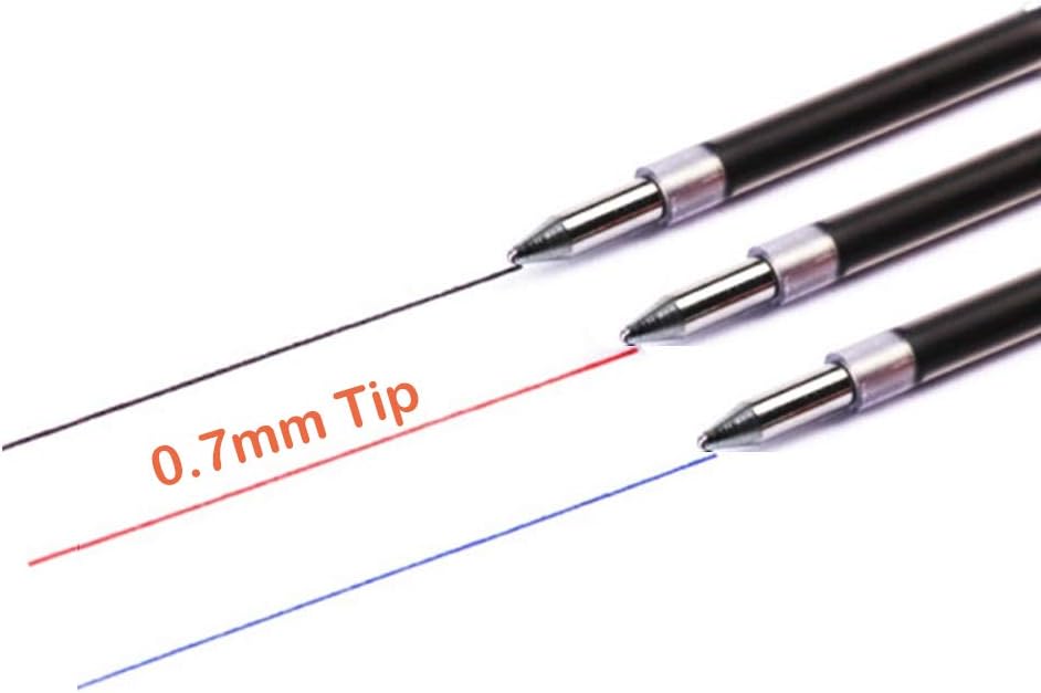 Offrono prestazioni di scrittura più fluide, più pulite e coerenti. Queste ricariche di ricambio consentono di utilizzare la penna ripetutamente, prolungando la durata della tua penna preferita. Ottime per scrivere, possono essere usate per studio, lavoro, ecc. Lunghezza: 14,5 cm. Spessore di scrittura: circa 0,7 mm. Contenuto della confezione: 12 ricariche per penne a sfera.