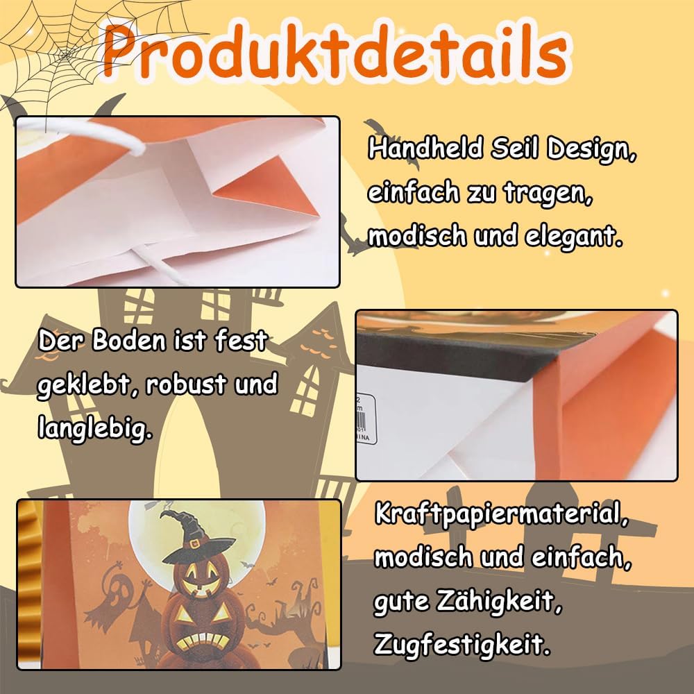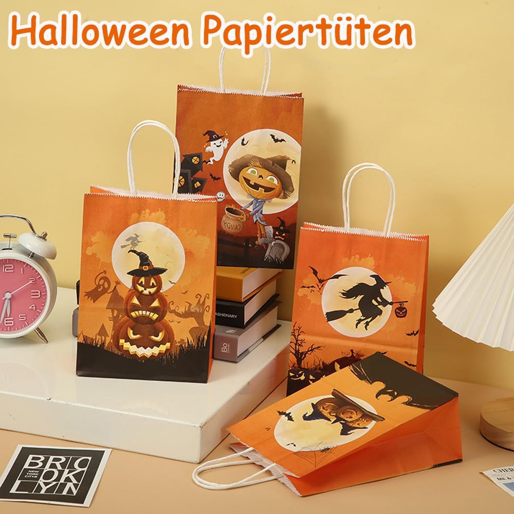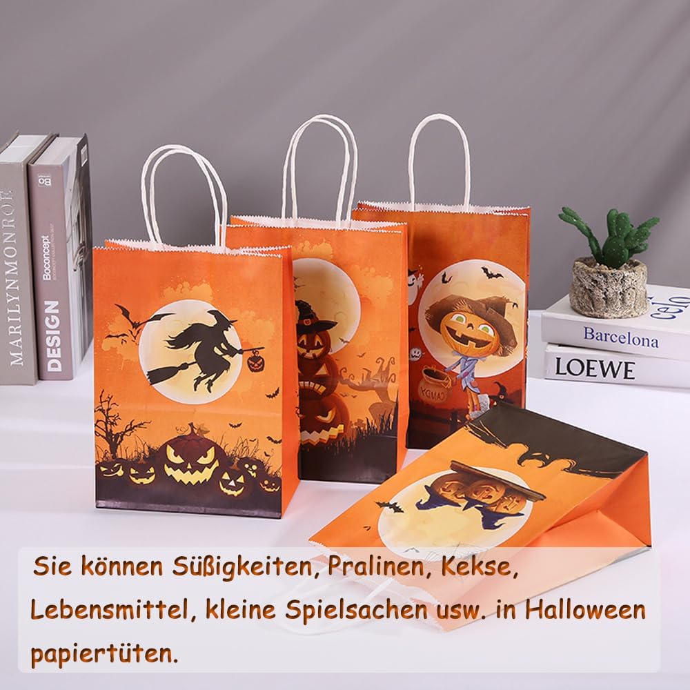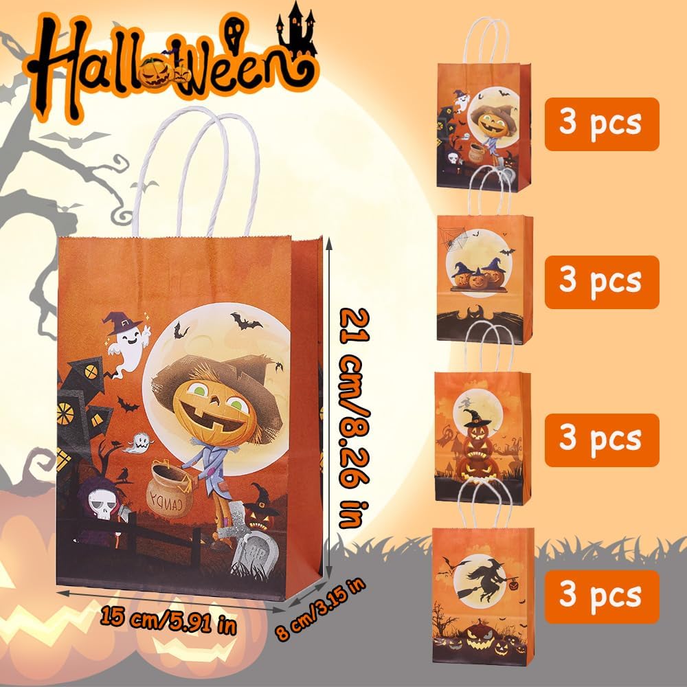 【Incluso】 Il pacchetto include 12 sacchetti di carta regalo. Sacchetto regalo di Halloween con 4 diversi stili di design di Halloween. Ideale per feste di compleanno di Halloween, feste per bambini di Halloween e qualsiasi altra festa di Halloween. 【Dimensioni】 La dimensione estesa di questi sacchetti regalo di Halloween è 15 * 8 * 21 cm / 5,91 * 3,15 * 8,26 pollici (esclusa la dimensione della parte della maniglia). 【Materiale di alta qualità】 I sacchetti regalo di caramelle di Halloween sono realizzati in carta kraft, ecologici, inodori e sicuri da usare, non facili da strappare, facili da trasportare, lunga durata. Può entrare in contatto diretto con gli alimenti. 【Design a tema Halloween】Sacchetti regalo per feste di Halloween, il sacchetto di carta è stampato con zucche, luna piena, castello, mago, gatto, ragnatele, il motivo edes riflette gli elementi di Halloween, aggiunge un'atmosfera festosa. 【Vari usi】 Puoi mettere caramelle, cioccolatini, biscotti, cibo, piccoli giocattoli, ecc. Nei sacchetti di carta di Halloween. Adatto a tutti i tipi di feste, Halloween, serate horror, carnevale e feste di ruolo.