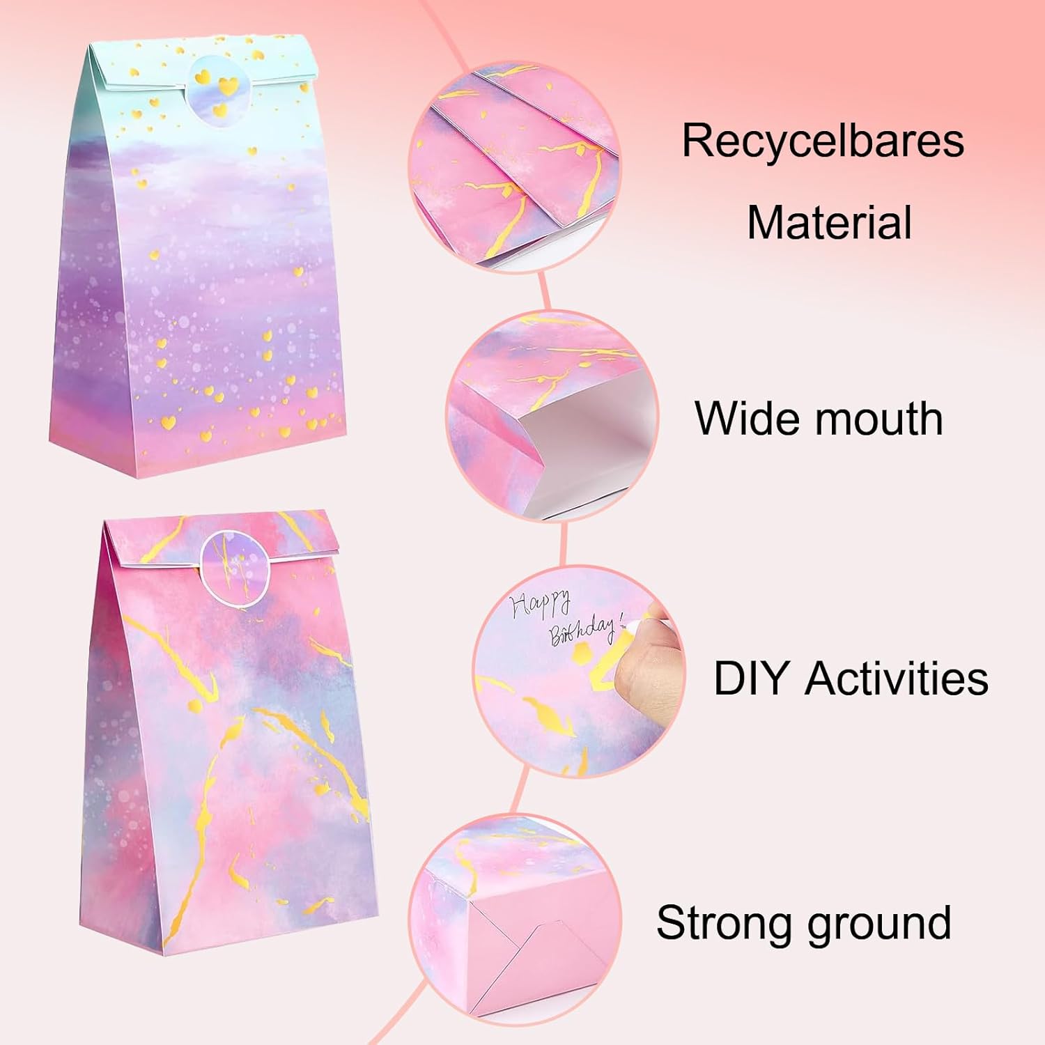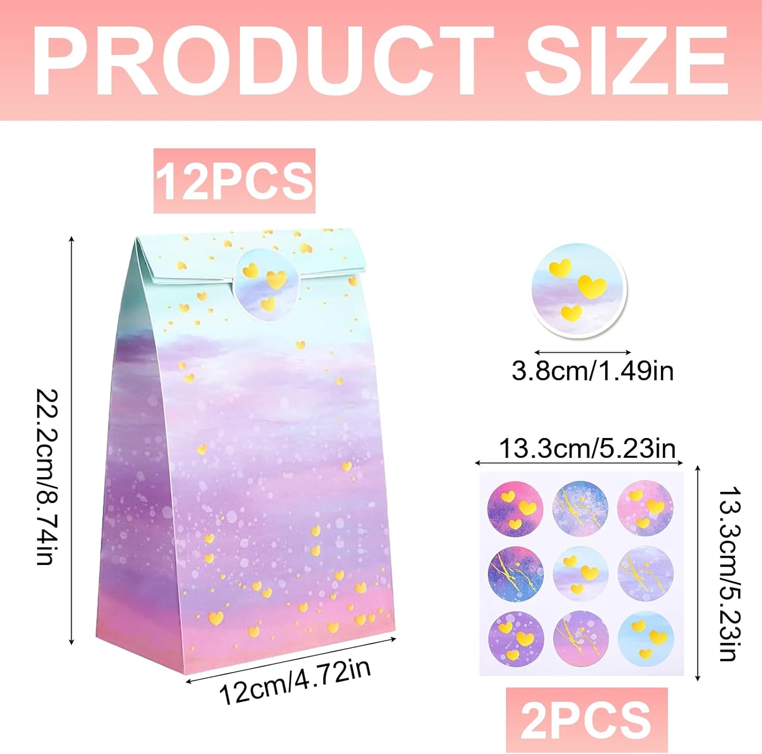 【Contenuto della confezione】 Riceverai 12 sacchetti per il trattamento della carta da cravatta, 18 adesivi, questi sacchetti di compleanno per bambini di alta qualità sono perfetti per confezionare il regalo di accompagnamento. La quantità di sacchetti regalo soddisfa sicuramente le tue esigenze. 【Materiali di alta qualità】 Questi sacchetti regalo colorati per caramelle sono realizzati con carta di alta qualità e sono resistenti e non si danneggiano facilmente. Ecologico, riutilizzabile, pieghevole, facile da trasportare, sufficiente per contenere giocattoli, caramelle e altri regali. 【Dimensioni perfette】 Le dimensioni di ciascun sacchetto di carta per feste sono 12 cm x 8 cm x 22,2 cm. L'adesivo è ricoperto da una pellicola protettiva e non si danneggia o si macchia facilmente. È adatto per rifinire sacchetti di carta o per inserirli come decorazione. 【Design unico】I piccoli sacchetti regalo colorati hanno un design con bordo tascabile facile da usare per evitare tagli a mano. La stampa carina attira l'attenzione di bambini e adulti, soddisfa gli interessi e le preferenze dei bambini ed è piena di vitalità e creatività. 【Ampiamente usato】 Questi graziosi sacchetti regalo sono perfetti per feste, compleanni, celebrazioni estive, matrimoni o barrette di cioccolato ecc. E sono perfetti anche per compleanni, Halloween, Ringraziamento, Natale, Festa della mamma, Pasqua.