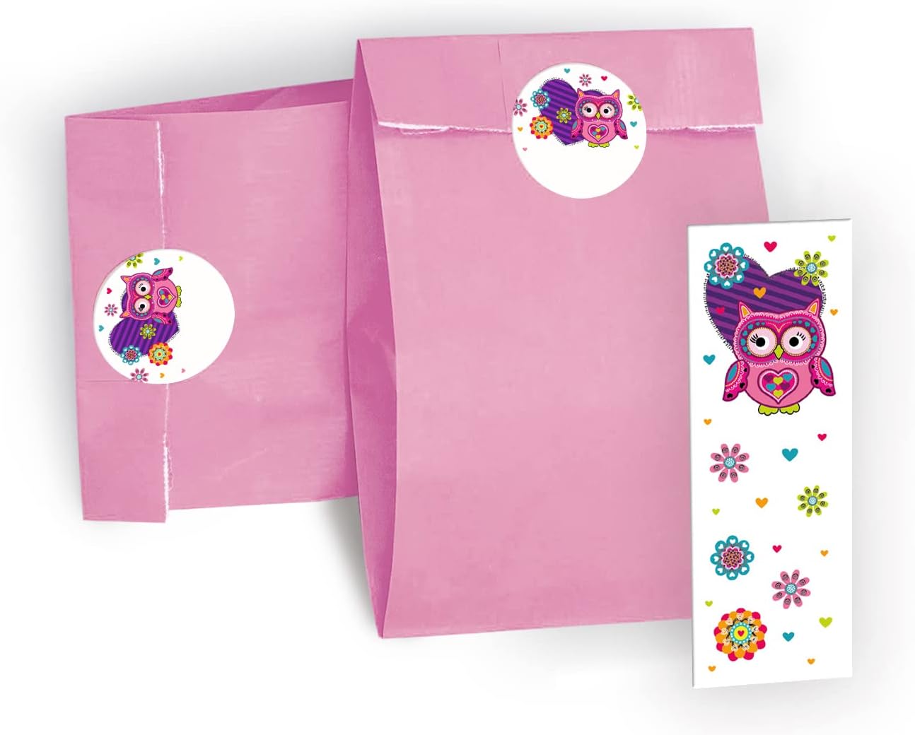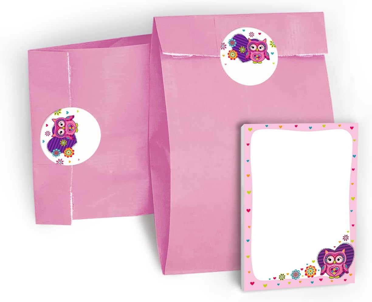 Set di 12 sacchetti / viola, 12 adesivi, 12 mini block notes e 12 segnalibri con il motivo "Gufo". Gli adesivi misurano 4 cm/rotondi e sono pretagliati sul materiale di supporto. Sull'adesivo puoi scrivere il nome dell'ospite o del giocatore o, ad esempio, "Grazie". I sacchettini per feste hanno una dimensione di 12 x 19/21 cm. Il segnalibro ha una dimensione di 5,2 x 14,80 cm. Il segnalibro ha una stampa di immagini da 300 g/m ed è rivestito con vernice UV (lucida) su entrambi i lati. Il blocco note ha una dimensione di 7,4 x 10,5 cm (DIN A7) e contiene 25 fogli. La parte anteriore è stampata, la parte posteriore non è stampata. I blocchi sono rilegati con colla (in alto) e non hanno la copertina. Il set è molto adatto come regalo per compleanni, matrimoni, battesimi o altre celebrazioni dei bambini.