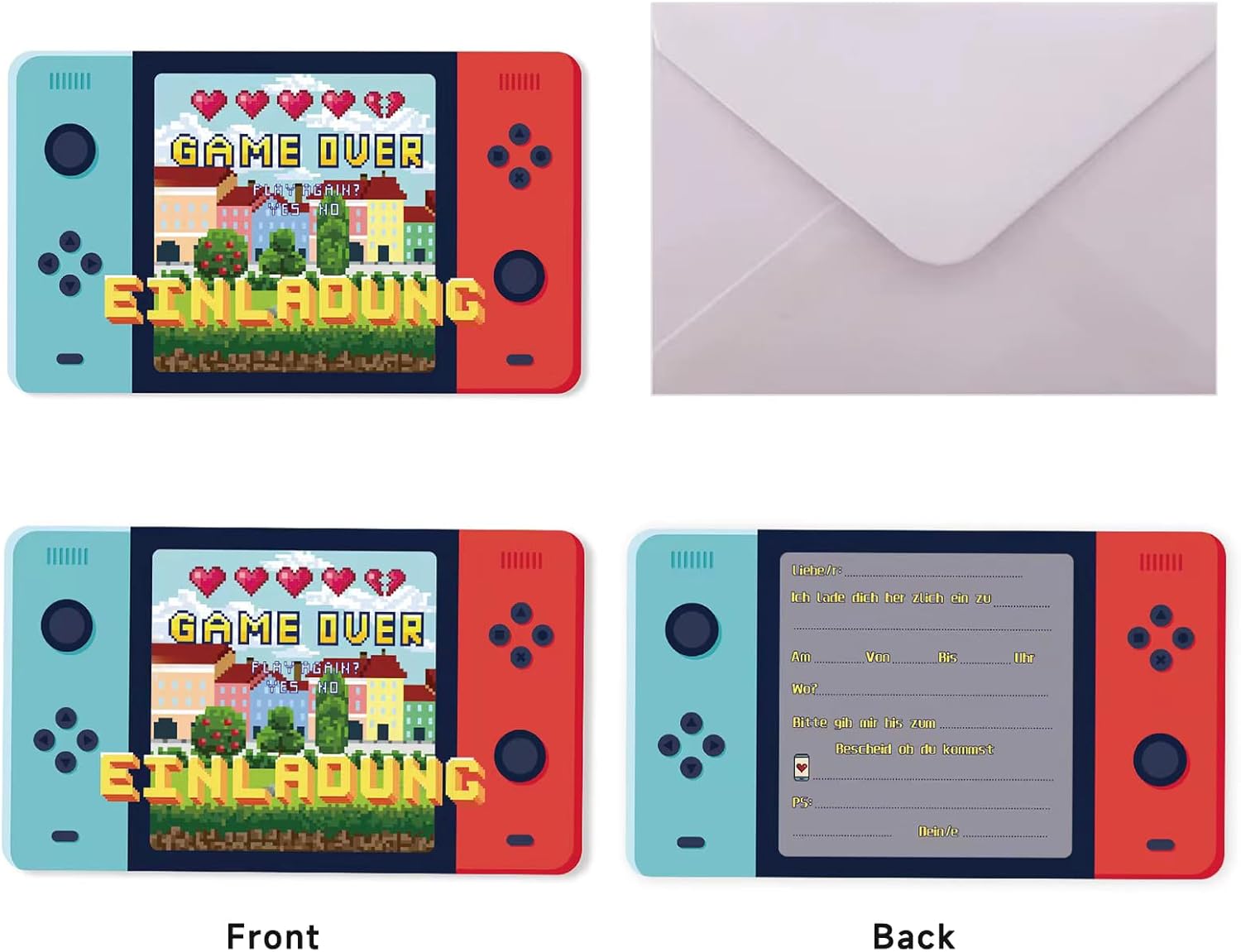 Biglietti d'invito a tema giochi – Inviti divertenti per tutti gli appassionati di giochi interessati ai giochi! Deliziate tutti i vostri ospiti con questi biglietti d'invito speciali! Ora la tua festa può iniziare! 12 biglietti d'invito di compleanno: 8,5 x 14,5 cm, e dotati di 12 buste in cui possono essere inseriti i biglietti. Basta distribuirli come regalini a scuola o in club. Unico: i nostri biglietti di invito per feste di compleanno per bambini per ragazze e ragazzi sono un accessorio per feste per ogni compleanno di bambini, facili da distribuire come regalino ad amici o a scuola Eccellente qualità: invito per il compleanno dei bambini ha carta spessa, stampa di alta qualità, dettagli chiari e colori vivaci, tutti i vostri bambini, amici e adolescenti verranno sicuramente alle vostre feste di compleanno e feste Multiuso: invito compleanno per bambini, adatto per feste di compleanno per bambini, feste in giardino, feste in piscina, feste a tema, feste estive, festa della gioventù, ecc. ACQUISTA CON FIDUCIA: se avete domande, vi preghiamo di inviarci direttamente una e-mail per contattarci per un rimborso completo o una sostituzione.