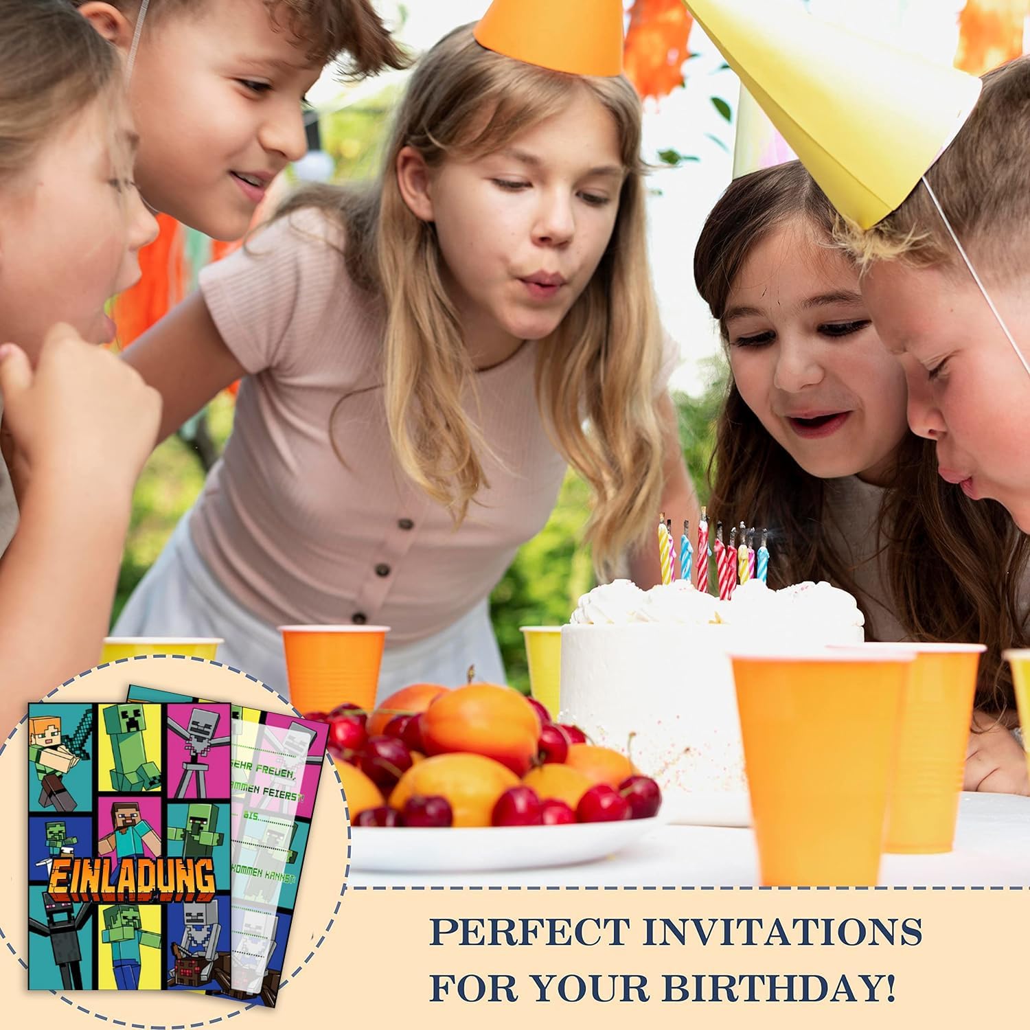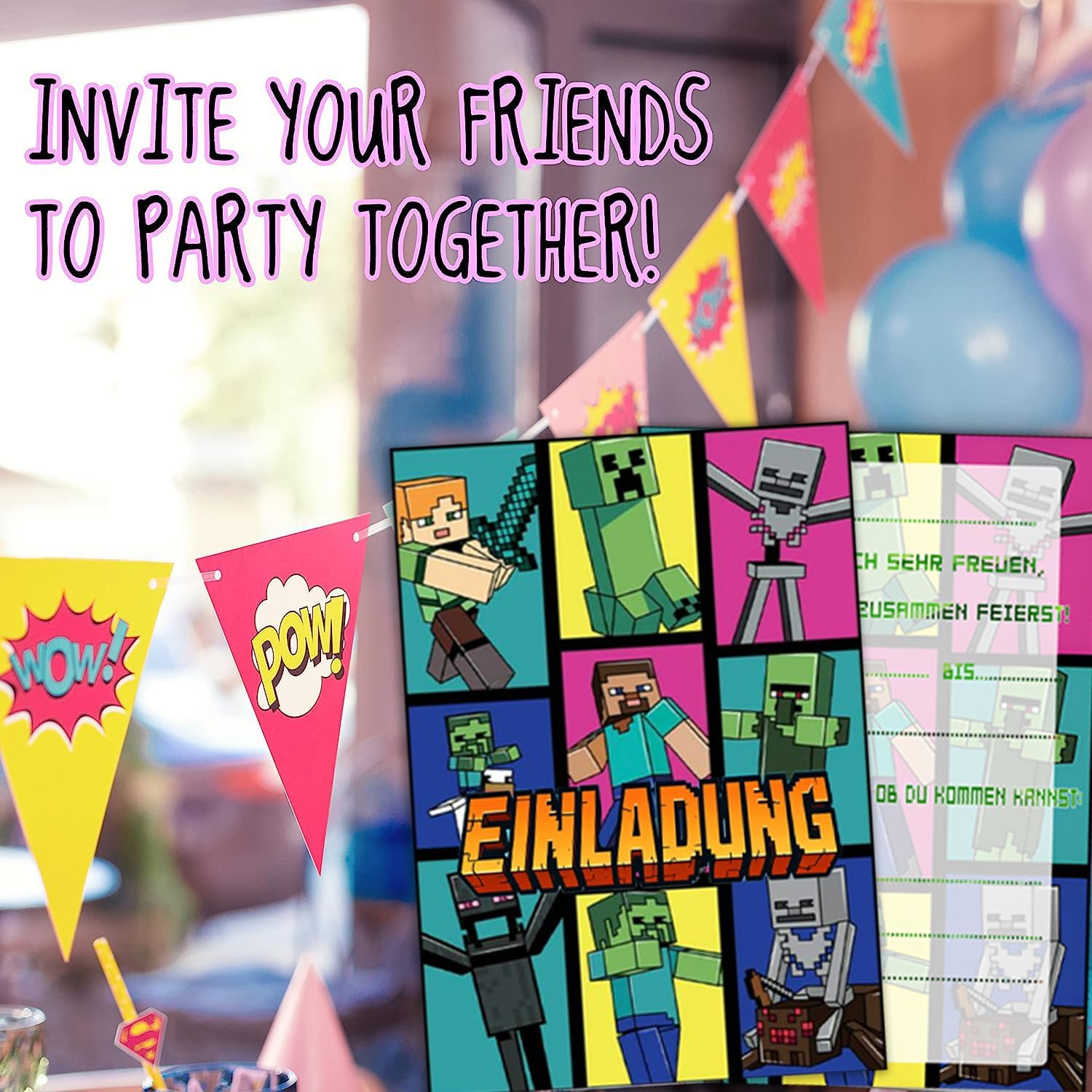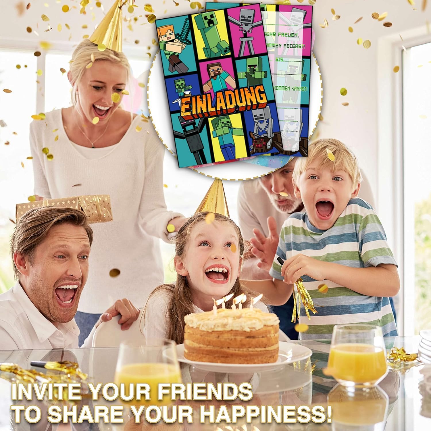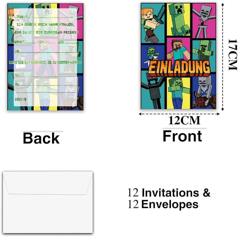 Versatile: che si tratti di una festa di compleanno per bambini, per feste di compleanno per bambini, per feste di compleanno o per videogiochi, le carte da gioco sono l'invito per ragazzi e amici. Il biglietto d'invito perfetto: con i 12 divertenti inviti per feste in stile gioco e formato cartoline, tutti gli ospiti saranno sicuri che tutti i bambini e gli adolescenti arrivino alla festa di compleanno! Vera qualità: i nostri biglietti d'invito sono prodotti in Germania: gli inviti di compleanno in carta riciclabile da 350 g di alta qualità sono rifiniti con speciali processi di stampa. Personalizzabile: le pagine interne dei biglietti offrono spazio sufficiente per messaggi di invito personali e dettagli per la festa. Basta compilare, distribuire e portare gli ospiti nel mondo del gioco. La soddisfazione del cliente è garantita: attribuiamo grande importanza alla soddisfazione dei nostri clienti. Se avete domande o non siete soddisfatti del vostro acquisto, siamo felici di aiutarvi a trovare una soluzione che vi renderà felici.