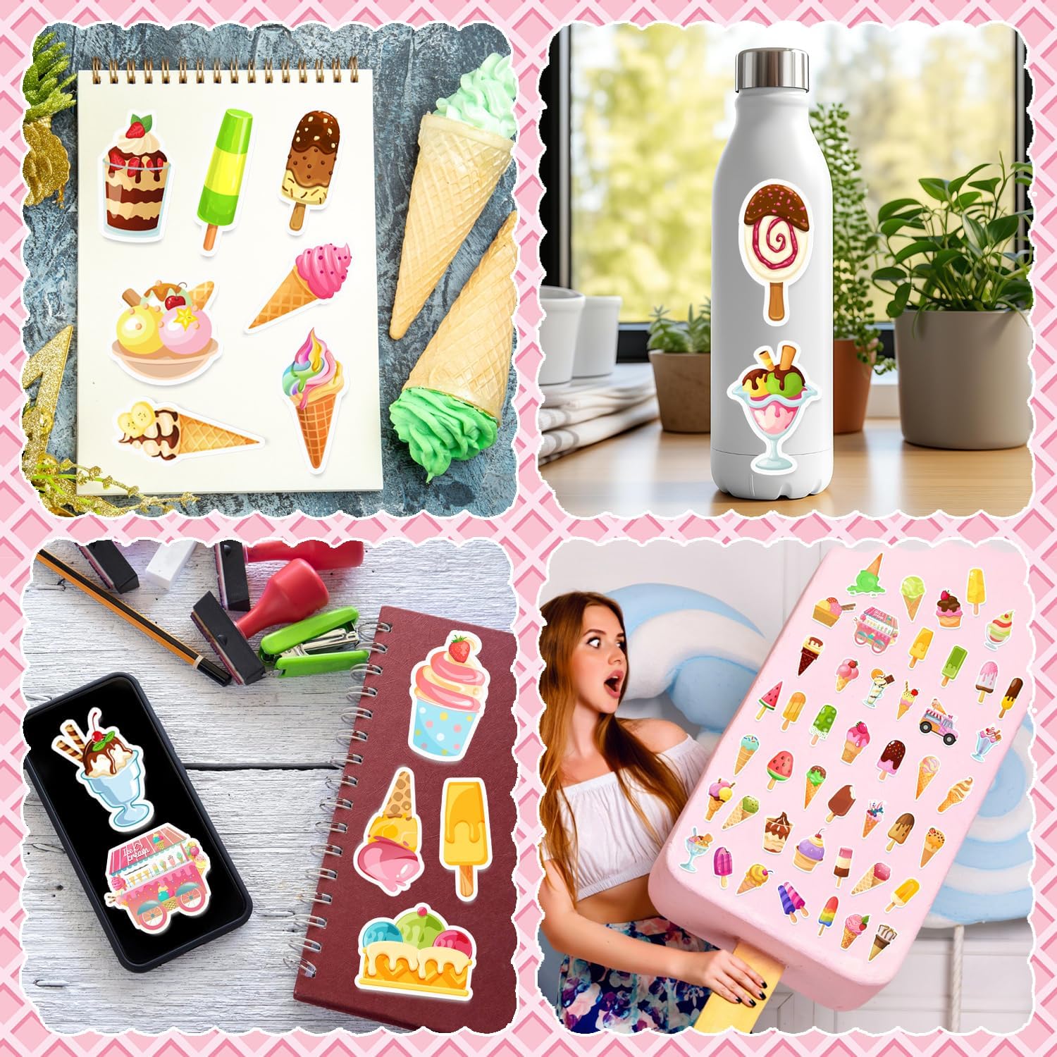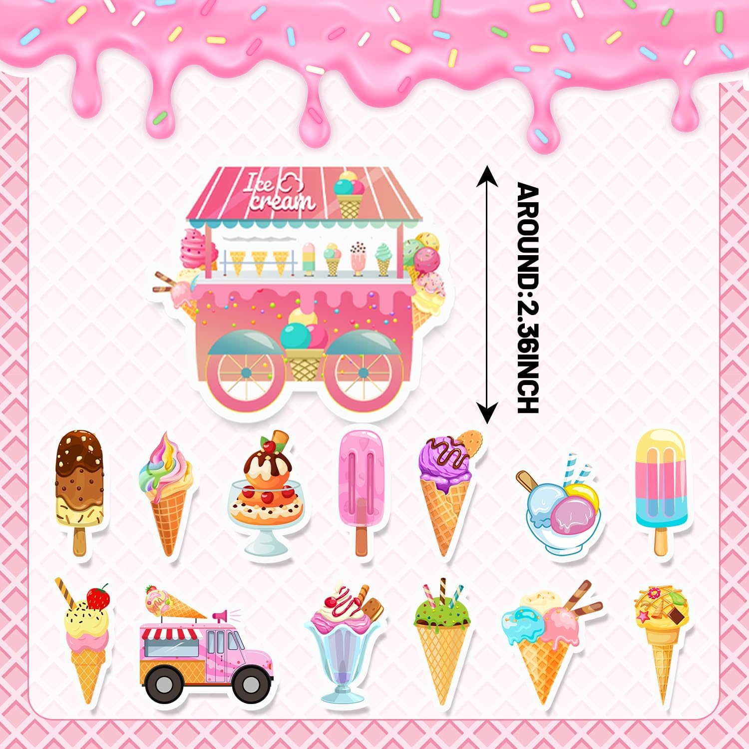 Il pacchetto include: Il nostro pacchetto contiene 120 adesivi per gelato, non ci sono duplicati, quantità e stile sufficienti per soddisfare il tuo utilizzo, i tuoi requisiti e i tuoi requisiti decorativi. Unique personalized pattern, ideal as a gift for children and teenagers 【Perfect DIY Decoration】These ice cream stickers are suitable for dressing up various items, you can stick anywhere you want. Sono anche adesivi impermeabili per gelati per bottiglie d'acqua, custodia del telefono, chitarra, skateboard, valigie.,Design innovativo: gli adesivi sono stampati con gelati di diversi stili, adatti come premi in classe per bambini e premi di giochi. Queste forniture per feste a tema gelato attireranno sicuramente i tuoi bambini o studenti.,Qualità premium: tutti gli adesivi per gelato sono realizzati in materiale vinilico PVC di qualità superiore. È impermeabile e resistente al sole, può garantire la lucentezza e la luminosità del materiale per lungo tempo. Ampia applicazione: questi adesivi per gelato sono ideali per feste con gelato, regali per feste con gelato, decorazioni di compleanno con gelato, riunioni di famiglia, regali per bambini, premi in classe e altro ancora, molto attraenti anche per l'uso quotidiano, simpatici accessori per gli amanti del gelato