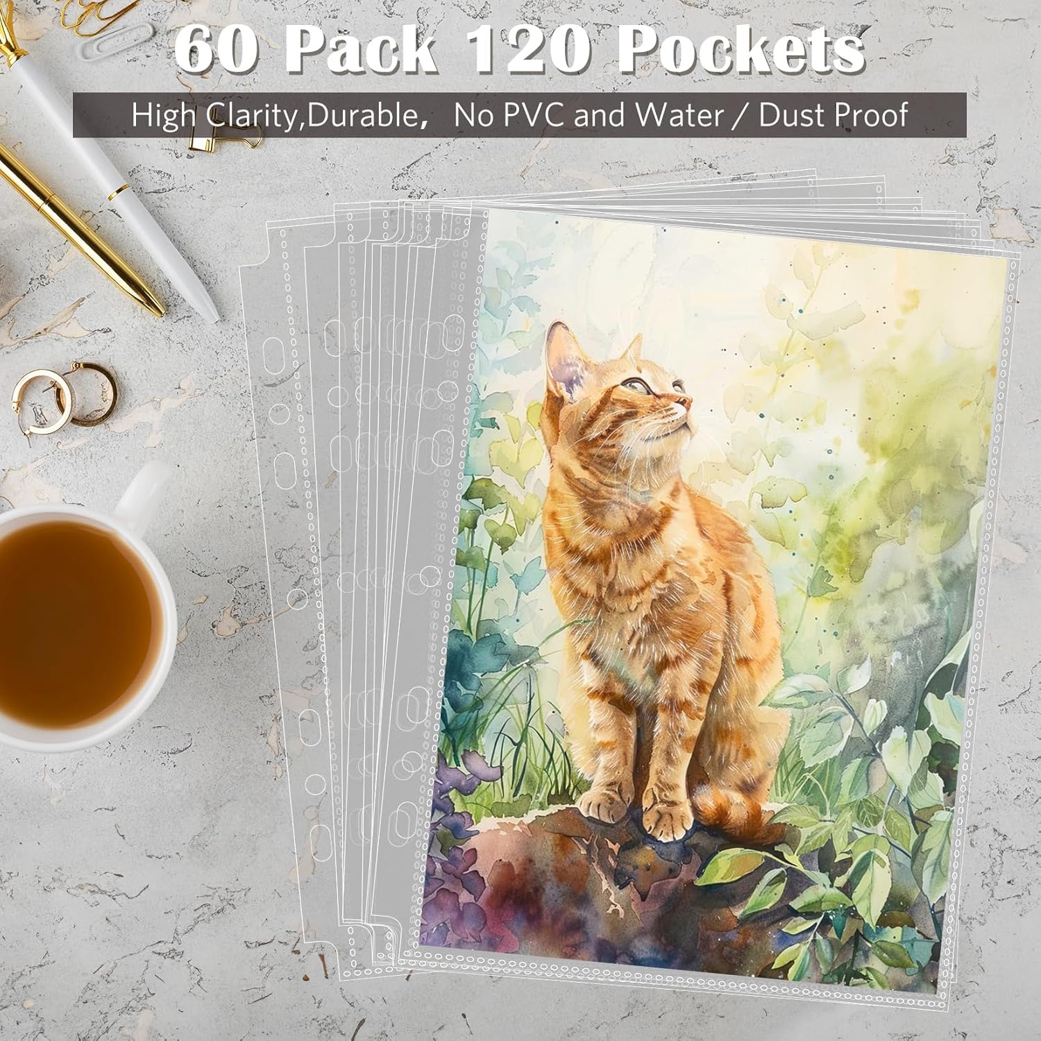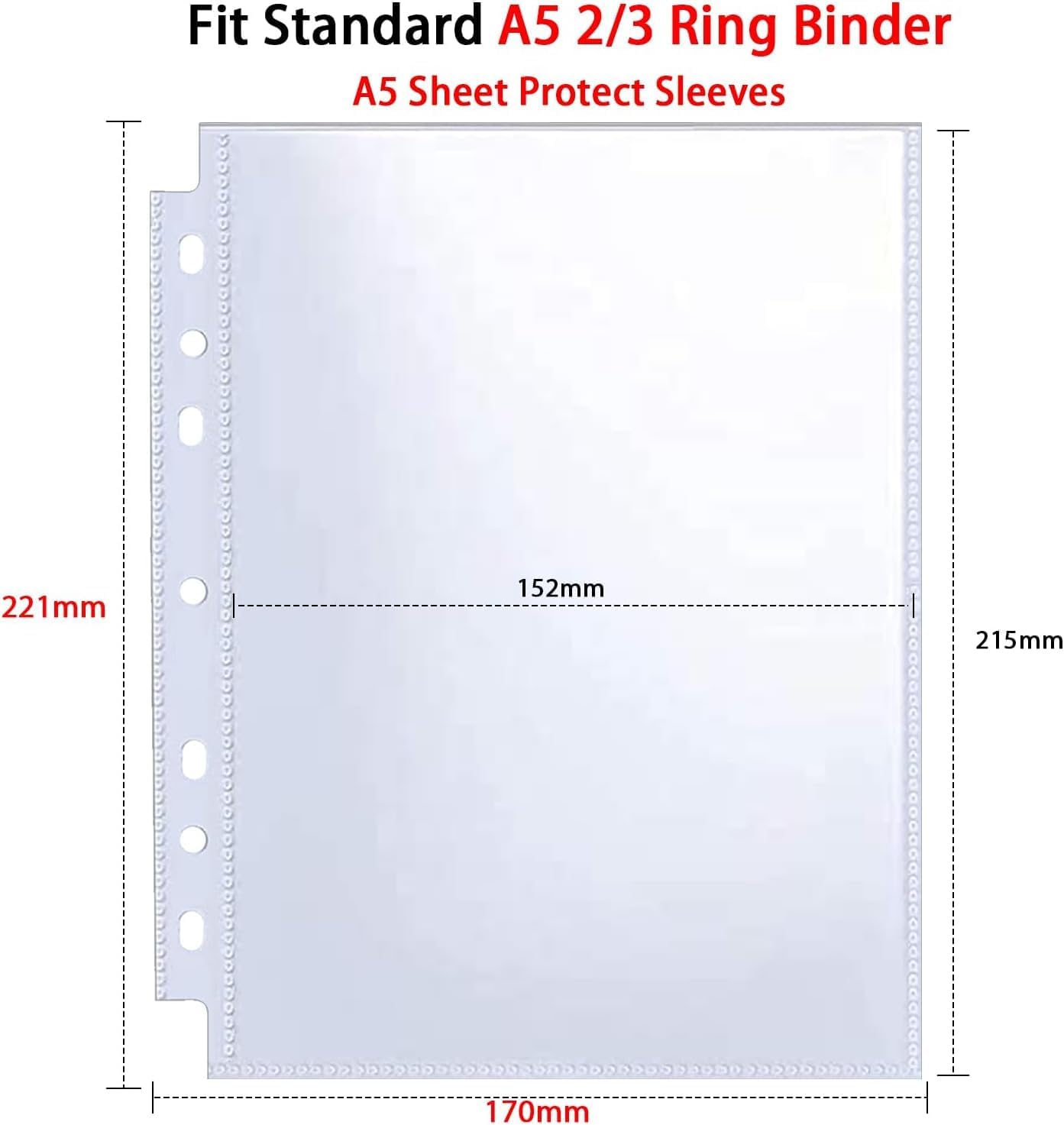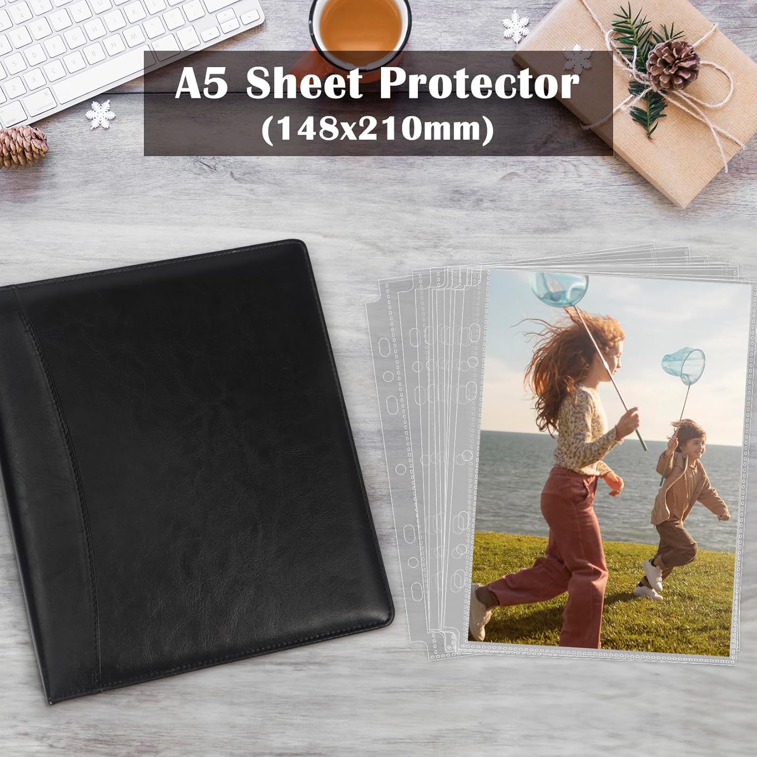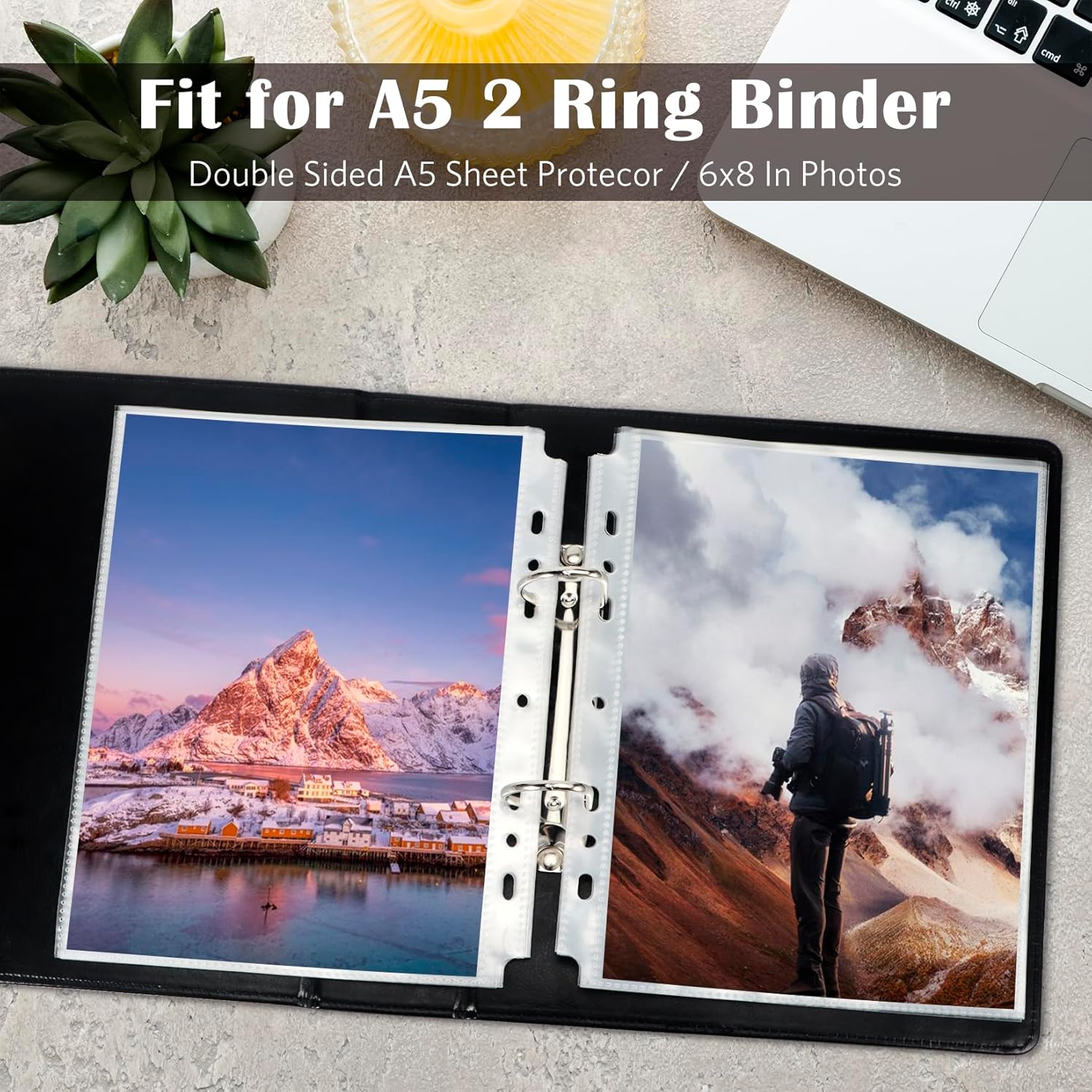 Capacità Doppia e Versatilità: Ogni foglio contiene 2 tasche trasparenti (fronte/retro), ideale per organizzare fino a 120 foto formato A5 (15,2x21,5 cm), cartoline o documenti. Perfetto per album di viaggio, ricordi familiari, collezioni di carte e archivi professionali Compatibilità Universale A5 2/3 Anelli: Progettate per adattarsi a tutti i raccoglitori a 2/3 anelli (formato A5 standard). Dimensioni del foglio: 170x221 mm con fori precisi per fissaggio sicuro. La tasca interna misura 15,2x21,5 cm, garantendo una perfetta aderenza senza spigoli sporgenti Protezione Professionale a Lungo Termine: Realizzato in materiale PVC-free e senza acidi, con saldatura ultrasonica per tenuta ermetica. Protegge da raggi UV (anti-ingiallimento), umidità, polvere e impronte digitali, garantendo conservazione ottimale per decenni Trasparenza Cristallina e Inserimento Rapido: Superficie ultrachiara per una visione nitida delle foto. Design "top loading": inserisci oggetti dall'alto senza rimuovere i fogli, perfetto per aggiornamenti frequenti Custodia 100% Stagna e Sicura: Bordo completamente sigillato per protezione totale contro liquidi e sporco. Ideale per ambienti umidi (cucina, laboratori) e per foto su carta sottile o lucida. La scelta perfetta per collezionisti esigenti
