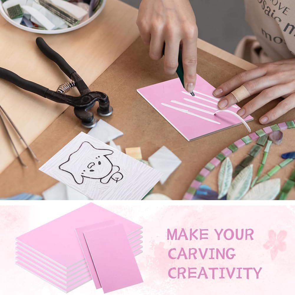 Scopri il divertimento 'incisione con i nostri blocchi Per incisione facili da usare; la loro flessibile e robusta rende l'incisione un gioco da ragazzi e riduce la possibilità di errori; questi blocchi possono adattarsi alla tua immaginazione I nostri blocchi Per incisione stampati una dimensione di circa 10,16 x 15,2 cm e la dimensione ideale offre molto spazio Per dettagli complessi; che tu voglia realizzare stampe, progettare timbri o esercitarti nell'incisione, la dimensione giusta! Questo set contiene 12 blocchi Per incisione in PVC rosa, che tu un artigiano o un artista professionista, blocchi Per incisione sufficienti a soddisfare le tue esigenze di incisione, stampa o timbratura Le nostre piastrelle Per stampaggio in PVC sono realizzate in PVC espanso Per una maggiore durata, garantendo che le tue incisioni e stampe mantengano i loro dettagli intricati, paragonabili al legno e più facili da incidere Questi blocchi di costruzione utilizzati Per l'intaglio forniscono Per realizzare timbri, disegni da stampa, schizzi, scrapbooking, biglietti, ecc.; questi blocchi di costruzione possibilità illimitate, il che li rende un complemento ideale Per molti lavori artigianali