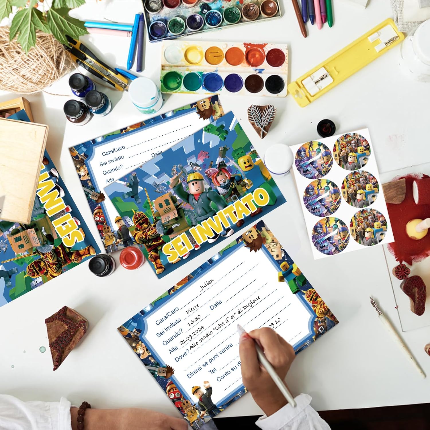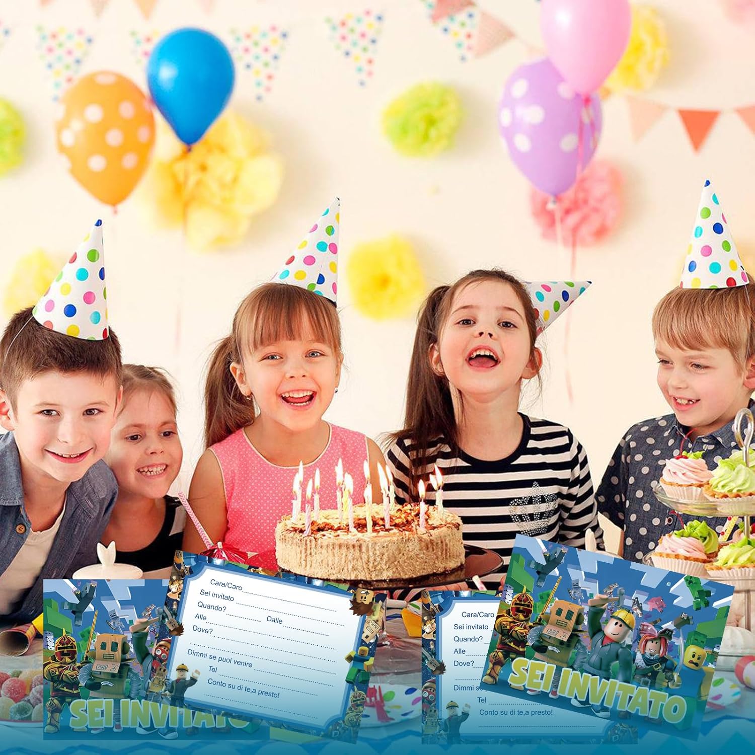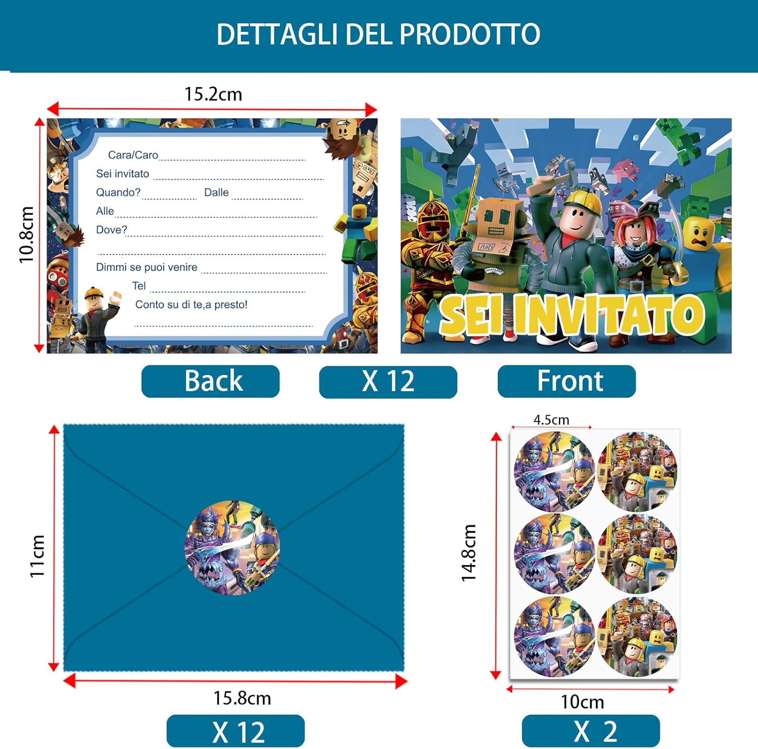 【Set di Biglietti d'Invito per Feste】12 biglietti d'invito, 12 buste e 12 adesivi. Dimensione dei biglietti d'invito per bambini: ca. 15,2 x 10,7 cm, è perfetto come biglietto d'invito per feste per colleghi e amici.(Versione Italiano) 【Facile da Riempire】l'area della carta vuota può essere rapidamente riempita con un testo di invito di facile comprensione per inviare a parole il tuo umore felice agli amici e persino disegnare alcune cose interessanti sulla busta. 【Materiale di Alta Qualità】I biglietti d'invito per le feste di compleanno dei bambini sono realizzati con carta di alta qualità. La carta è dura con disegni colorati su entrambi i lati, non si stropiccia facilmente, stampata in modo chiaro e squisitamente bella. 【Design Unico】I biglietti d'invito sono progettati con un classico tema dei cartoni animati con buste in colori comuni, regalandoci una celebrazione visiva. 【Ampiamente Usato】Che si tratti di una festa di compleanno per bambini, una festa in giardino, una festa in piscina, una festa a tema o una festa per bambini, possiamo utilizzare i nostri biglietti d'invito per inviare inviti alla festa agli amici.