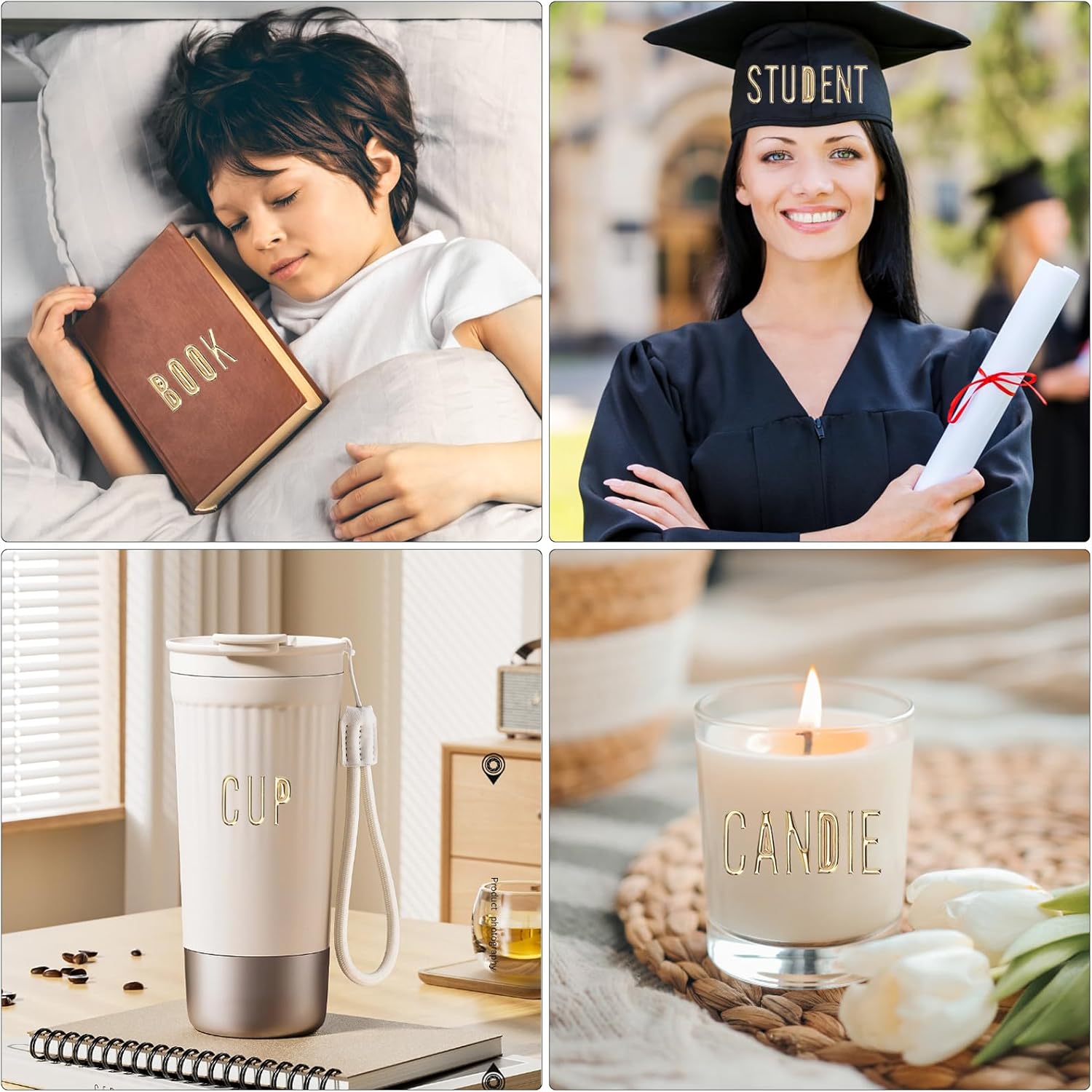 Contenuto della confezione: riceverai un totale di 13 fogli di adesivi di alta qualità, inclusi 3 adesivi scintillanti con lettere e numeri in 3D (18 x 10 cm ciascuno) e 10 fogli di adesivi con simpatici cartoni animati di animali (15 x 5 cm ciascuno). La perfetta combinazione di design scintillante e motivi giocosi offre un'ampia gamma di possibilità per progetti creativi. Ideale per idee artigianali, regali personali o per abbellire oggetti di uso quotidiano.,Materiale e dimensioni: gli adesivi con lettere scintillanti sono realizzati in robusto materiale PVC con goffratura 3D e aspetto metallo dorato, impermeabili e durevoli. Gli adesivi dei cartoni animati sono realizzati in vinile di alta qualità. Entrambe le varianti aderiscono saldamente a superfici lisce come vetro, plastica o metallo. Le lettere adesive dorate sono inoltre resistenti al calore fino a 50°C, ideali per decorazioni di candele (lettere in cera per candele dorate). Particolarmente pratici, entrambi i tipi di adesivi possono essere rimossi senza lasciare residui. Perfetto per adesivi per bambini che cercano sia adesivi glitterati per il fai da te che motivi divertenti per i quaderni scolastici. Premere delicatamente per evitare bolle d'aria. Le lettere adesive dorate aderiscono immediatamente e possono essere corrette se necessario. I bordi lisci prevengono il distacco prematuro. Anche le mani inesperte possono ottenere risultati precisi su adesivi per biciclette, agende o confezioni regalo. 【Usi versatili】 Che si tratti di adesivi con lettere per decorazioni personalizzate di candele, adesivi con meme per laptop o adesivi divertenti con glitter per gioielli in resina fai-da-te, i motivi arricchiscono telai di biciclette, mobili per bambini, utensili scolastici e decorazioni per la casa. Gli adesivi resistenti alle intemperie durano anche all'aperto. Un must per gli appassionati dell'estetica degli adesivi e dei progetti artigianali individuali