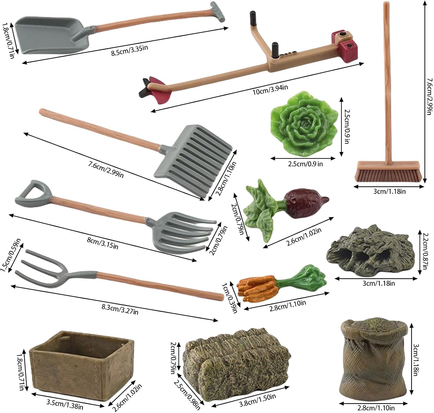 Questo modelli agricoli include figurine verdure dettagliate e strumenti tosaerba a pala/rastrelli/prati funzionali, artigianato con precisioni per decori esterni realistici e avventura gioco qualità qualità Cattura fascino della Rurals con questo set plastica dipinto a mano, offrendo autentici realismi texturing e miniatura per narrazione a tema agricola immersiva e le disposizioni decorative Migliora progetti paesaggistici, fondali fotografici o display desktop con queste verdure e strumenti in miniatura, design per giardino delle bambole, decori case coloniche o scenario gioco creativo Set attrezzi agricoli in miniatura da 13 presentano figurine vegetali realistiche e strumenti agricoli in plastica, perfetti per creazione scena bambole autentiche o display da giardino in miniatura con componenti sicuri e adatti ai bambini Ideale per collezionisti in miniatura, appassionati bambole e genitore cercano giocattoli educativi che rendono gioco ruolo agricoli fantasioso per i bambini età superiore ai 3 anni