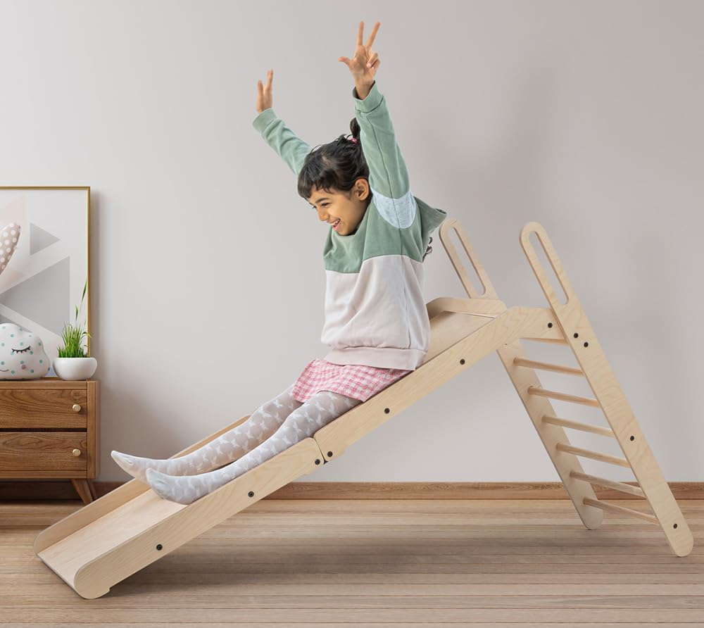 Il bambino si divertirà ad arrampicarsi e scivolare in sicurezza Aiuta a sviluppare le capacità motorie l'equilibrio, l'agilità e la forza Si adatta ad ogni tipo di stanza grazie al suo design alla moda Si ripiega facilmente per essere trasportato con comodità È prodotto in multistrato di betulla naturale e può essere usato sia all'interno che all'esterno
