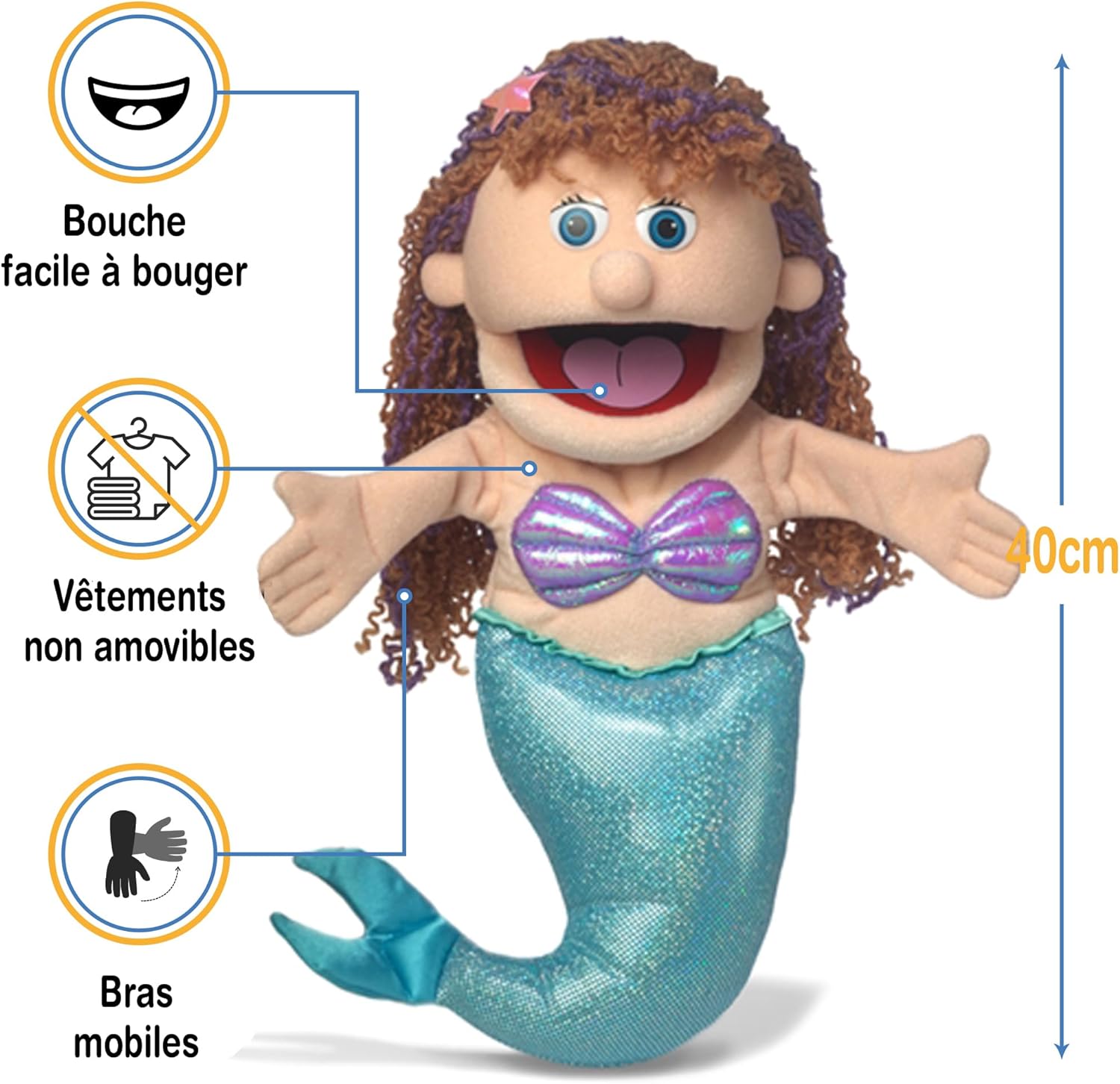 Burattino a mano di alta qualità realizzato da Silly Pups. Progettato per i bambini ma si adatta alla maggior parte delle mani degli adulti. Bocca e braccia facili da spostare. Ingresso manuale dal fondo del burattino. Altezza: circa 40 cm. Peso leggero: ca. 200 g. L'abbigliamento dal design accattivante e dettagliato non è rimovibile.