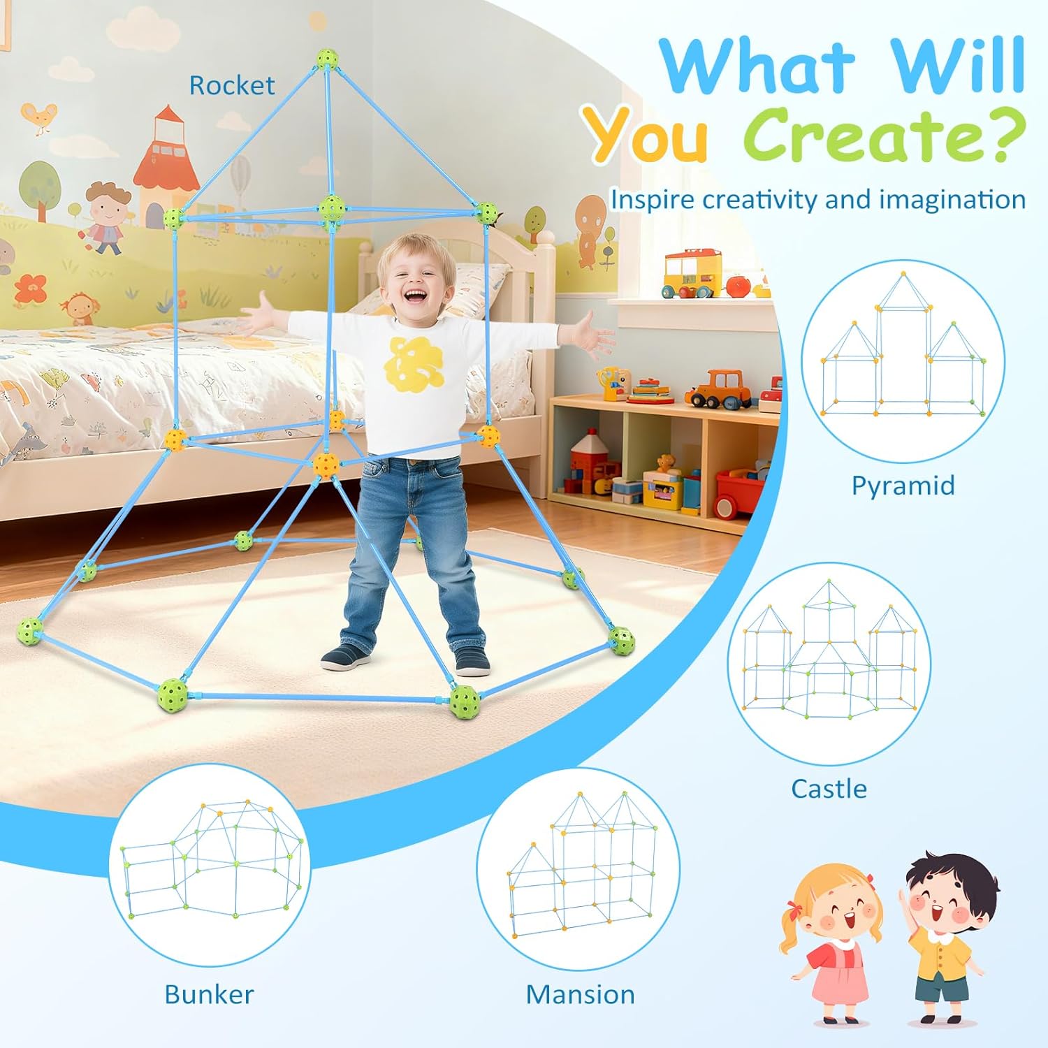 【Set Costruzione Forte 140 Pezzi】 Il Costruzione Giocattolo Bambini Kit contiene 44×palle, 96×aste (38 cm di lunghezza). 140 componenti per Gioco Costruzioni Giocattoli Educativi per ragazzi e ragazze avventurosi - i nostri set castello permettono ai bambini di scoprire la gioia della creazione, stimolando interesse e creatività. 【Giocattolo STEM per Ragazzi & Ragazze】 Il Kit Costruzioni Fortezza Per Bambini è progettato per bambini dai 4 anni in su. Con questo Kids Fort Building Kit si possono costruire Di Forti Tunnel Tenda Da Gioco, razzi, case e altro ancora. Il Creative Forts Giocattolo stimola la realizzazione di qualsiasi costruzione immaginabile con infinite idee costruttive. 【Montaggio Semplice & Durevole】 Il nostro Kids Fort Building Kit è realizzato in plastica di alta qualità. Basta inserire le aste nelle palle - il collegamento si fissa in secondi. Il Kit Costruzione Giocattoli è adatto per attività indoor e outdoor, giocattolo creativo ideale per 2-4+ bambini. 【Giocattolo Popolare】 Il kit costruzione forte con coperta può essere usato dentro e fuori casa. Il set creativo per costruire tane indoor è una delle migliori scelte per vacanze, Regalo Di Compleanno e Regalo Natale per Bambini. Perfetto come Educativi Regalo Natale per Bambini per bambini dai 5 anni in su. 【Servizio Clienti Perfetto】 Diamo priorità a sicurezza e qualità nel nostro Gioco Costruzioni Giocattoli Educativi. Se non sei completamente soddisfatto del nostro Costruzione Giocattolo Bambini Kit, non esitare a contattarci. Troveremo una soluzione soddisfacente per te.
