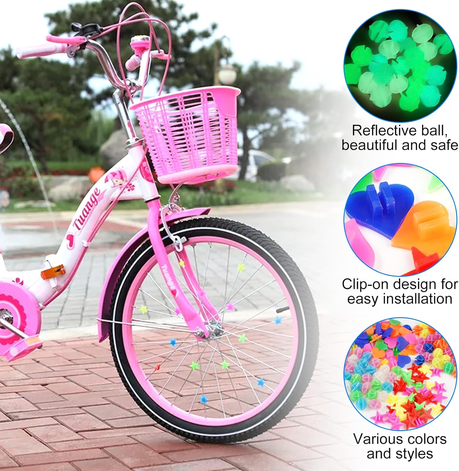 Materiale durevole e di alta qualità: perline per raggi di bicicletta realizzate in plastica altamente elastica e resina, resistente alla pioggia e al sole, non facile da sbiadire o deformare, adatto a bambini e adulti che usano le biciclette Design riflettente luminoso: le perline per raggi di bicicletta possono rimanere accese per 6-8 ore di notte, migliorando la sicurezza dei ciclisti e creando allo stesso tempo un fantastico effetto visivo Installazione semplice: design a clip con perline per raggi, senza attrezzi, facile da agganciare ai raggi, compatibile con bici da strada, mountain bike e bici per bambini Esperienza di guida divertente: bicicletta colorata le decorazioni dei raggi producono un suono chiaro quando ruotano, i colori aggiungono divertimento, ideali come regali di compleanno e di festa per bambini Confezione da 144 pezzi: le perline colorate per raggi di bicicletta sono abbondanti, sufficienti per decorare più biciclette, da condividere con la famiglia o gli amici, a un costo inferiore