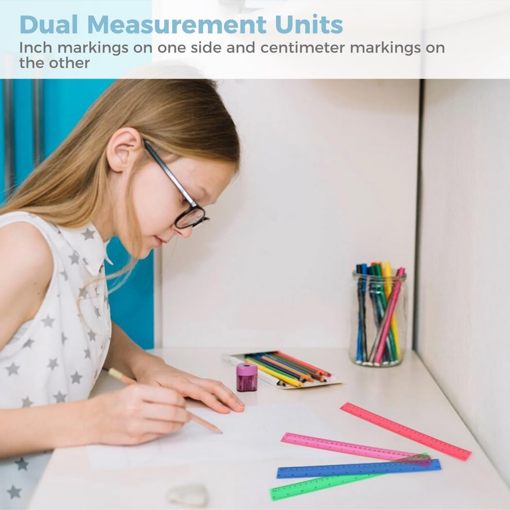 Assortimento colorato: include 9 colori vivaci con 16 righelli per colore per una facile ordinazione e organizzazione; ideale per distinguere gli strumenti Doppia misura: presenta segni in pollici e centimetri, per soddisfare una varietà di esigenze di misurazione per diverse attività Costruito per durare: realizzato in materiale plastico per garantire un uso duraturo; resistente alla piegatura o alla rottura Uso versatile: 144 righelli in totale, per aule, uffici e spazi creativi, fornendo tutti gli strumenti necessari Design resistente: i righelli mantengono la loro forma e precisione, garantendo prestazioni affidabili per misurazioni precise