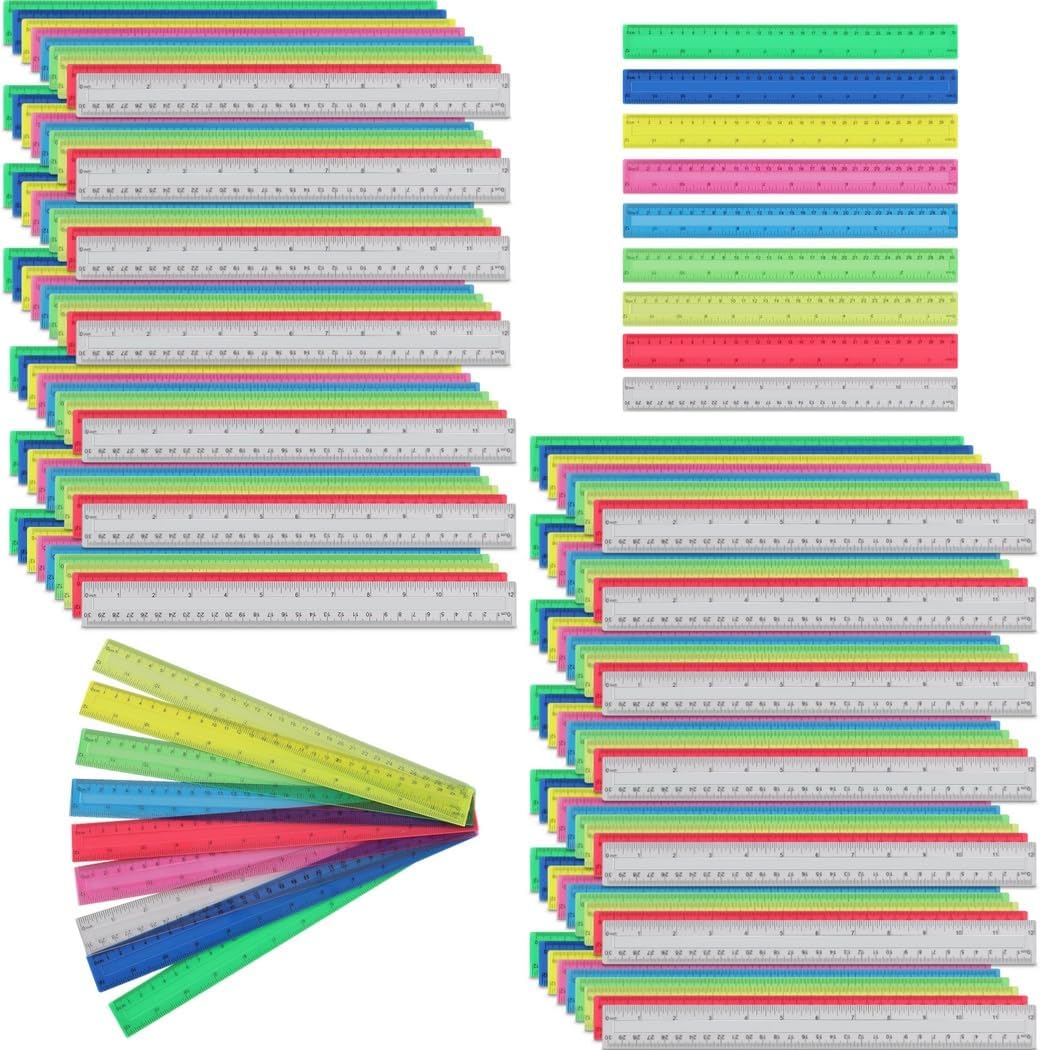 Divertente e colorato: nove colori vivaci rendono questo set di righelli facile da differenziare; 16 righelli per colore per una facile classificazione e utilizzo Doppia misura: un lato mostra pollici, l'altro centimetri; adatto per varie esigenze di misurazione Alta durata: costruito per durare con materiale plastico resistente; i righelli mantengono la forma e resistono alla rottura Per aule: questo set è ideale per scuole, uffici e laboratori creativi; supporta diversi usi Precisione facile da usare: progettato per misurazioni accurate in qualsiasi progetto, sia per lavori artistici, scolastici o attività d'ufficio