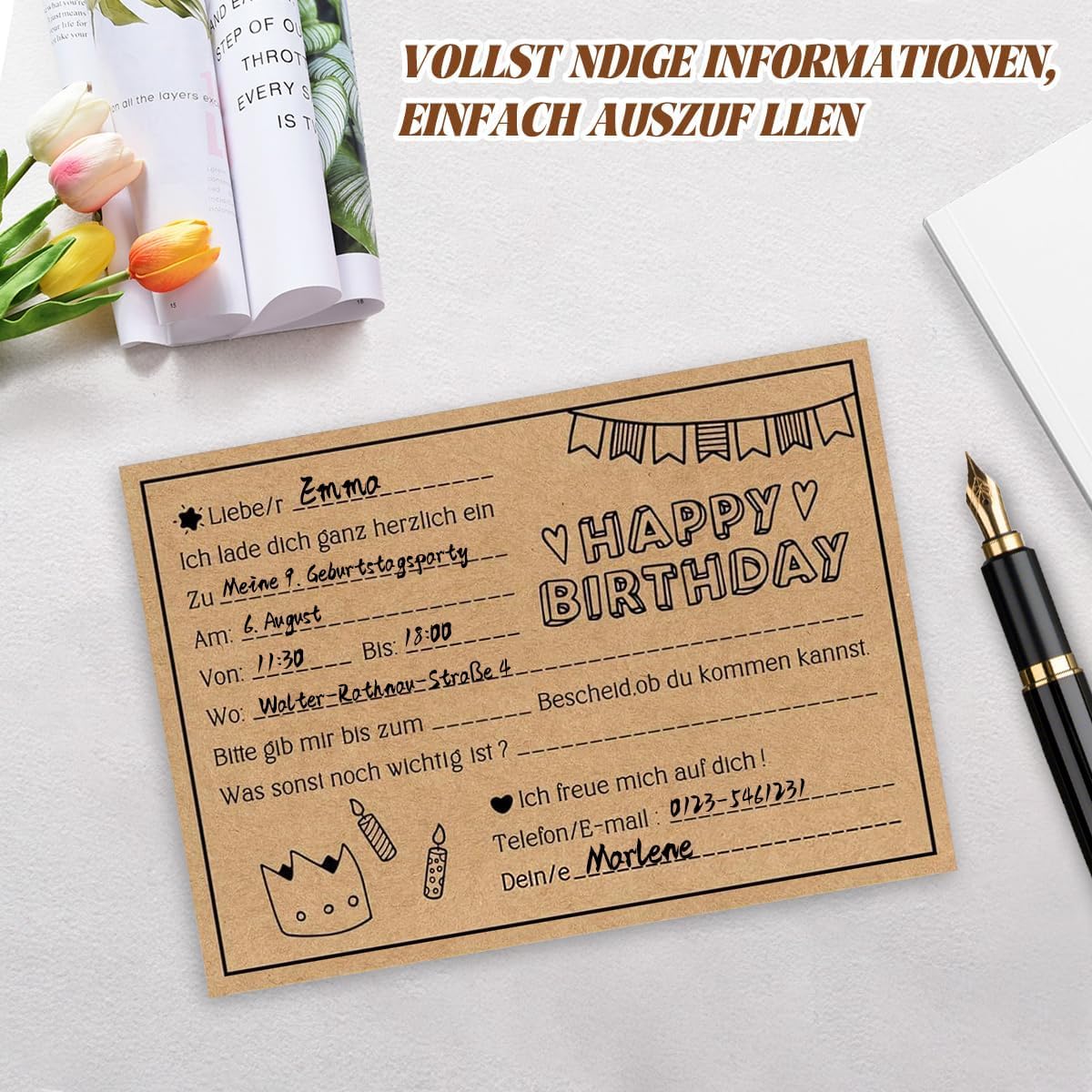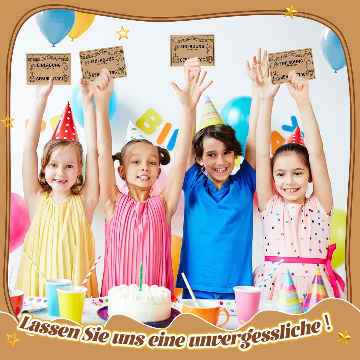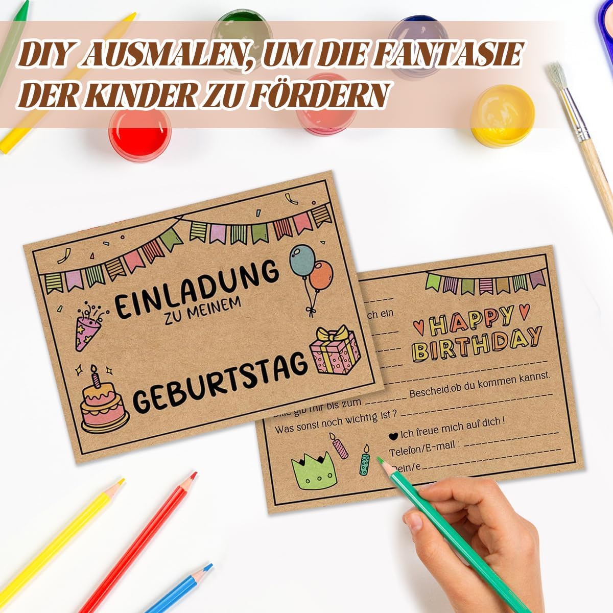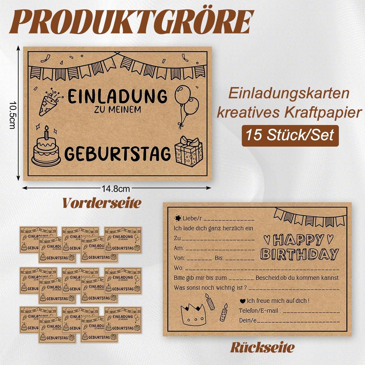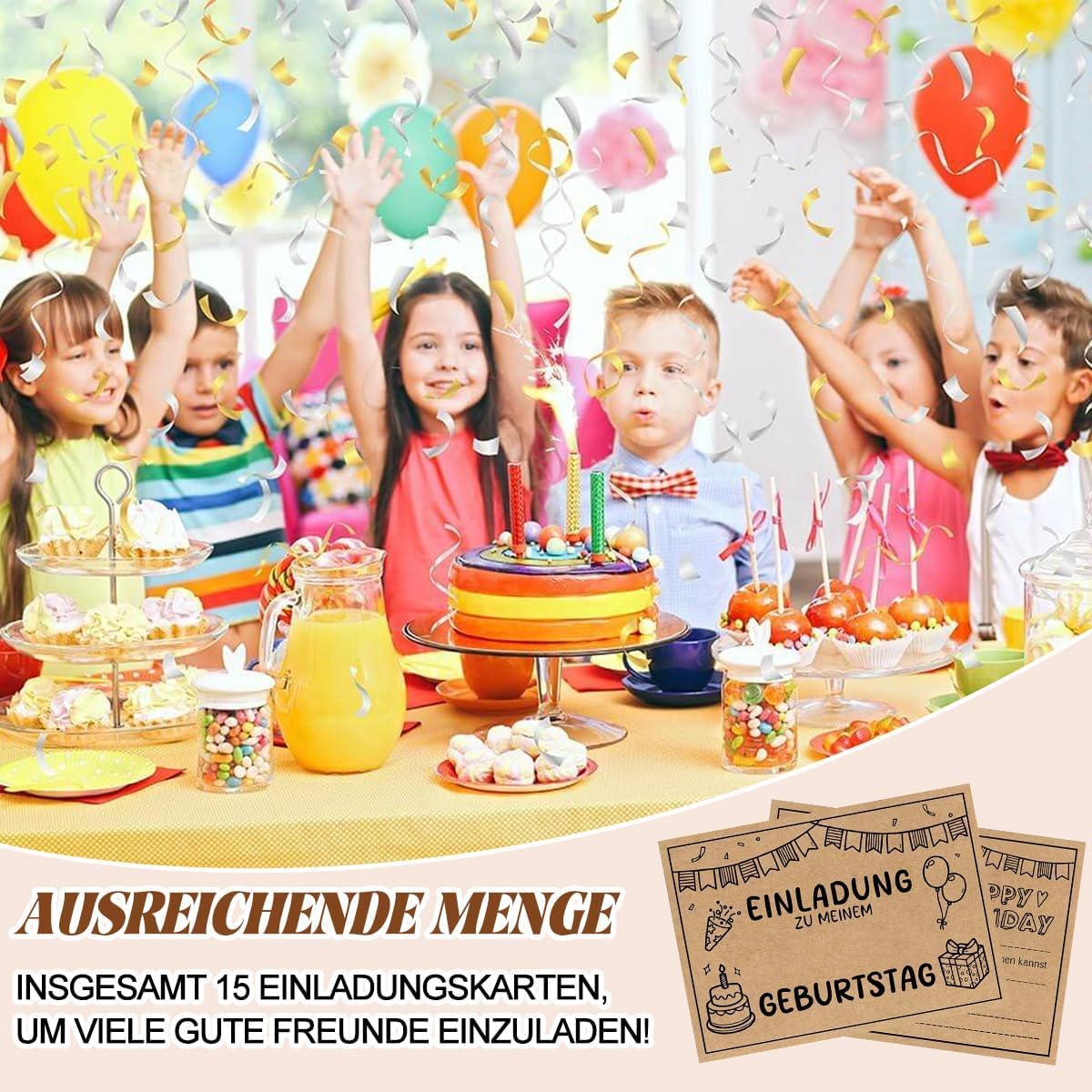 Contenuto della confezione: riceverete 15 divertenti biglietti d'invito per il compleanno dei bambini (senza cioccolato), e la quantità è sufficiente per soddisfare la necessità di inviti per compleanni dei bambini. Scegli questo biglietto e crea insieme al tuo bambino gli inviti perfetti per la prossima festa di compleanno Pratico: la parte anteriore offre spazio per attaccare una barretta per bambini o un altro piccolo highlight per una dolce sorpresa. Il retro è prestampato con pratici campi liberi per il testo dell'invito. In questo modo è possibile inserire rapidamente e facilmente le informazioni più importanti come data, ora e luogo. Un tocco creativo per feste di compleanno per bambini – Liberate la vostra creatività. I motivi prestampati consentono di colorare facilmente con i vostri colori preferiti. Materiali di alta qualità: questo biglietto di invito di compleanno è realizzato in carta kraft di alta qualità, 300 g/m², retro scrivibile e timbrato, dimensioni 10,5 x 14,8 cm, formato A6 Versatile per ragazze e ragazzi: il design neutro e giocoso è adatto per inviti di compleanno per bambini e bambine.