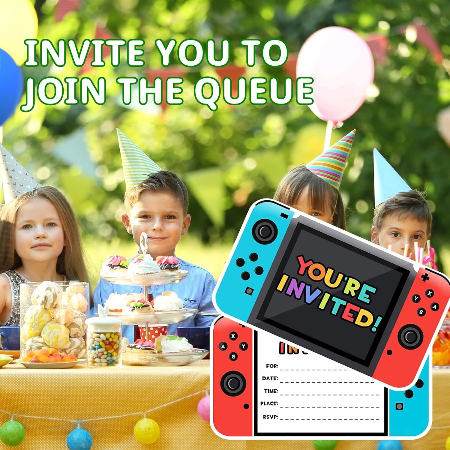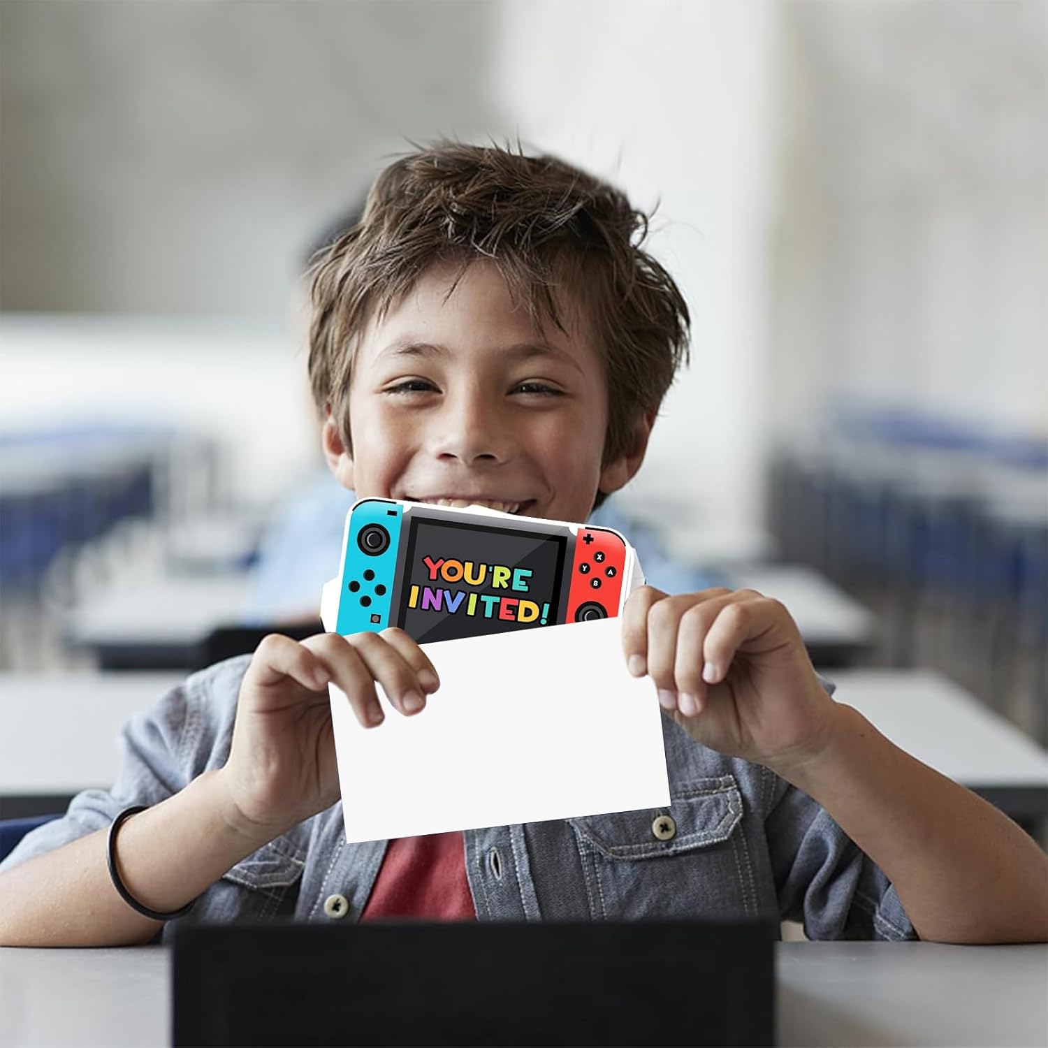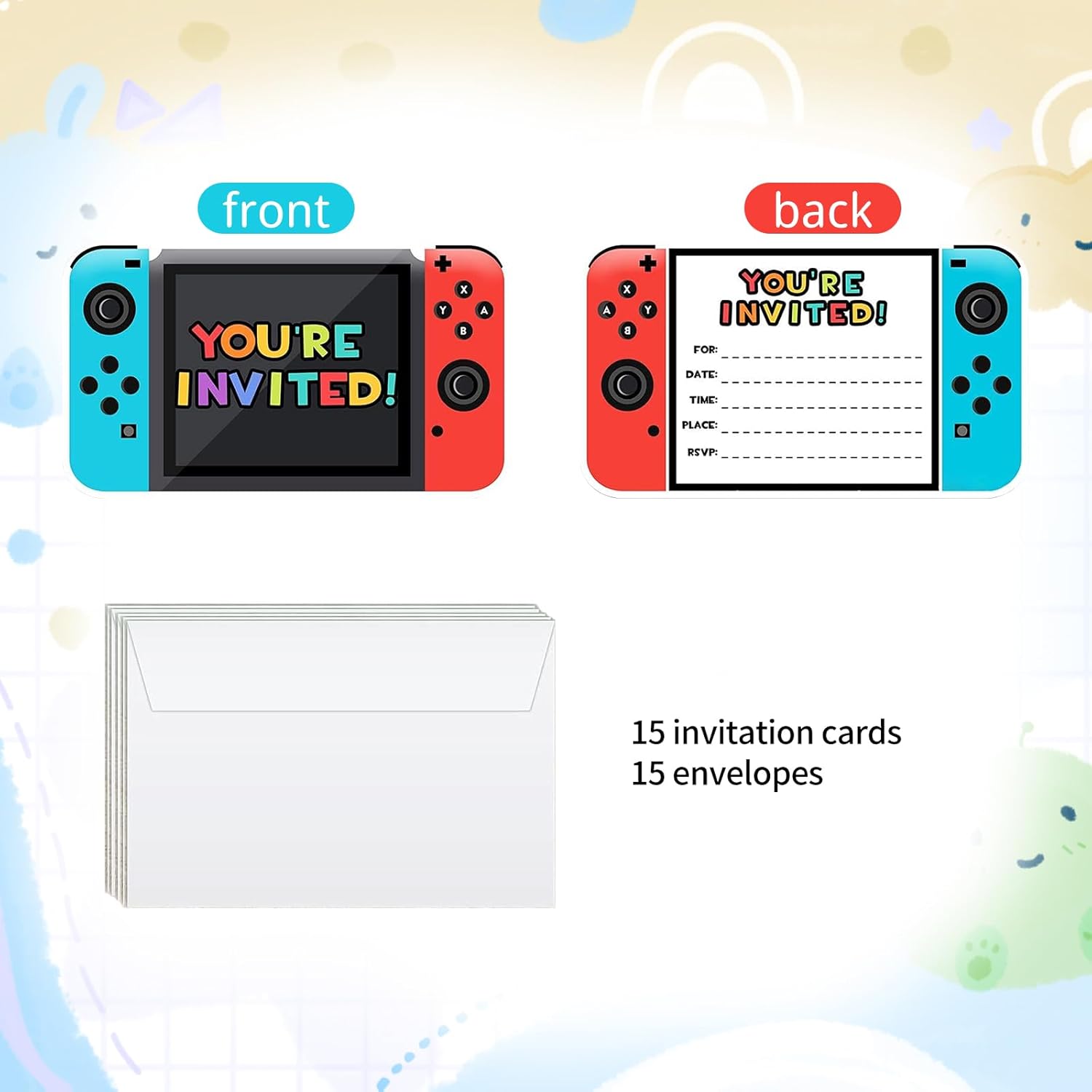 Biglietti d'invito: biglietti d'invito per giochi 8,5*15 cm e hanno una busta corrispondente in cui è possibile inserire la carta. Riceverai quindi 15 buste con 15 biglietti d'invito. Vera qualità: i biglietti d'invito per videogiochi sono realizzati con carta di alta qualità, robusta e durevole, stampa chiara e bell'aspetto, le persone che ricevono il biglietto d'invito saranno molto felicemente sorprese. Design della console di gioco: il design dei nostri biglietti d'invito è ispirato alle console di gioco e delizierà ogni appassionato di giochi. Un ottimo momento clou per la tua festa di gioco! Uso versatile: feste di compleanno, festa dei bambini, feste di videogiochi, per ragazzi o ragazze, bambini e adolescenti, invita la tua famiglia e i tuoi amici alla festa. Servizio clienti: il nostro team di assistenza clienti dedicato è disponibile per assisterti in caso di domande o dubbi. Rendi indimenticabile la tua festa di gioco con i nostri biglietti d'invito!