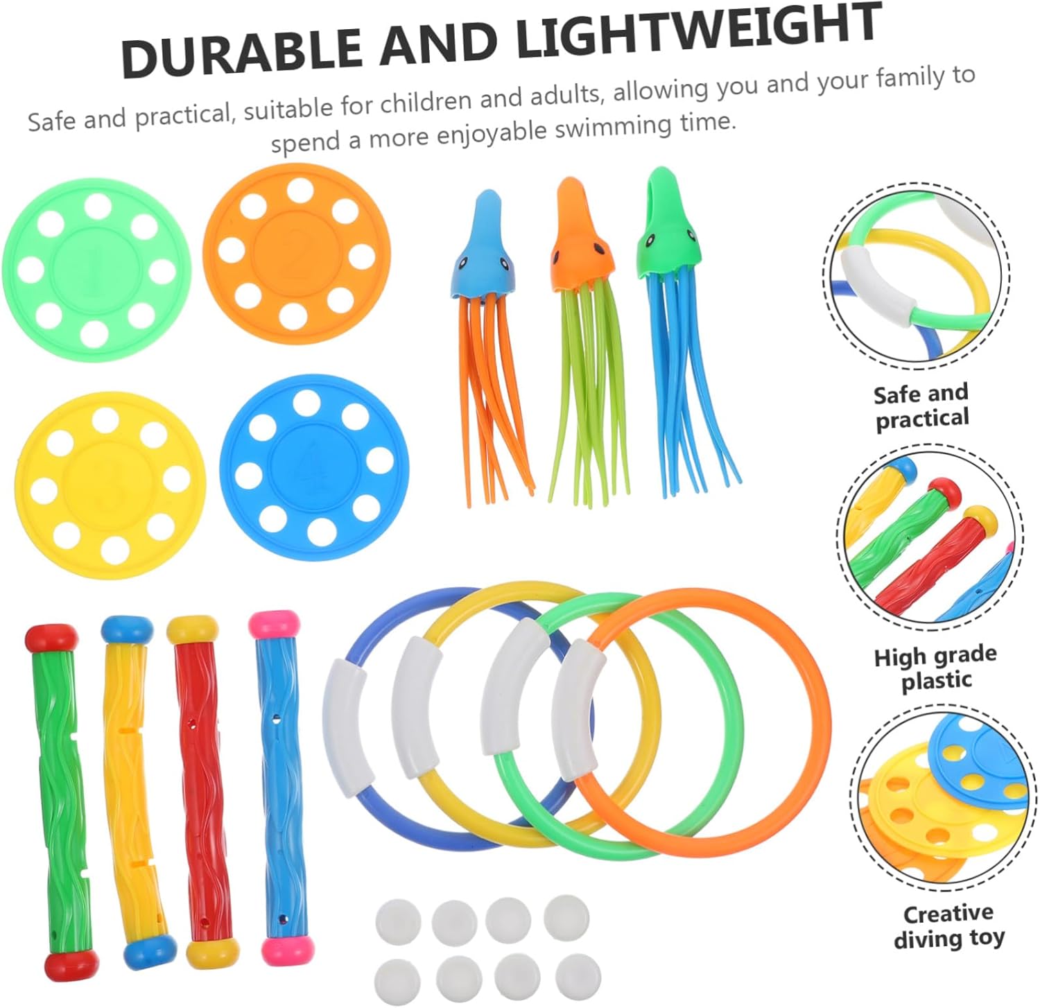 Giocattoli subacquei per : questo set di giocattoli subacquei è facile e comodo da usare e facile da riporre quando non in uso, giocattoli subacquei per Giocattoli per il nuoto: questo divertente giocattolo per le immersioni può rendere il momento del nuoto più divertente e attraente per i più piccoli, giocattoli per il nuoto e le immersioni in piscina Giocattolo per immersioni e nuoto: leggero e portatile, facile da trasportare in spiaggia, in piscina, ecc., giocattoli per immersioni per Giocattoli da sub per in piscina: per adulti e genitori, questo set di giocattoli da sub è perfetto anche per , nipoti, , ragazzi, ragazze e studenti di nuoto, giocattoli da sub per piscina Giocattolo per immersioni: realizzato in materiale resistente, questo giocattolo per immersioni per è adatto all'uso in piscina