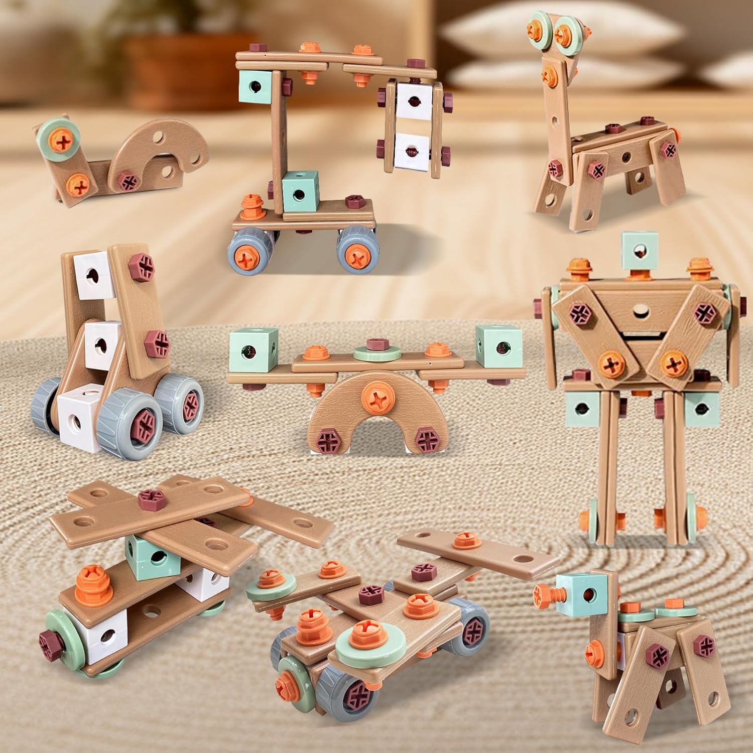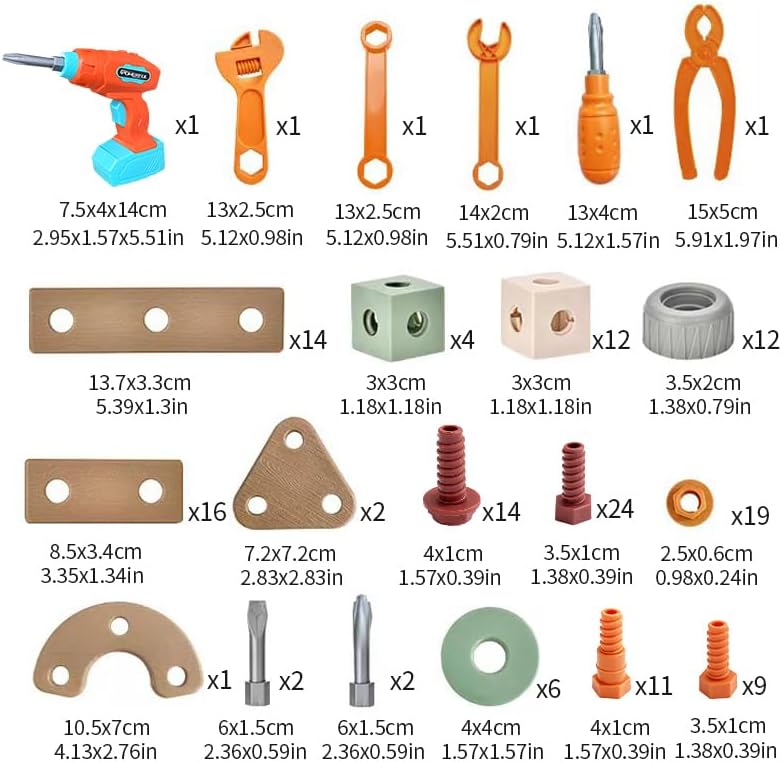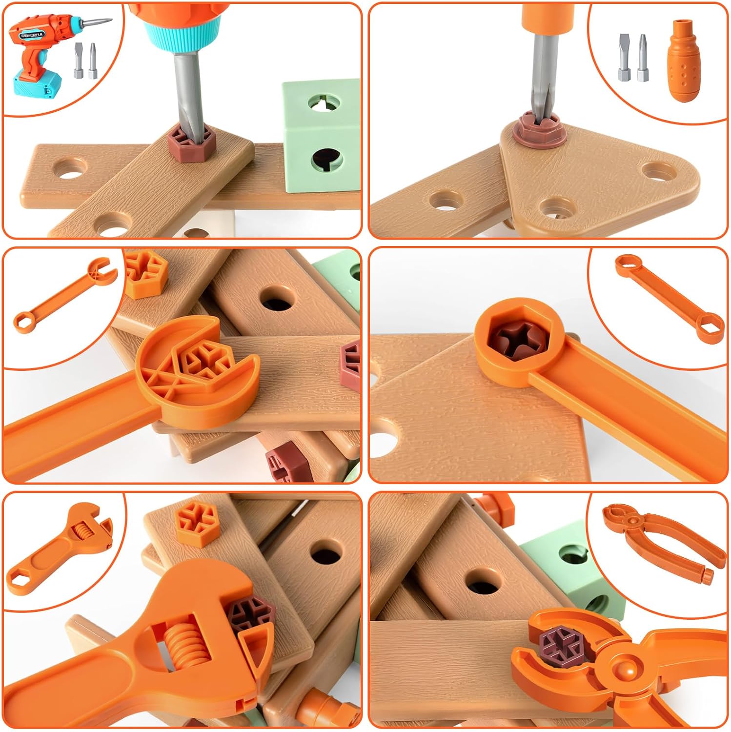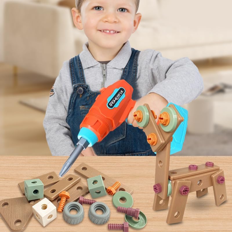 1. Set di attrezzi completo: LEZKIDOL 154 pezzi attrezzi per bambini set , tra cui un trapano a bassa velocità, cacciaviti, dadi, chiavi inglesi, pinze, ruote, bulloni e altri componenti 2. Gioco di costruzione creativo: i bambini possono assemblare oltre 10 modelli diversi, come mulini a vento, giraffe, robot, carri armati e cani, utilizzando questo set di attrezzi educativi. Queste attività di costruzione stimolano il gioco creativo, migliorando al contempo le competenze ingegneristiche pratiche e la capacità di problem solving 3. Soluzione di stoccaggio portatile: inclusa nel set, una robusta cassetta degli attrezzi dal design accurato che incoraggia l'organizzazione grazie alla facilità di pulizia e stoccaggio 4. Standard di sicurezza premium: realizzati in plastica ABS spessa e atossica con bordi arrotondati, tutti i componenti soddisfano rigorose certificazioni di sicurezza. Il materiale di alta qualità garantisce un'eccezionale durata e resistenza all'usura per un uso a lungo termine 5.Giocattolo educativo per lo sviluppo: questo set da gioco incentrato sulle materie STEM promuove scenari di gioco di ruolo per bambini e progetti fai da te che sviluppano le capacità motorie fini e il pensiero creativo. Una scelta eccezionale per l'apprendimento prescolare, è un regalo ideale per compleanni, Natale o come sorpresa per bambini dai 2 anni in su