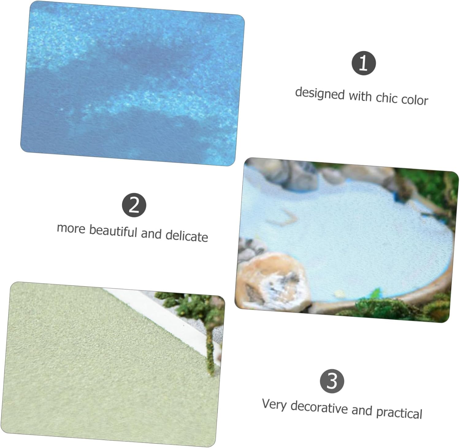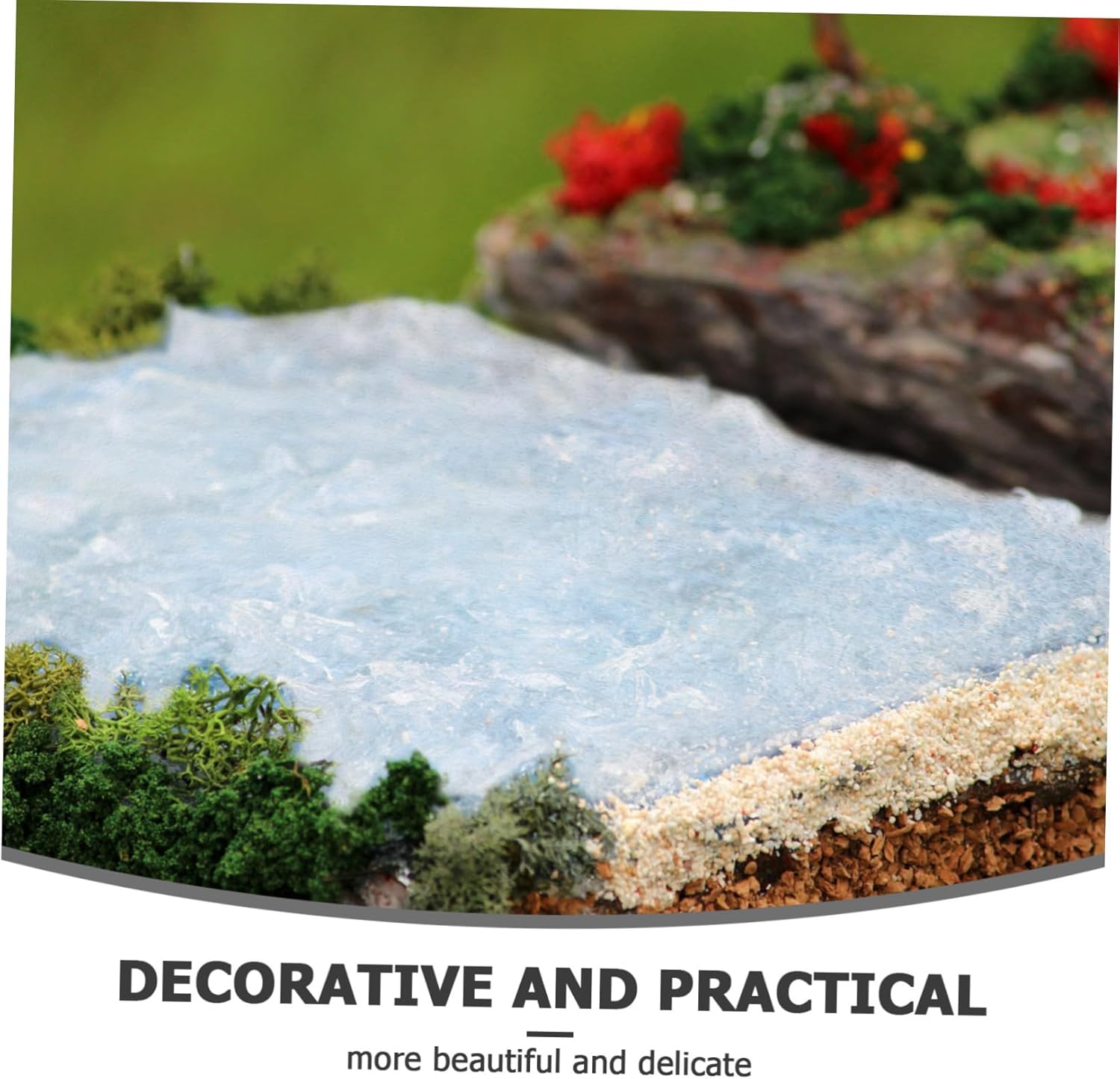 Micro paesaggio prop: mini-paesaggio, esposizione di modelli, decorazioni per la casa ecc. molto decorativo e pratico. Adornano il falso: questa è una decorazione molto adatta per i tuoi amici e familiari, molto chic e decorativa. Decorazione modello tavolo in sabbia: adatta per scenari primaverili, estivi, autunnali e invernali, modello di edificio, casa. di fiume fai da te: basi per finte dell'acqua. può essere ambientato in molte scene, perfetto per l'arredamento fai da te del tavolo di sabbia. Fiume finto: utilizzato per l'organizzazione delle attività del festival e della casa, per pareti o per la decorazione del giardino.