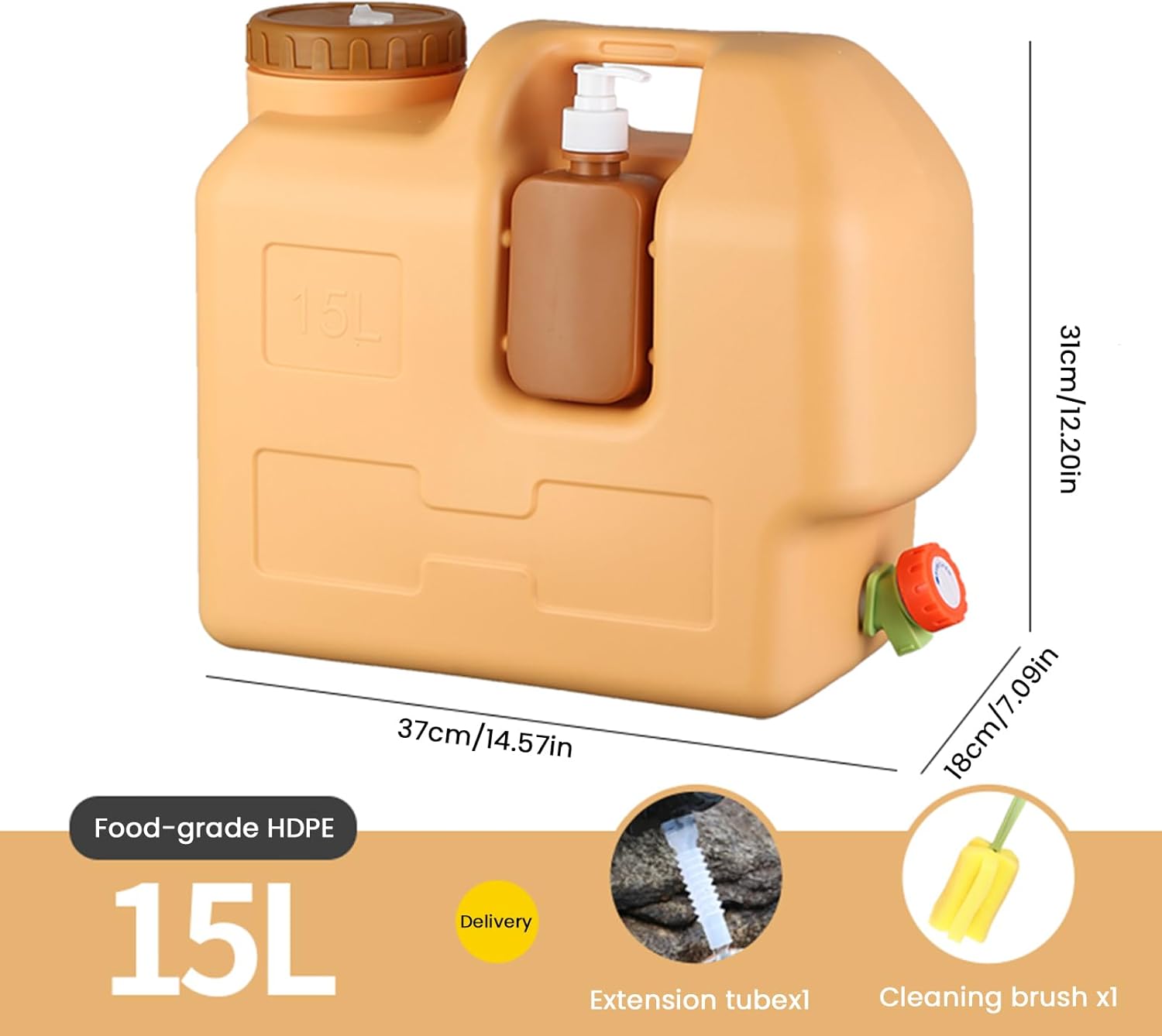 Materiale sicuro e di alta qualità: Realizzato in PE alimentare, privo di BPA, a colore uniforme e senza impurità o odori, garantendo sicurezza e igiene per l'acqua della tua famiglia durante ogni utilizzo. Soluzione per il lavaggio mani removibile: Include un barattolo pieghevole da 500ml che si integra in uno scomparto dedicato sul contenitore, assicurando un accesso organizzato durante le escursioni o emergenze. Design con grande apertura: La bocca di 10cm consente un facile riempimento, pulizia e versamento, riducendo gli sversamenti e facilitando le operazioni di lavaggio. Costruzione resistente e durevole: La borraccia è dotata di pareti rinforzate per una maggiore robustezza, con materiali antiscivolo e resistente ai graffi, garantendo longevità e protezione contro urti e corrosione. Rubinetto regolabile di grande capacità: Il serbatoio portatile include un beccuccio ampio con manopola per un controllo preciso del flusso, offrendo versatilità per ogni esigenza d'acqua, dalla cucina al lavaggio.
