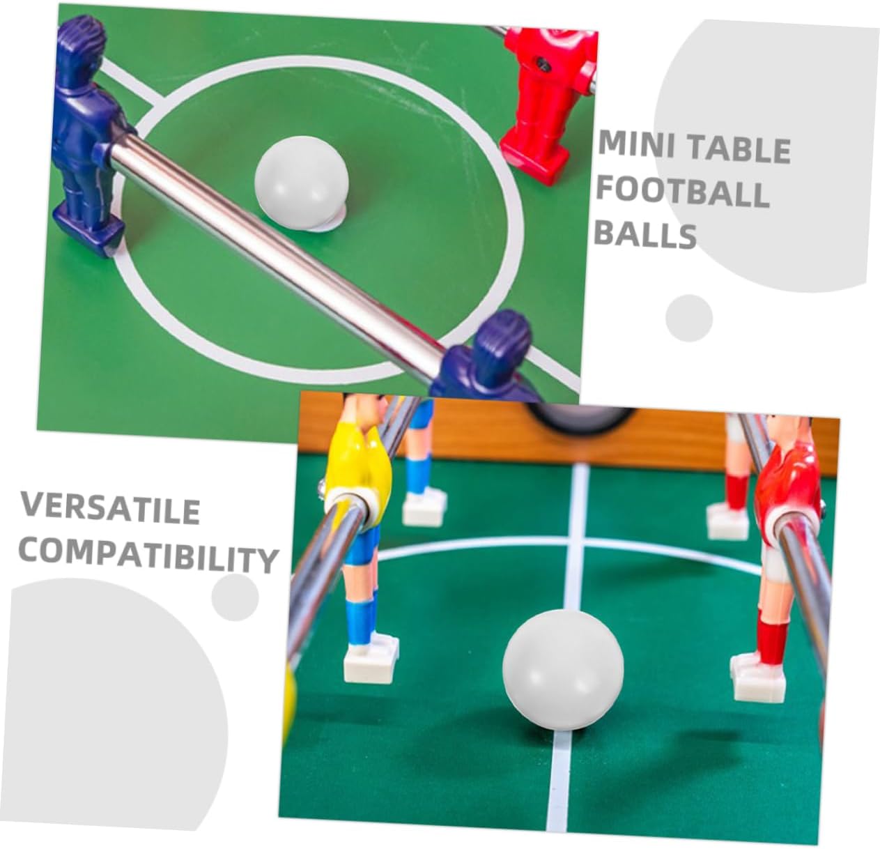 Versatilità d'uso: queste mini palline da calcio balilla sono progettate per essere compatibili con vari marchi di biliardini, garantendo una vestibilità ideale per il tuo gioco Superficie bianca lucida: la finitura liscia e lucida di queste palline da calcio balilla garantisce un controllo e una precisione eccellenti durante il gioco Dimensioni portatili: compatte e leggere, queste mini palline da calcio balilla sono facili da trasportare, il che le rende ideali sia per l'uso in casa che in ufficio Sviluppo delle abilità: l'uso di queste palline da calcio balilla può aiutarti a migliorare le tue abilità calcistiche e la tua velocità di reazione, offrendoti un modo divertente per esercitarti e migliorare Struttura robusta: realizzate con materiali resistenti, queste palline da calcio balilla sono progettate per resistere a un gioco intenso e garantire prestazioni costanti