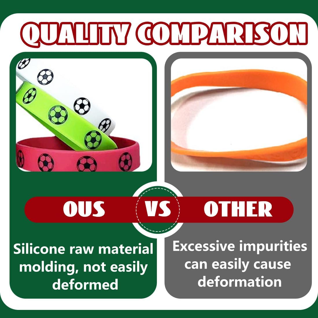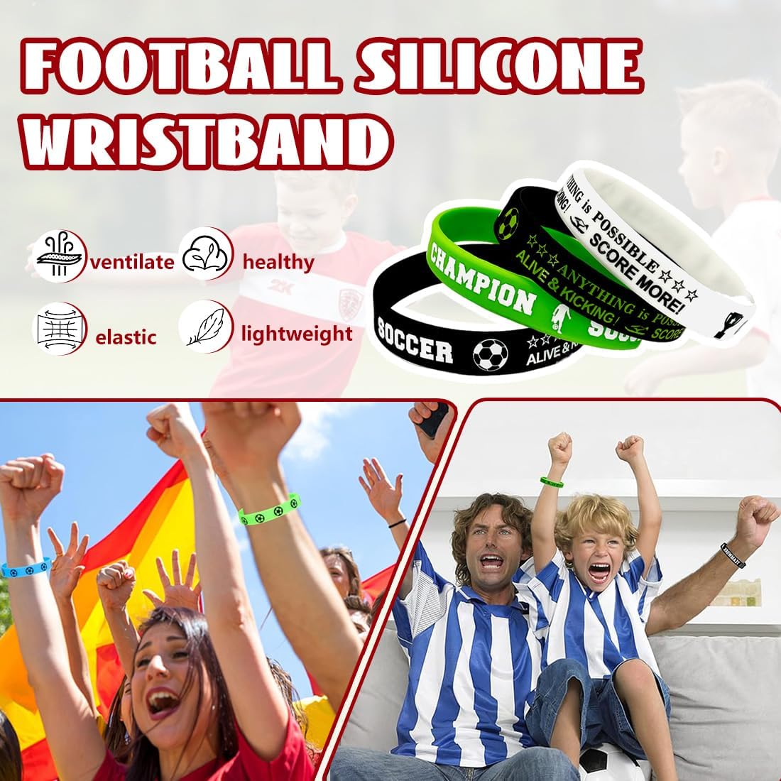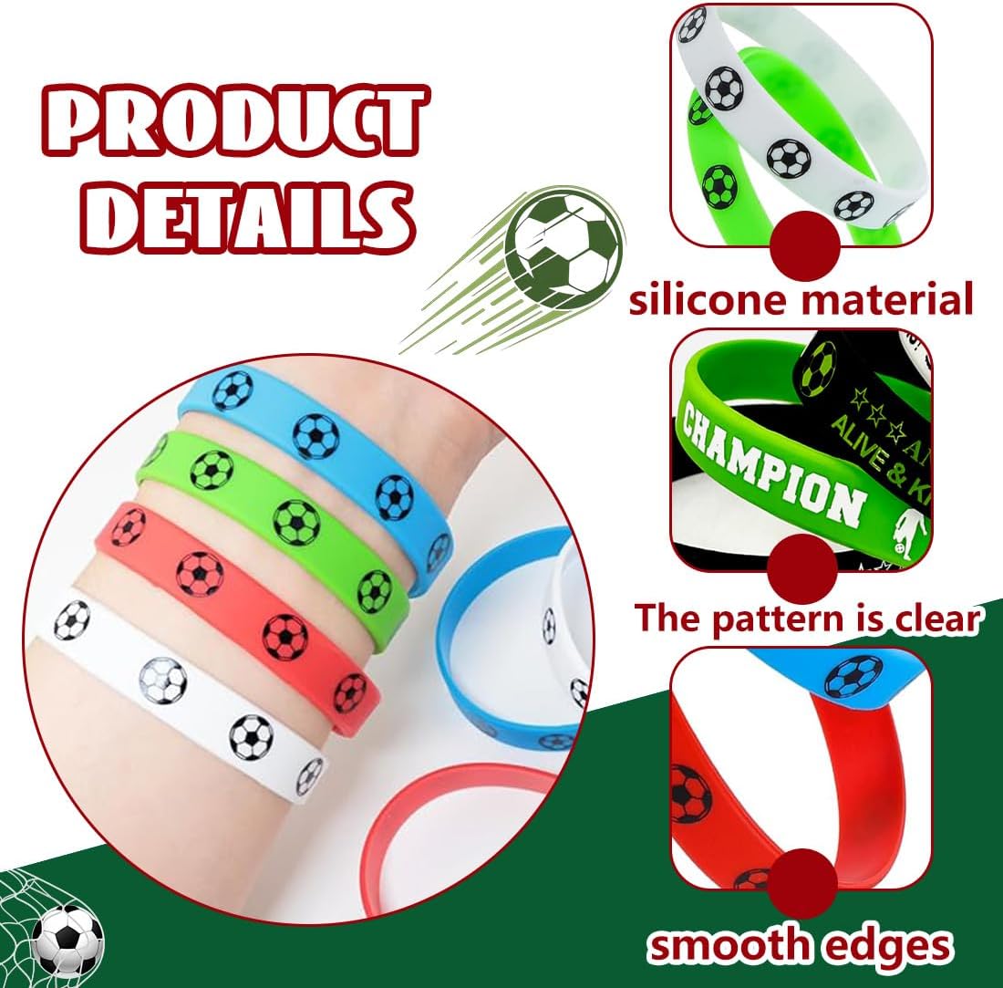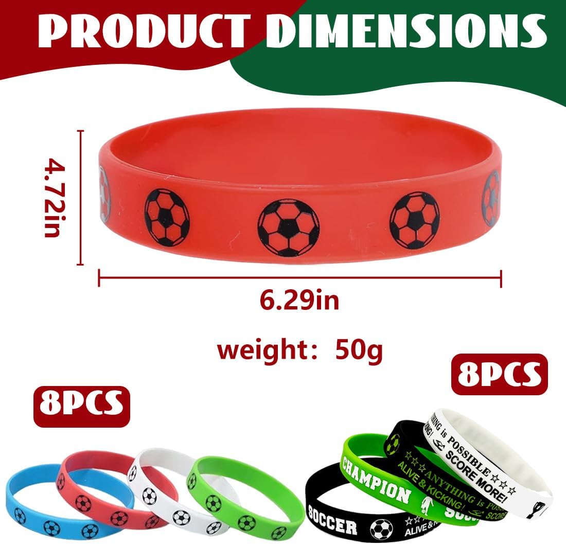 Contenuto della confezione: 16 braccialetti da football in silicone in due stili. Questo set è disponibile in cinque colori: bianco, rosso, nero, verde e blu. Questa quantità è sufficiente per l'uso e le esigenze di sostituzione. Materiale di Alta Qualità: Questo Bracciali in Silicone per Bambini è realizzato in morbido materiale siliconico, morbido e liscio al tatto, comodo da indossare, ha buone proprietà impermeabili e resistenti al sudore ed è resistente e durevole. Design Unico: Questo braccialetti in silicone è progettato con elementi di calcio, che è profondamente amato dagli amanti del calcio, è molto adatto per dare ai bambini, coltivare l'interesse dei bambini per il calcio e vivere il divertimento del calcio. Facile da Indossare: Questo Bracciale Uomo Silicone Sport ha un'eccellente elasticità, può tornare alla sua forma originale dopo l'allungamento e non è facile da deformare, quindi puoi indossarlo molto facilmente e senza sforzo. Ampia Applicazione: Questo Bracciali in Silicone Colorati è perfetto per feste di compleanno a tema calcio e feste di squadra, è un regalo ideale per bambini, amici, membri di squadre sportive o appassionati di sport,regalini fine festa compleanno calcio.