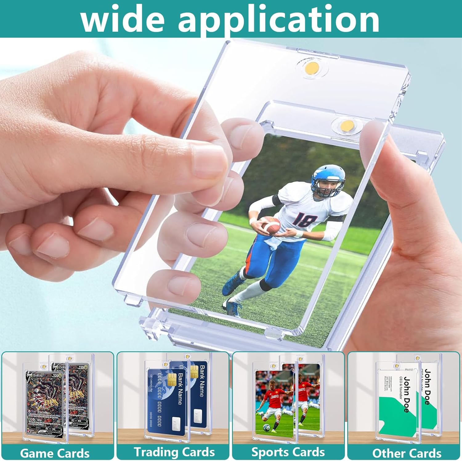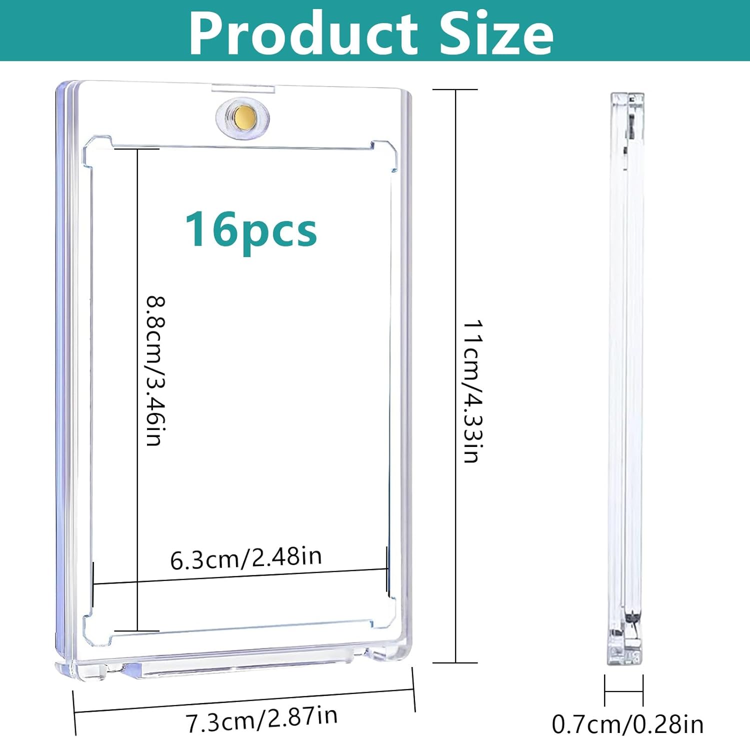 【La Confezione Include】Riceverai 16 Pezzi magnetic card holder 35PT con dimensioni 11 x 7,3 cm e slot per tessere 8,8 x 6,3 cm. Ogni trasparente magnetic trading card holder è confezionato singolarmente per adattarsi alle dimensioni standard delle carte e garantire un'adeguata protezione. 【Materiali di Alta Qualità】Il cornici magnetiche per carte è realizzato in materiale acrilico di alta qualità con una consistenza dura, bordi lisci, non si rompe facilmente, elevata trasparenza, ha protezione UV, non si deforma facilmente e può essere utilizzato a lungo. 【Apertura e Chiusura Magnetica】Il cornici acriliche magnetiche carte ha una chiusura magnetica rotonda nella parte superiore, che ne facilita l'apertura e la chiusura. Mantiene la carta saldamente in posizione, non si stacca facilmente e ha un elevato livello di tenuta. Protegge efficacemente le tue carte da acqua, polvere, sudore, impronte digitali, pieghe e graffi. 【Protezione UV + Design con Angoli a Diamante】Il cornici magnetiche carte è resistente ai raggi UV per evitare lo sbiadimento e garantire che le carte mantengano il loro colore a lungo. Il design con angoli a diamante impedisce efficacemente che i quattro angoli della carta si pieghino e mantiene intatti i bordi della carta. 【Ampia Applicazione】Questo card cornici acriliche magnetiche 35PT offre una protezione completa per le tue preziose carte collezionabili, carte sportive, carte da gioco, carte da baseball, carte da basket, carte da calcio e molto altro, perfetto per esporre le tue carte.