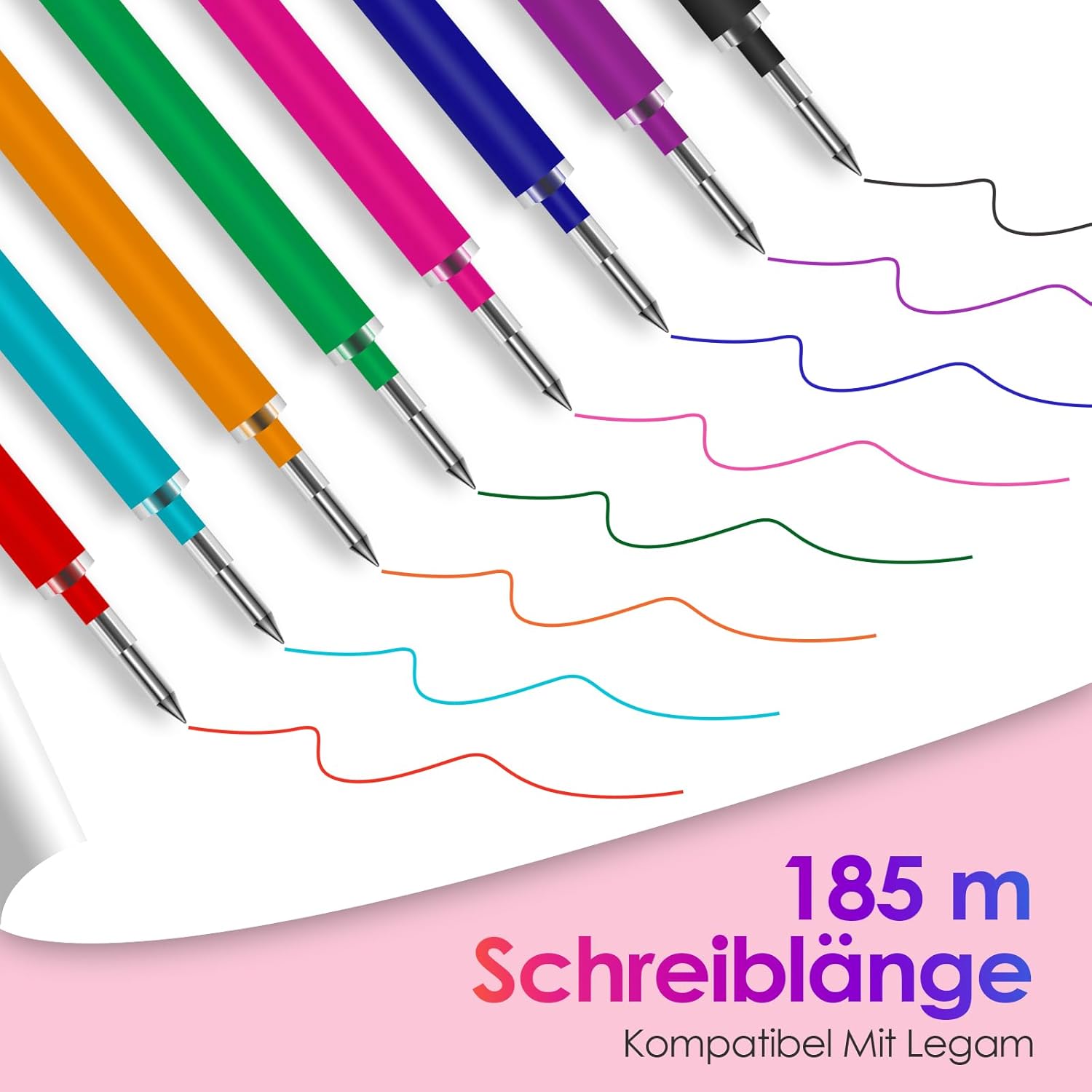 compatibili con Legam: 8 colori, blu, verde, rosso, rosa, arancione, nero, viola, verde pino Materiali e dimensioni: Inchiostro sensibile al calore di alta qualità. Altezza 13 cm. Diametro 4 mm, lunghezza di scrittura: 185 M Questo è il miglior regalo: che si tratti di bambini, studenti, insegnanti, amici, colleghi o familiari, queste penne sono una buona scelta per compleanni, festa dei bambini, Natale o occasioni per il rientro a scuola Senza graffi: Scritto su carta sottile ecologica, è antigraffio, adatto a principianti o bambini Ampia gamma di usi: La ricarica della penna cancellabile è compatibile con la maggior parte delle custodie per penne ed è adatta per prendere appunti, compiti a casa, dipingere, ecc. La ricarica della penna cancellabile può essere regalata a parenti e amici