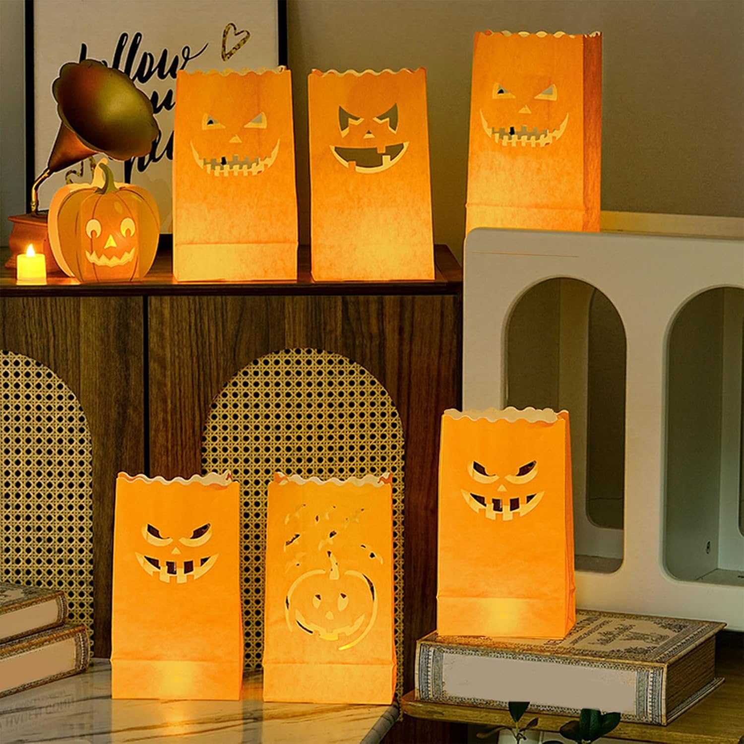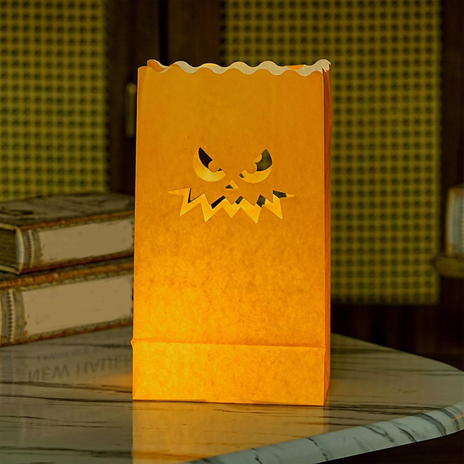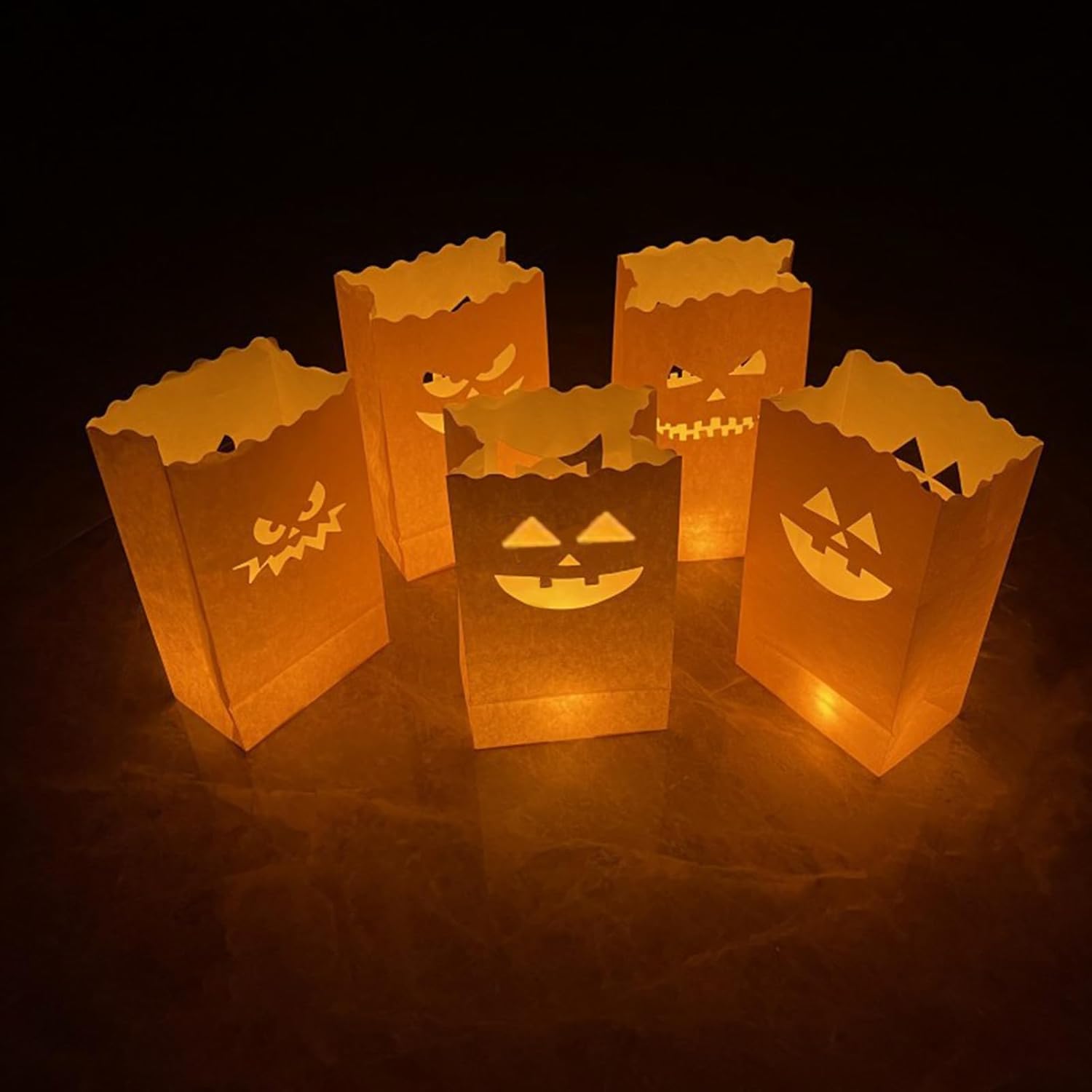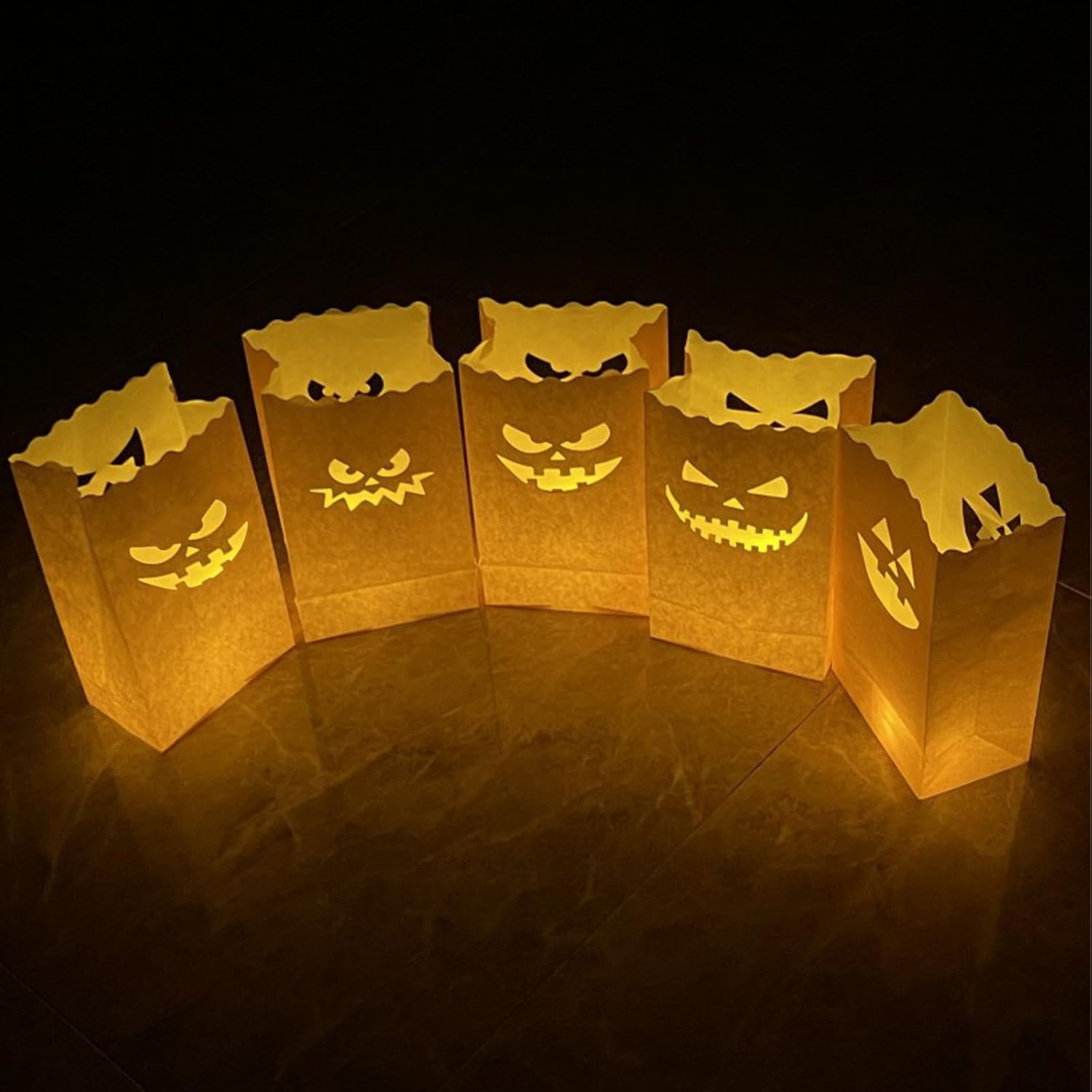 Ecologico e riciclabile: materiale cartaceo ecologico, riciclabile dopo l'uso, riducendo l'impatto ambientale. Facile da usare: basta aprire la borsa e posizionare la sorgente luminosa all'interno: facile. Decorazione multiuso: può essere posizionata con candele o luci a LED, adatta a varie scene interne ed esterne. Materiale antincendio: realizzato in materiale cartaceo ignifugo, è più sicuro da usare e la sicurezza viene prima di tutto. Essenziale per l'atmosfera di Halloween: il design cavo di jack-o-lantern crea un'atmosfera vacanziera spettrale e interessante.