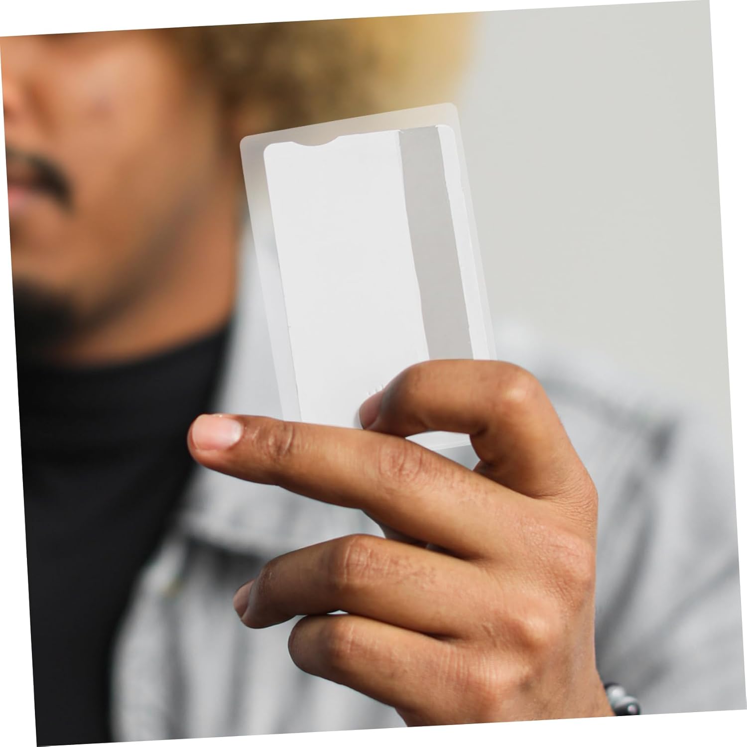 Ampia quantità: 160 custodie per carte incluse, assicurandoti di avere sempre una protezione a portata di mano per tutte le tue carte essenziali. Materiale di alta qualità: realizzate in PVC resistente, queste protezioni per carte sono resistenti alle crepe e all'usura, migliorando la longevità delle tue carte. Uso versatile: ideale per proteggere una varietà di carte tra cui carta d'identità, carte di credito, accesso e trasporto, garantendo che le informazioni importanti rimangano al sicuro. Design sottile e leggero: con uno spessore di soli 0,1 cm, questi porta carte di credito sono facili da trasportare e si adattano perfettamente al tuo portafoglio. Chiaro e trasparente: la finitura opaca elegante e trasparente consente di vedere facilmente le carte fornendo una barriera protettiva contro i danni. Porta carte da uomo: il porta carte di credito resiste ai graffi, mantenendo le carte d'identità in perfette condizioni, custodie per carte di credito
