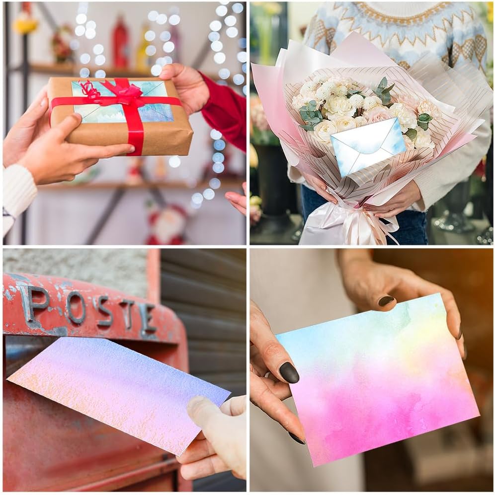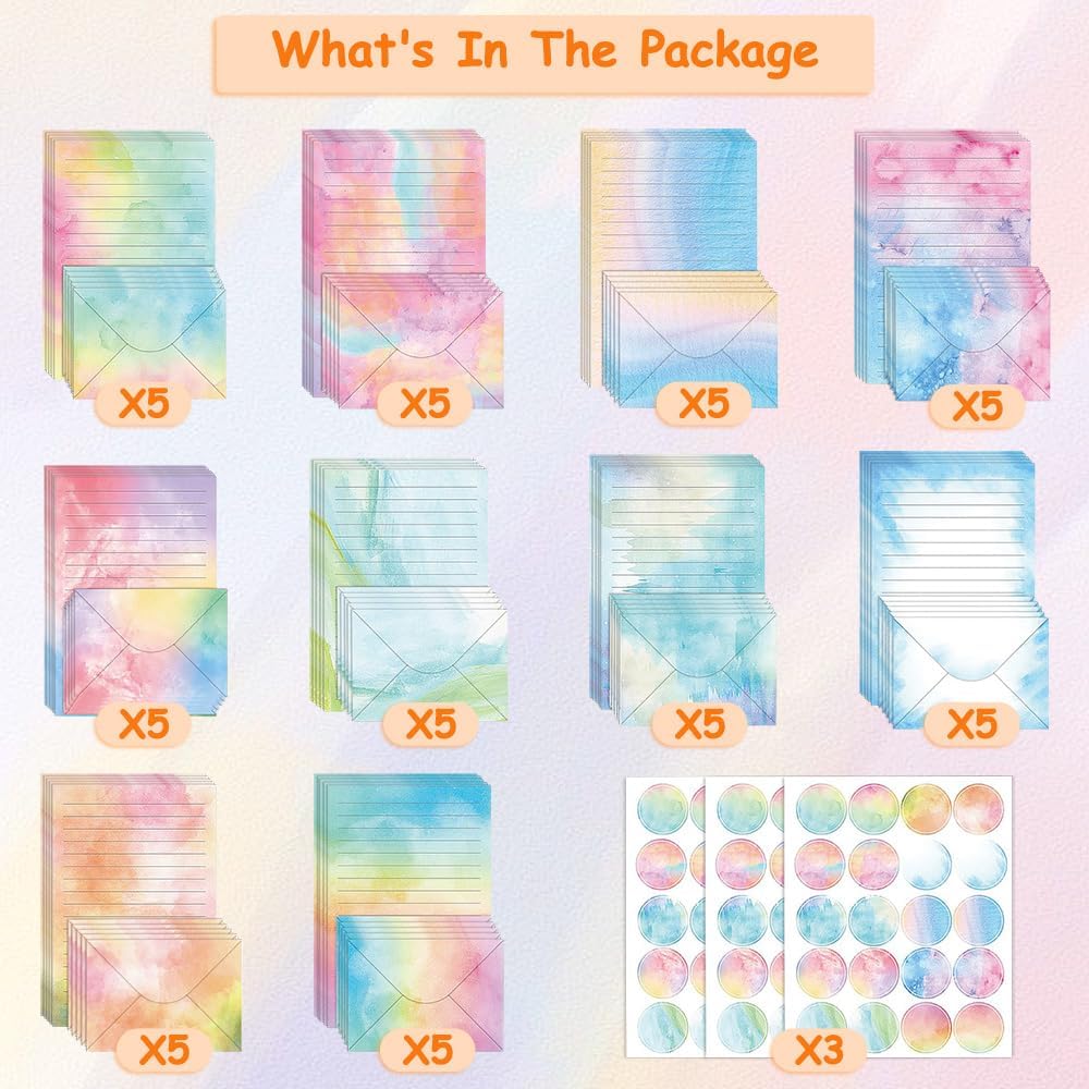 💌Set perfetto: riceverai 50 set di carta da lettere e 50 buste, inclusi 10 colori diversi, 5 per ogni colore e 60 adesivi. Quantità sufficiente per soddisfare le tue esigenze per varie feste, festival e altri eventi, puoi anche scegliere buste di colore diverso in base alle diverse occasioni 🎀Materiale di alta qualità: il nostro carta da lettere con busta set è realizzato con materiali cartacei selezionati di alta qualità. Il design ad acquerello con sfumatura morbida, oltre al motivo arcobaleno, ti offre un'esperienza di scrittura confortevole e piacevole 🎄Design creativo: questo set di carta da lettera adotta un design ad acquerello, colorato e contiene 10 stili diversi. Che si tratti di un compleanno, di un biglietto di auguri, di un invito, di una lettera di ringraziamento, di un matrimonio o di un'altra occasione, puoi utilizzare questo set di buste creative per esprimere le tue emozioni più sincere alla tua famiglia, ai tuoi amici o ai tuoi cari 🎁Ampio utilizzo: questo carta da lettere elegante con busta set è adatto a tutte le occasioni, perfetto per buoni regalo personalizzati, biglietti di auguri, inviti, festival, matrimoni e altre occasioni, è un'ottima scelta per trasmettere le tue emozioni e benedizioni alla tua famiglia 💟Mail Sentiments: sorprendi i tuoi amici con questo eccezionale set di carta da lettere e non vedo l'ora di ricevere molte lettere in risposta. Il set di buste colorate diventerà una testimonianza delle profonde emozioni tra te e la tua famiglia, i tuoi amici o il tuo amante