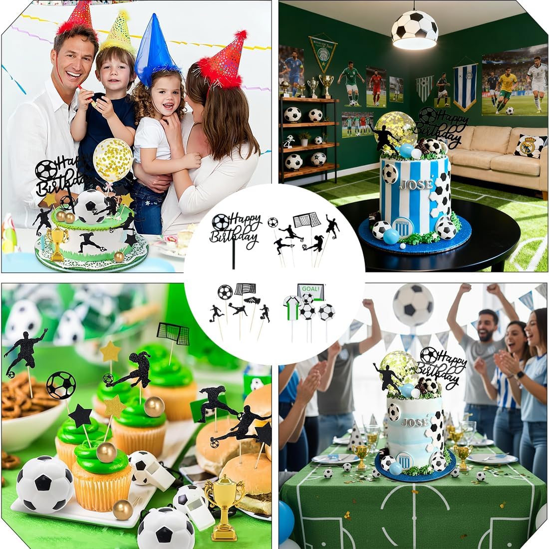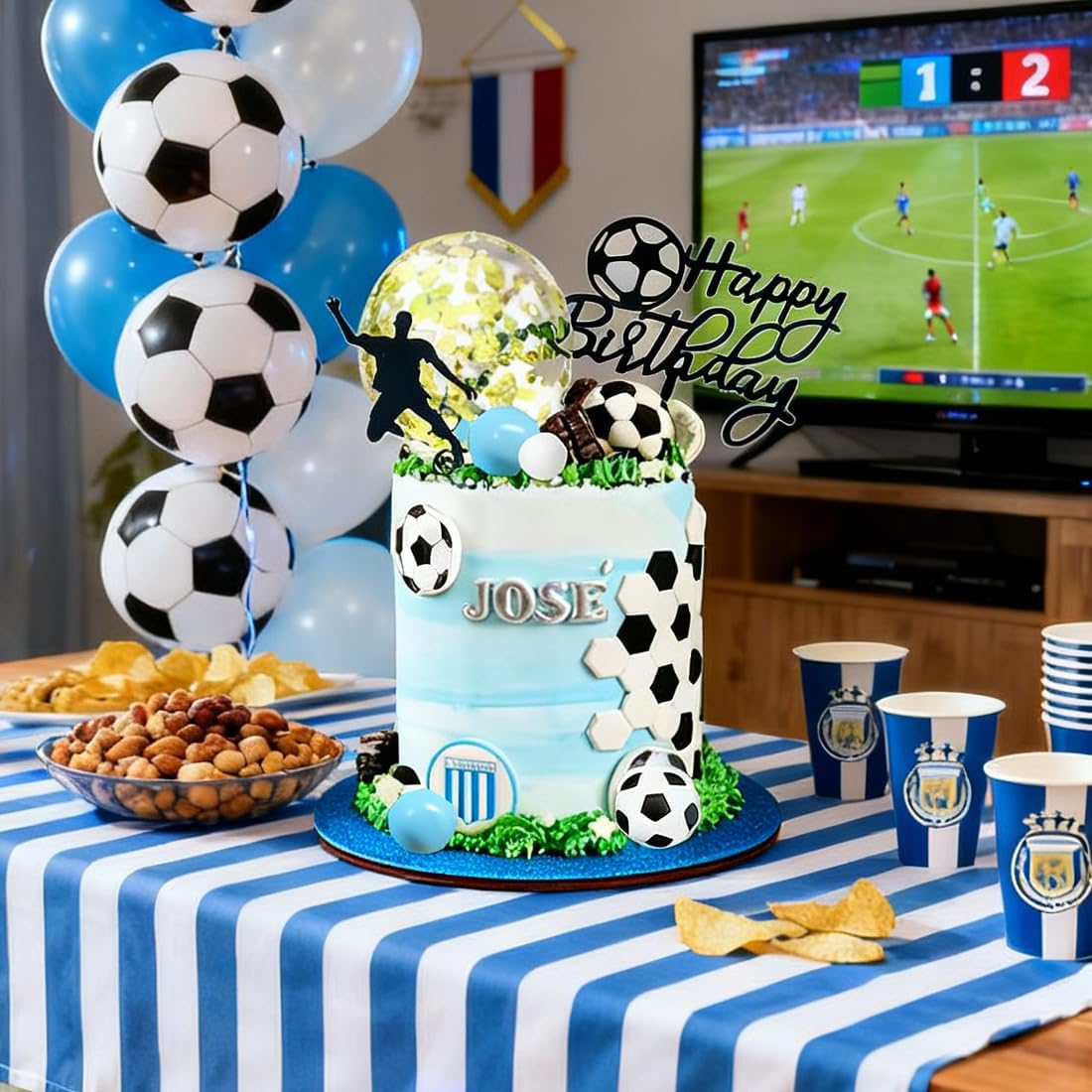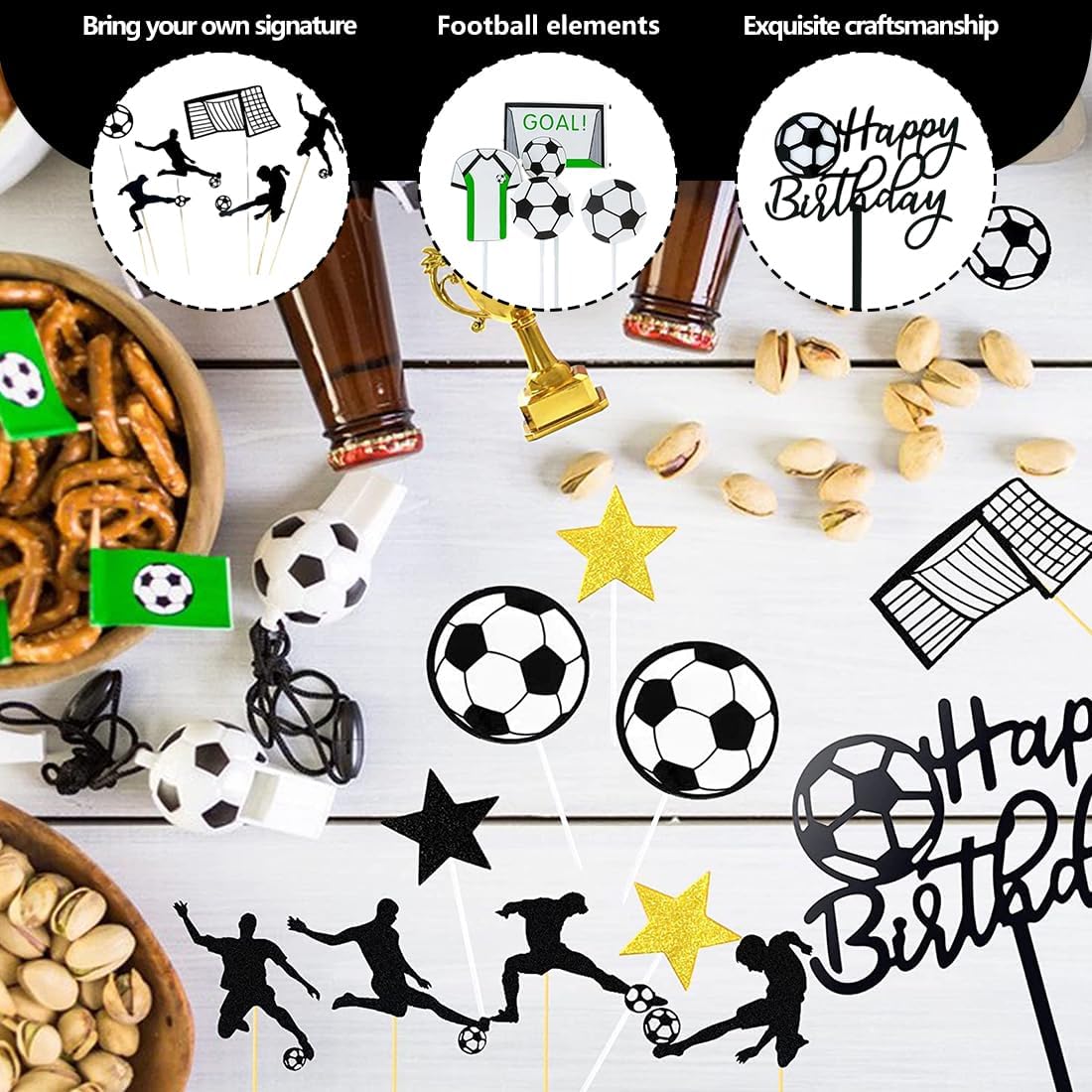 Decorazione perfetta per torte: Set di 16 topper per torte a tema calcio, ideale per decorare torte, cupcake, muffin e dessert. Perfetto per feste di compleanno a tema calcio o eventi sportivi Materiali di alta qualità: Realizzati in robusto cartoncino e bastoncini resistenti, con design stampato su un lato. Ideali per una decorazione elegante durante feste sportive e baby shower Facile da usare: Dotati di pratici bastoncini per un'applicazione rapida e senza sforzo. Perfetti per compleanni di bambini, riunioni di famiglia e per gli amanti del calcio Utilizzo versatile: Adatti per feste a tema calcio, baby shower e eventi sportivi. Possono essere utilizzati anche come decorazioni per cupcake, gelati o stuzzichini Design accattivante a tema calcio: Dona alla tua torta un tocco originale con un tema calcistico che cattura l'attenzione. Nota: Non adatto per l'uso in forno, solo per decorazione