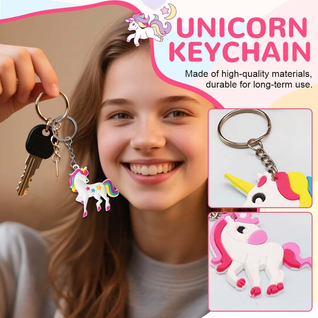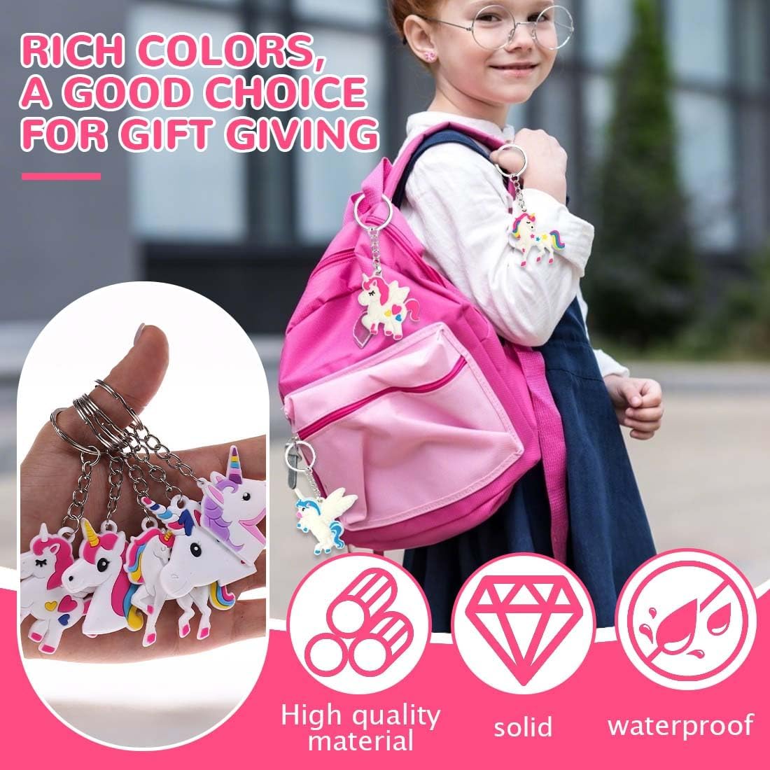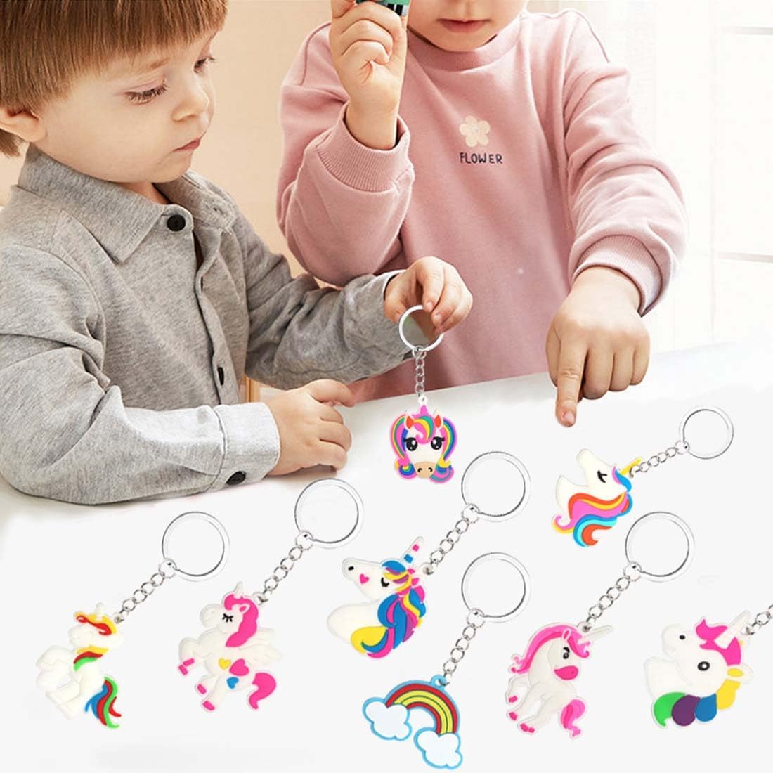 Portachiavi unicorno per bambini: 17 portachiavi a forma di unicorno, per diverse esperienze per bambini, adatti ai compleanni dei bambini. Materiale di qualità: il braccialetto è realizzato con un rivestimento in PVC morbido e liscio, molto comodo da indossare, stampa chiara, non sbiadisce facilmente, il portachiavi per bambini è realizzato in silicone, immagine tridimensionale, molto morbido. Portachiavi carini: portachiavi super carini per bambini e bambine, perfetti per le buste regalo. Insegnanti e genitori possono usarli come premi per i giochi o come ricompense in classe per gli studenti. Regalo per bambini: questo è un regalo fantastico per bambini di tutte le età. I colori vivaci e la forma carina lo rendono un regalo molto attraente per i bambini. Ampiamente applicabile: adatto alla vita quotidiana, ai compleanni dei bambini, a varie feste, compleanni, Natale, Capodanno o altri eventi, i bambini sono molto attratti da questo tipo di regalo, può anche essere usato come premio.